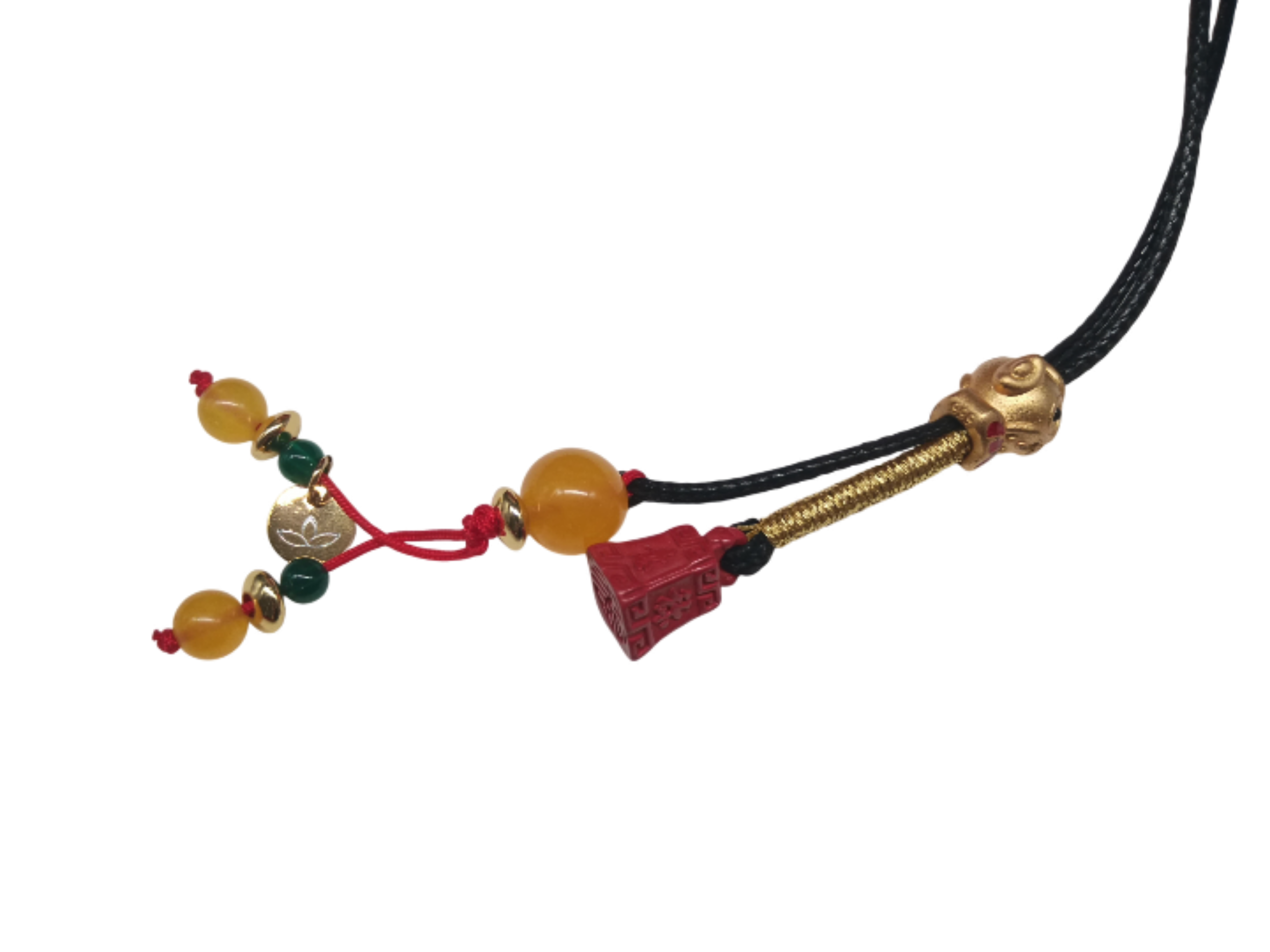 配饰:圆形珠子:玛瑙 红色福:朱砂