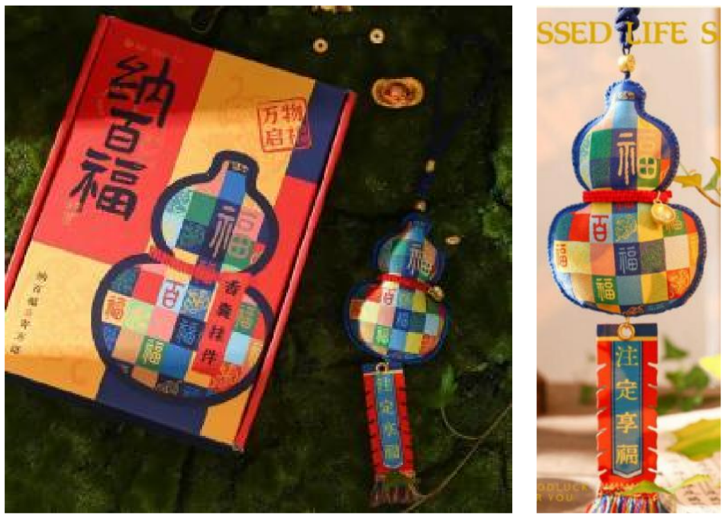 葫芦外圈手工缝制一百零八针,心怀福念,以匠心纳百福,寓意百福百成,平安喜乐。