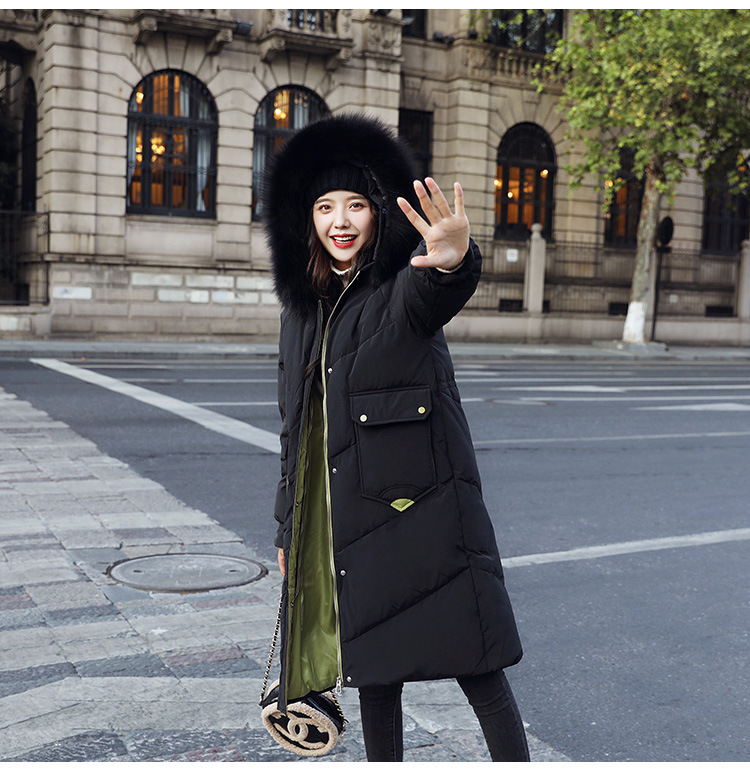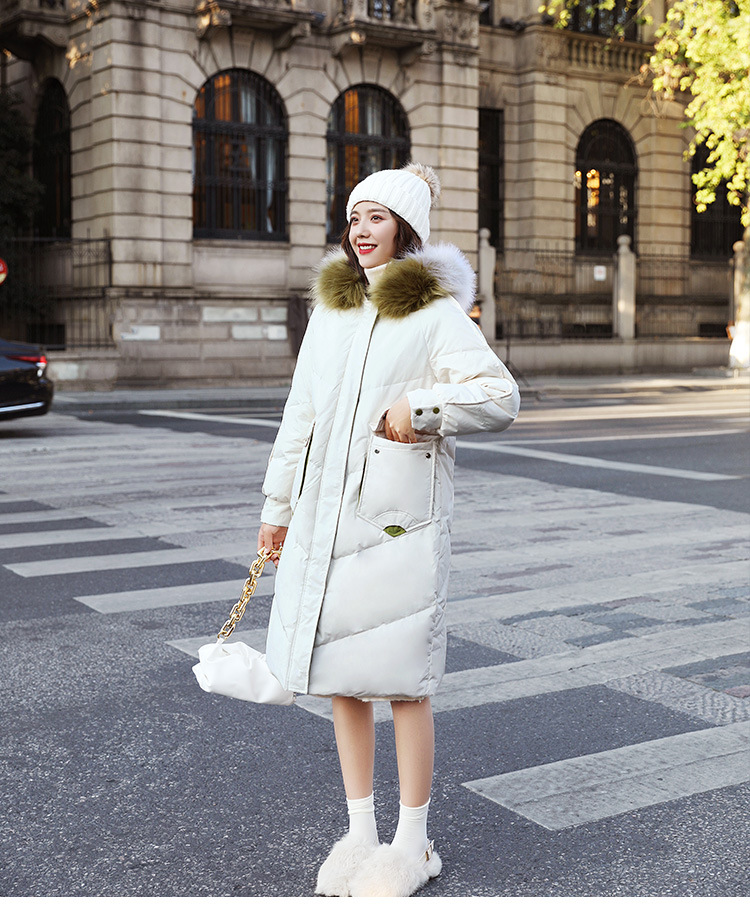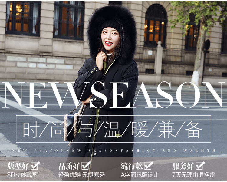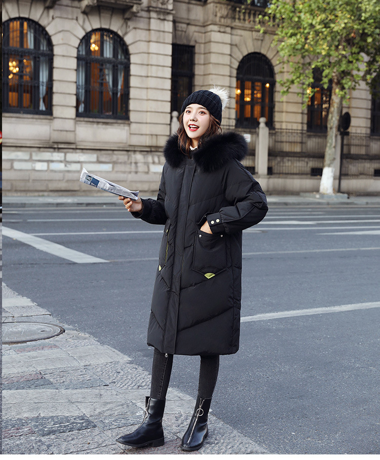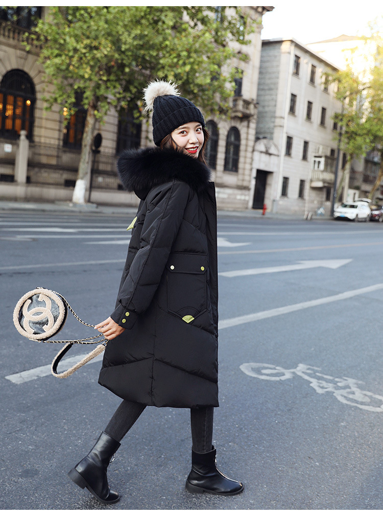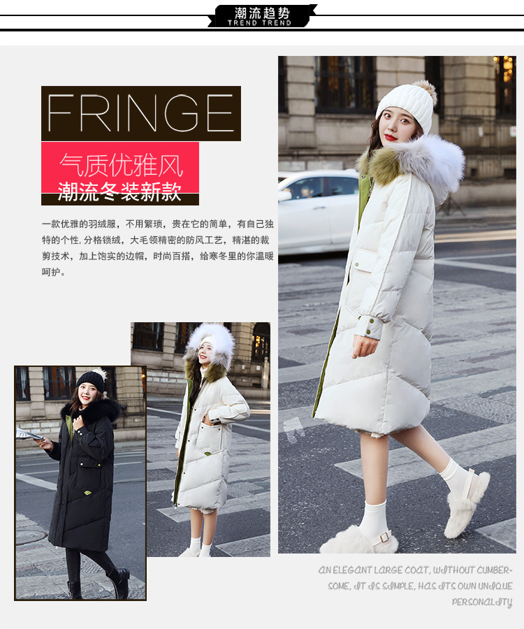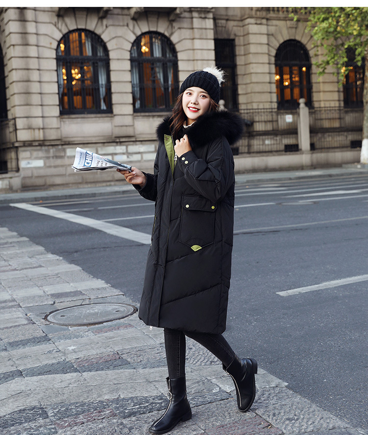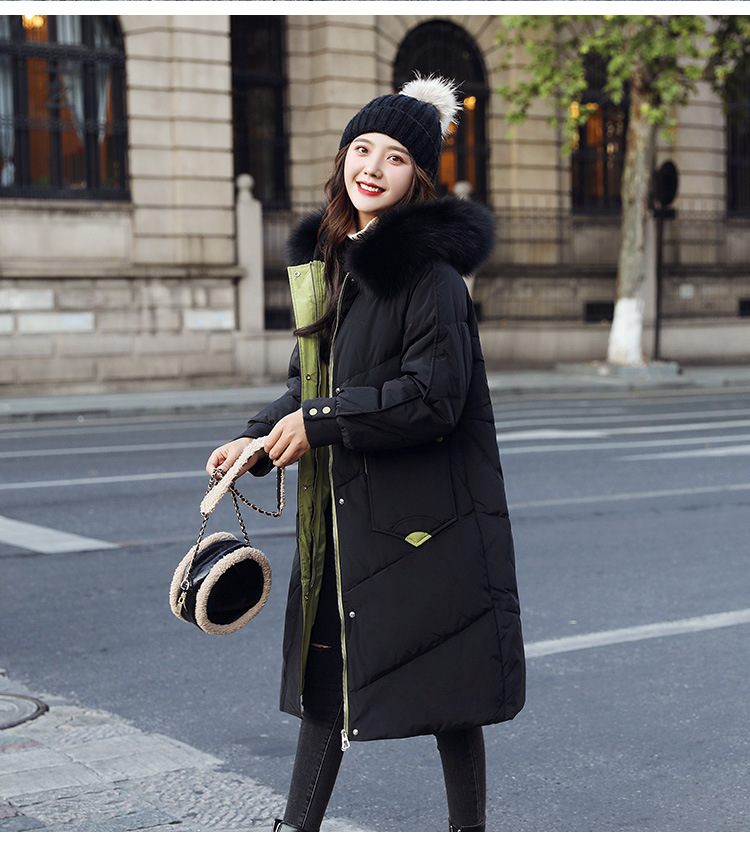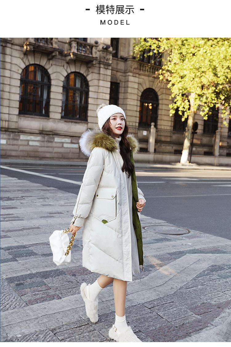 YHSS-003a40新款潮流时尚气质撞色大毛领中长款大口袋加厚保暖羽绒服外套