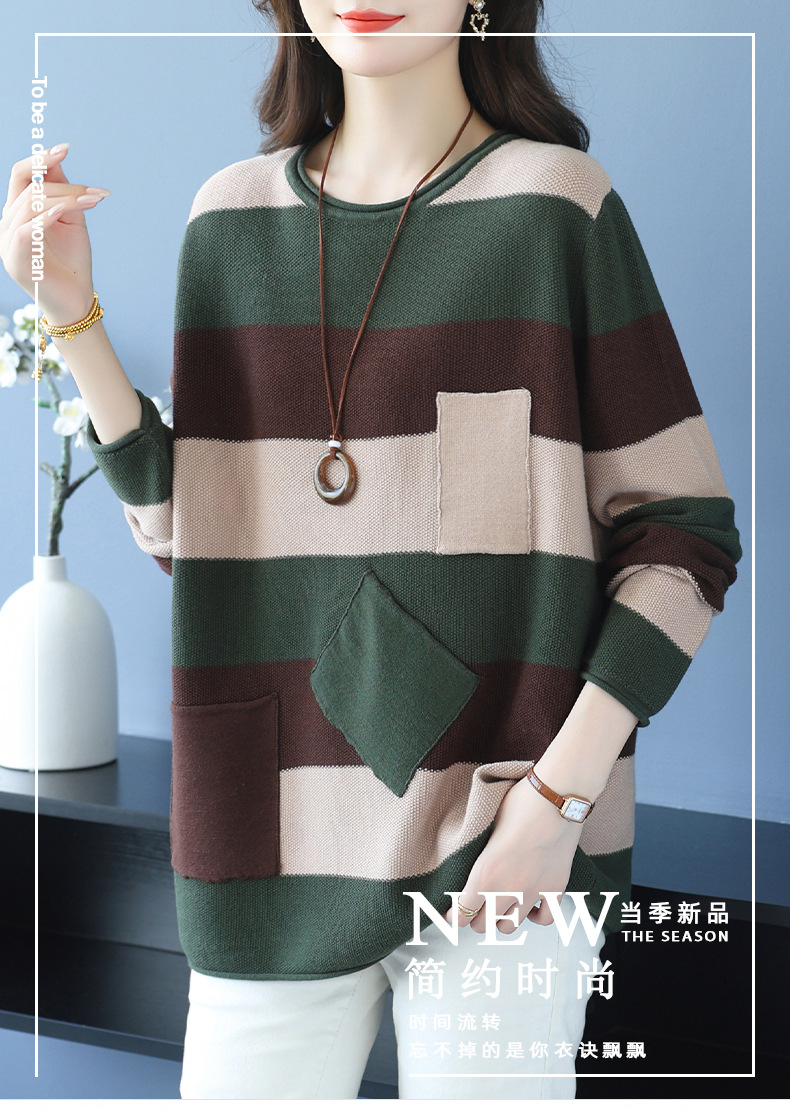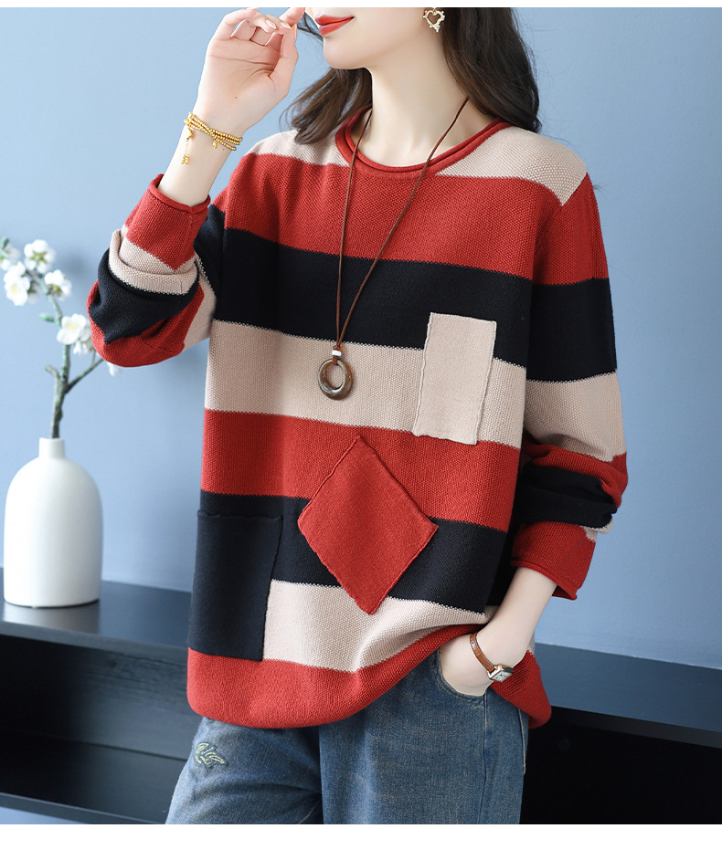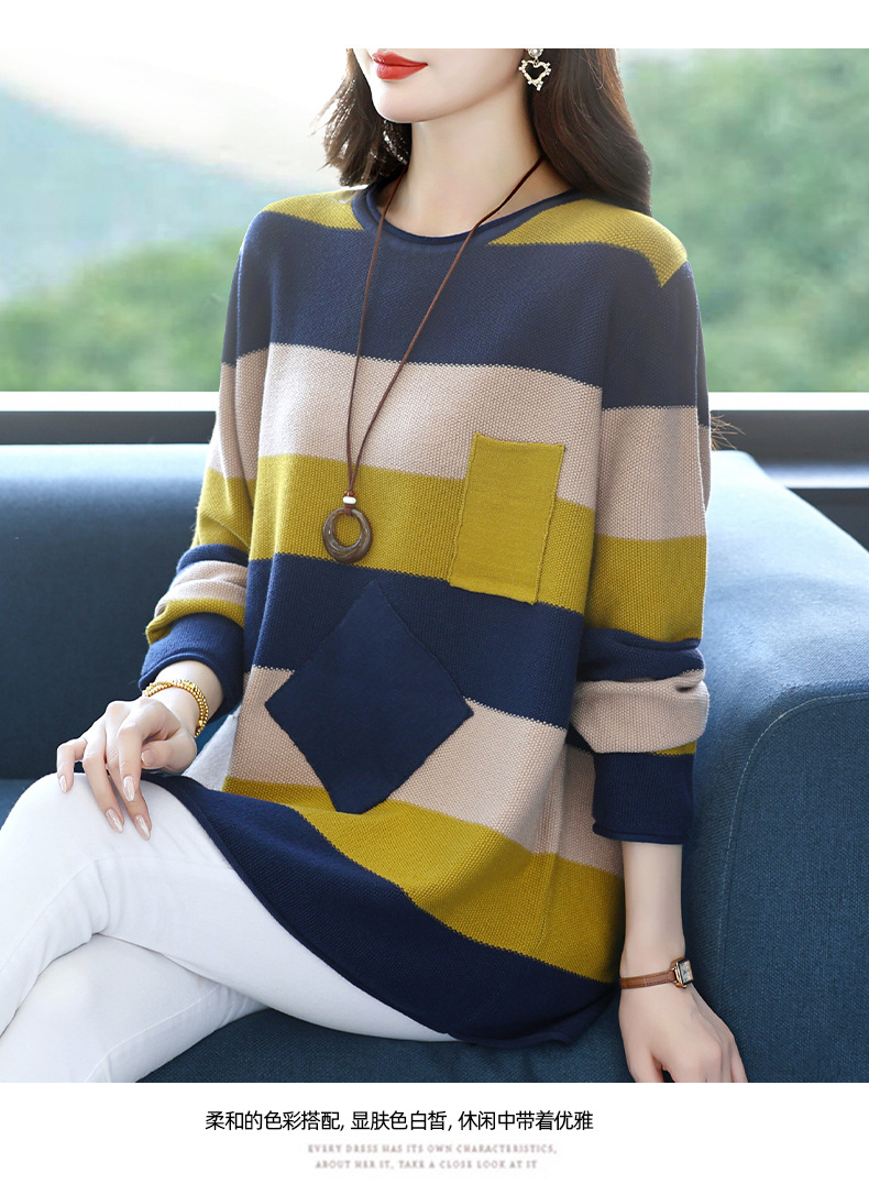 43-3128-158 打底衫女设计感小众高级感拼接撞色毛衣大码上衣2025秋冬季针织衫
