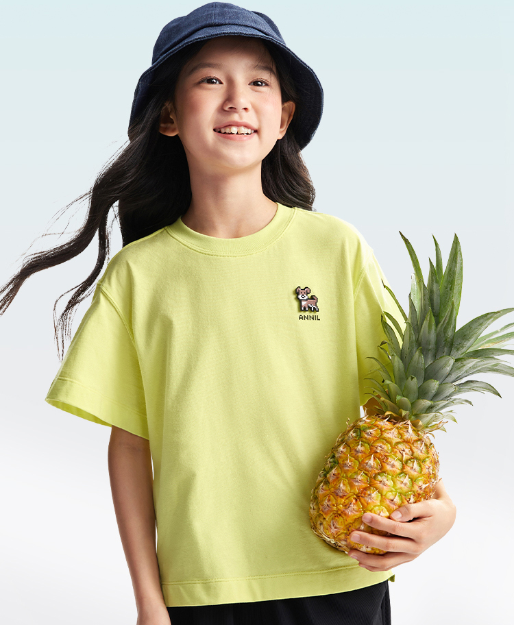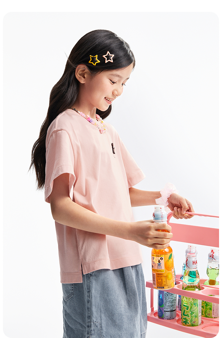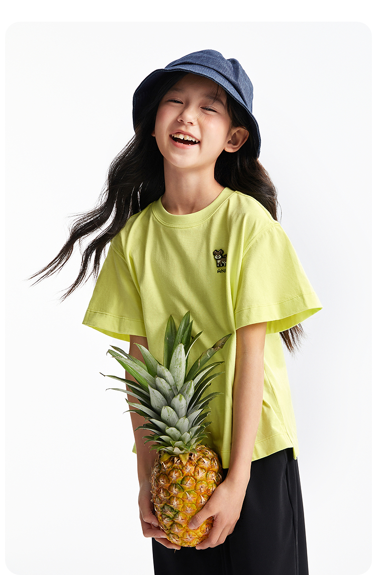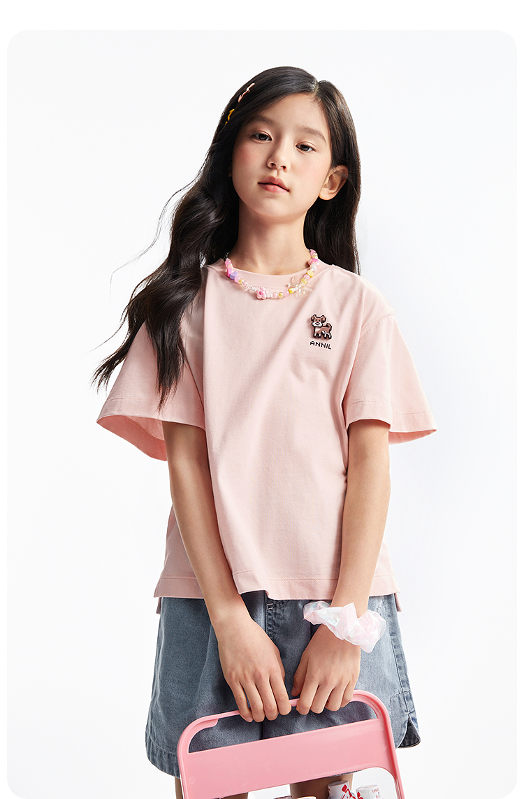 【全棉亲肤】女童圆领短袖针织衫夏季新款安奈儿童装EG521116