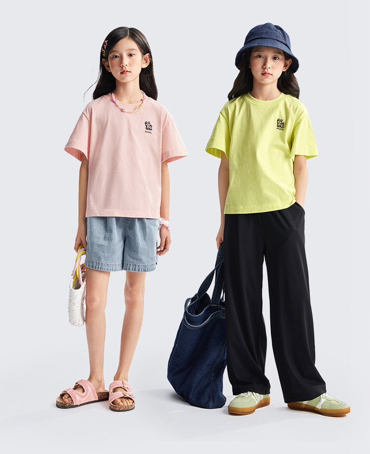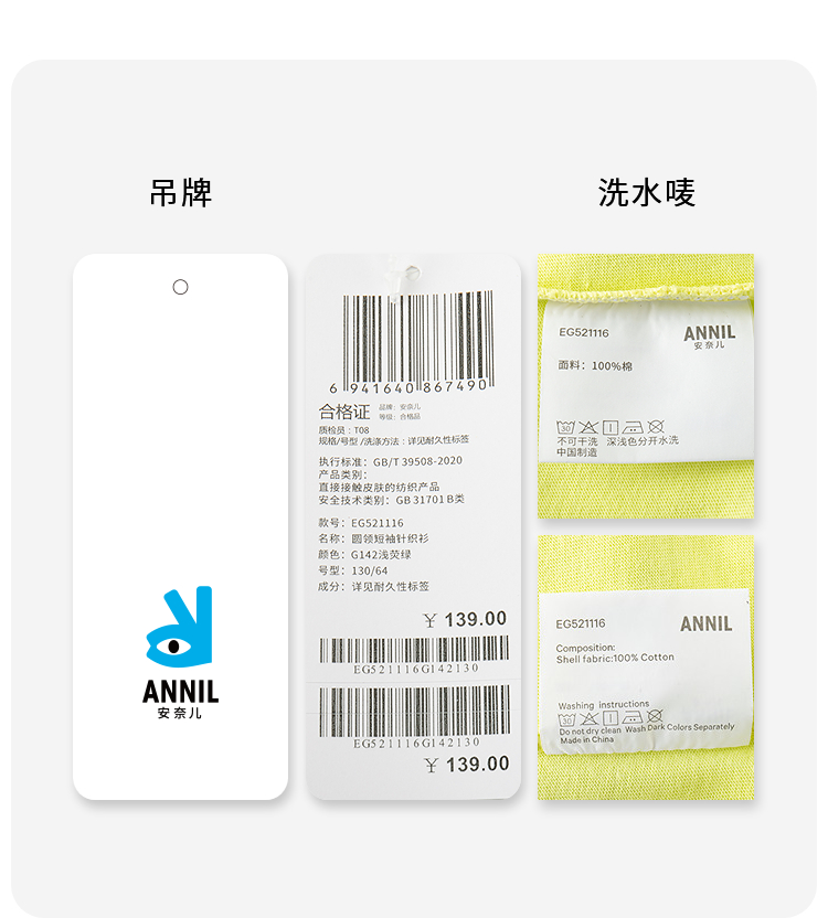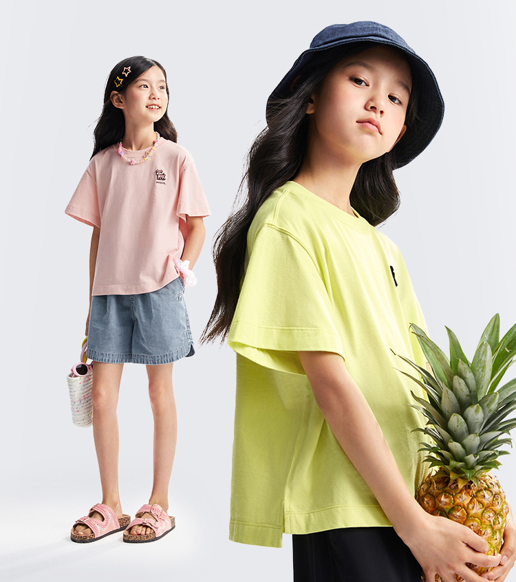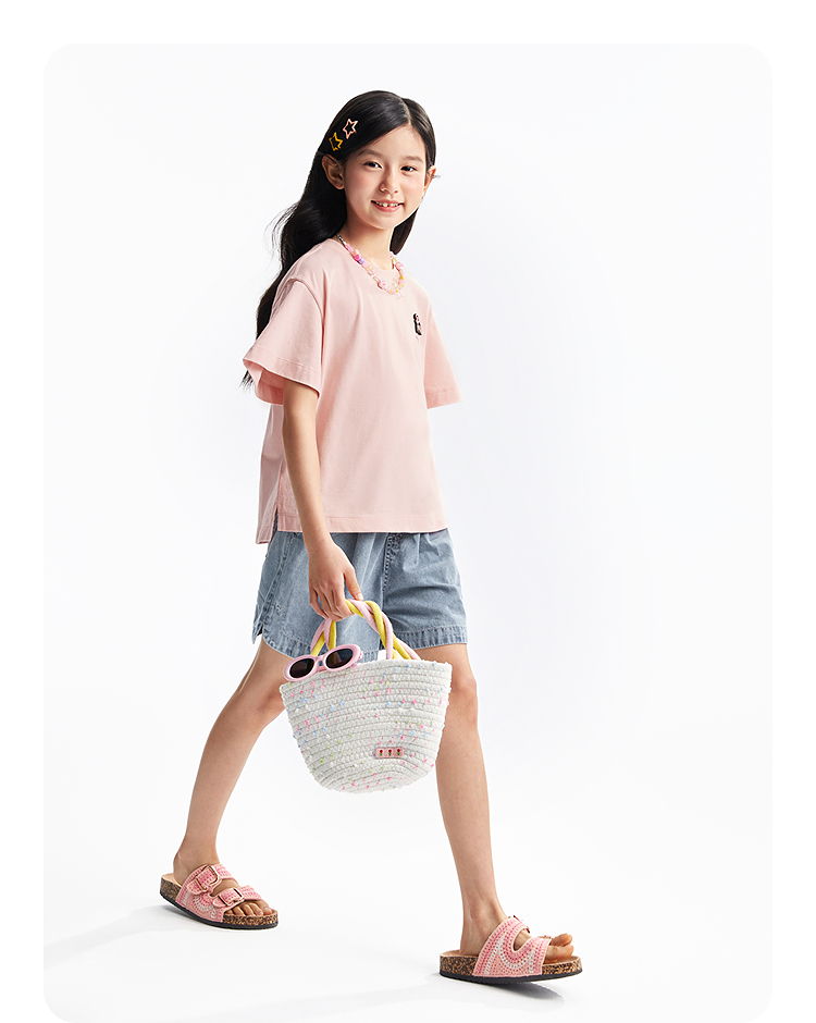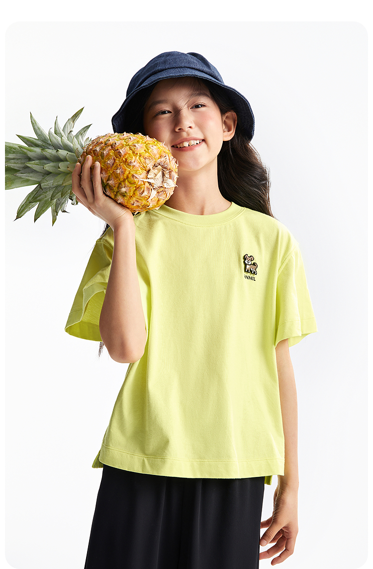 【全棉亲肤】女童圆领短袖针织衫夏季新款安奈儿童装EG521116