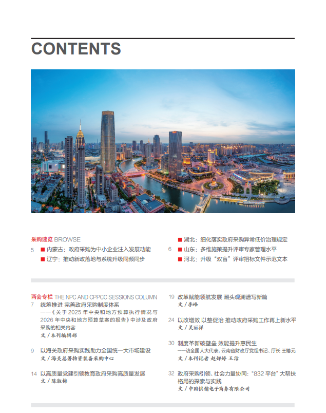 《中国政府采购》杂志是我国政府采购工作指导刊,是财政部指定的政府采购信息发布媒体,也是我国中央级政府采购专业期刊。