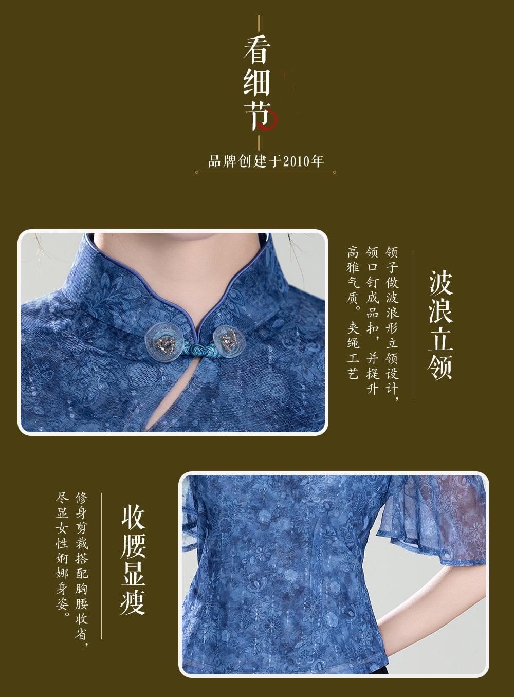 【芳兰】荷叶袖复古气质女装,改良新中式国风旗袍上衣XGT-T25308