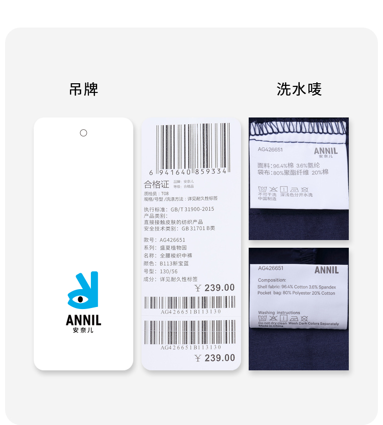 女童轻薄透气中裤新款安奈儿童装实体店同款AG426651
