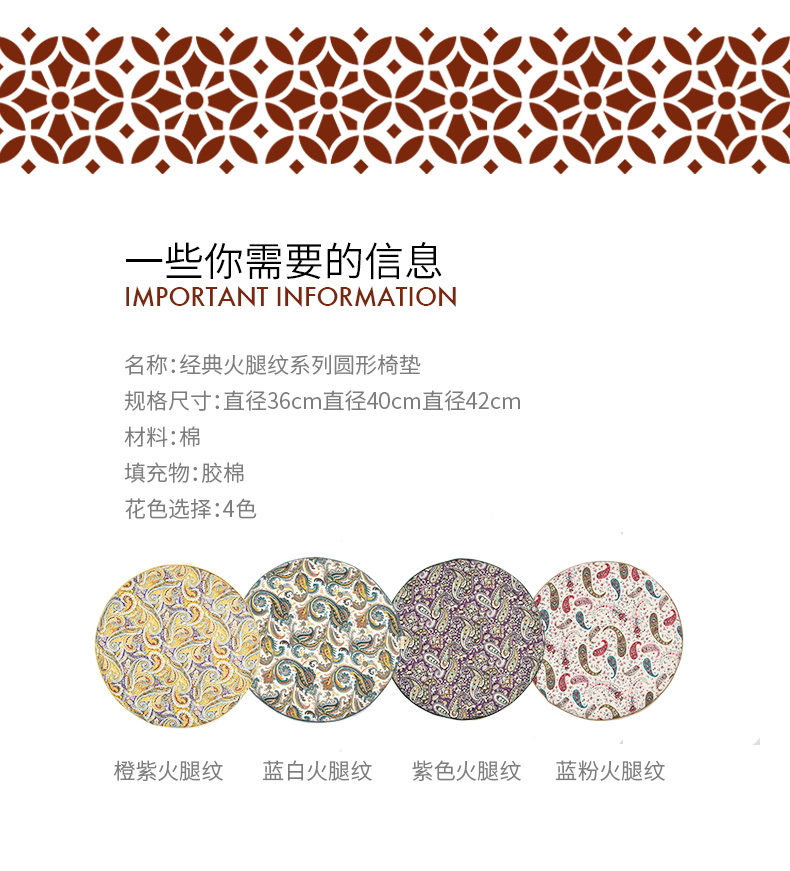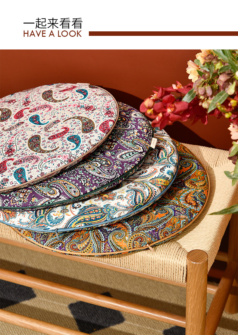 经典法式火腿纹系列加厚圆凳垫