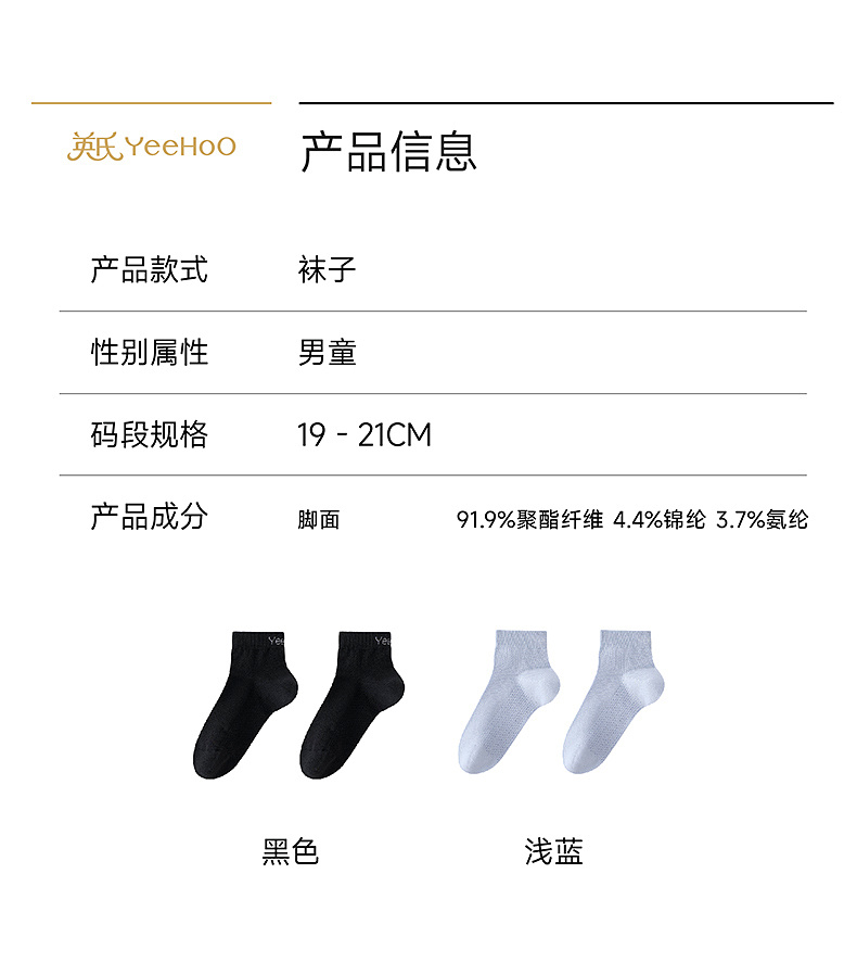 【商场同款】英氏儿童袜子男童春夏薄款吸湿排汗短袜新品直角袜