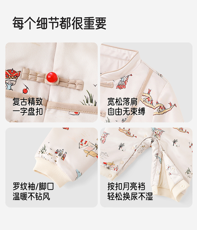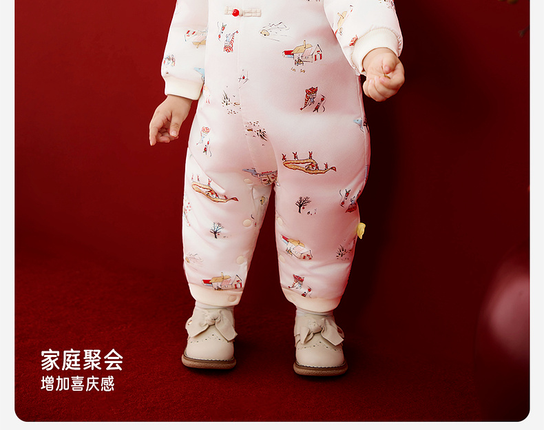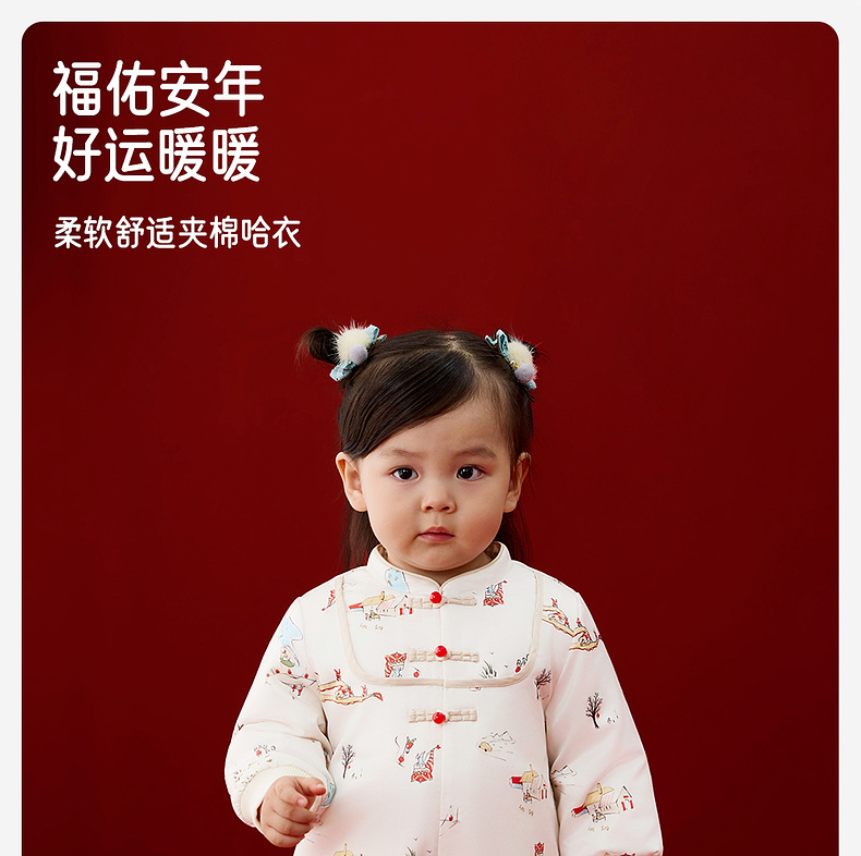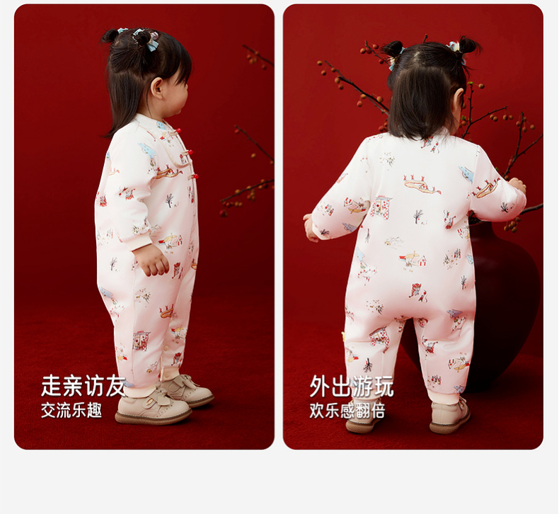 英氏婴儿哈衣女宝新生儿男宝冬季保暖长袖蛤衣新年连身衣舒适新款