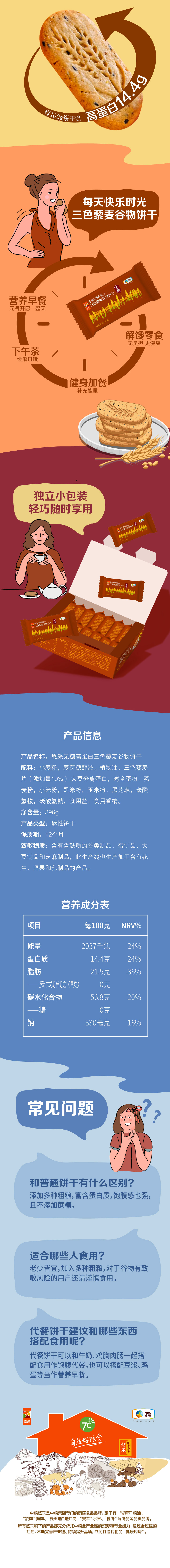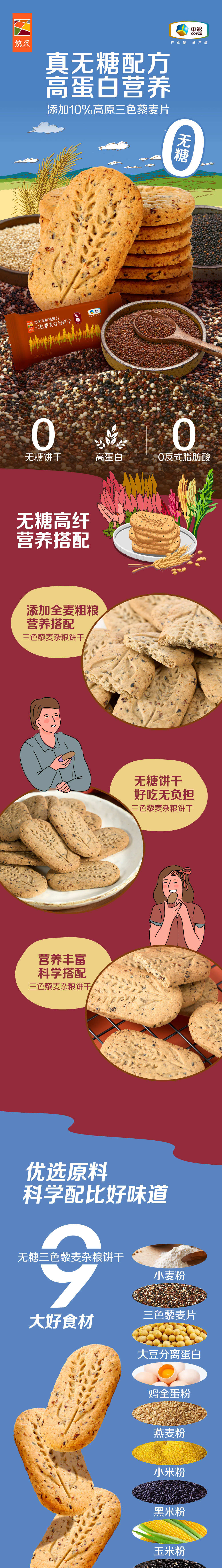 中粮悠采 三色藜麦谷物饼干 396g 无糖高蛋白 方便早餐 健康零食