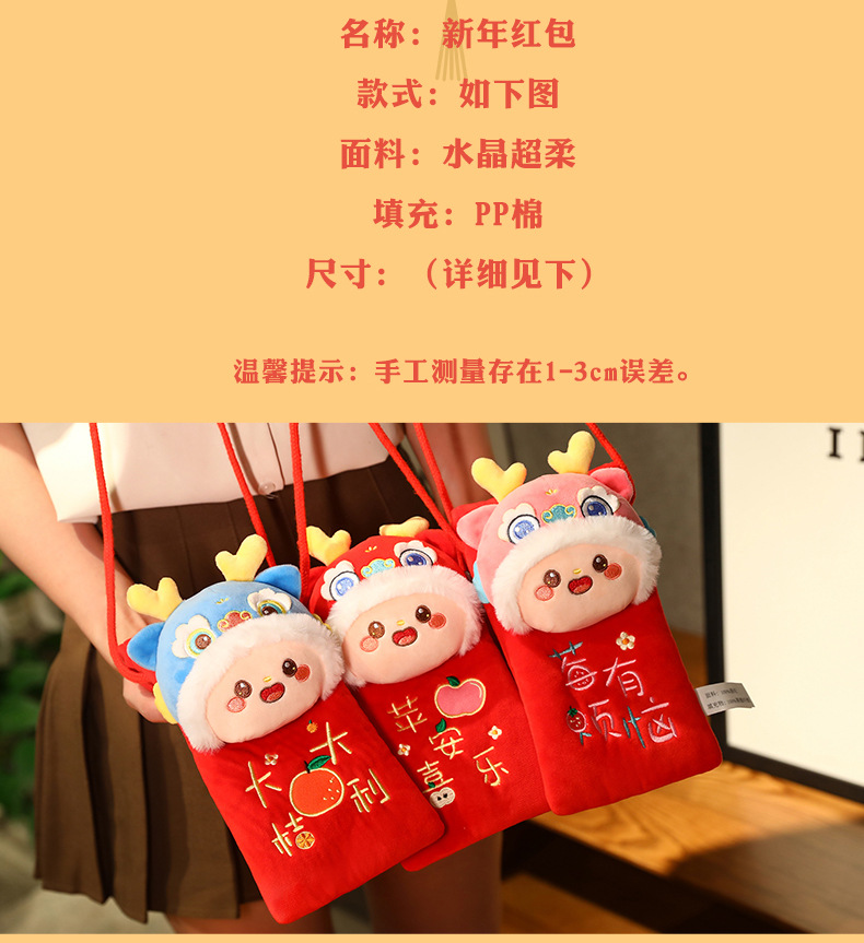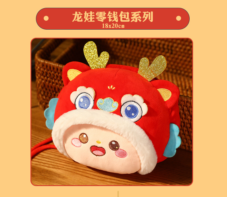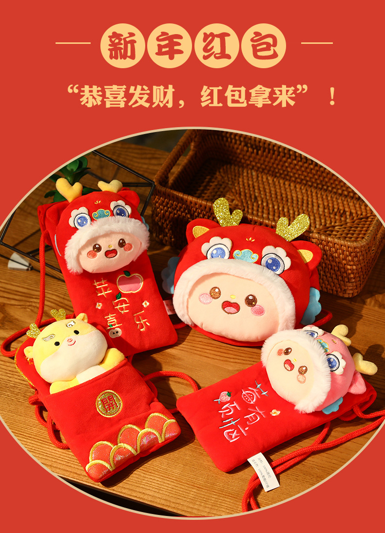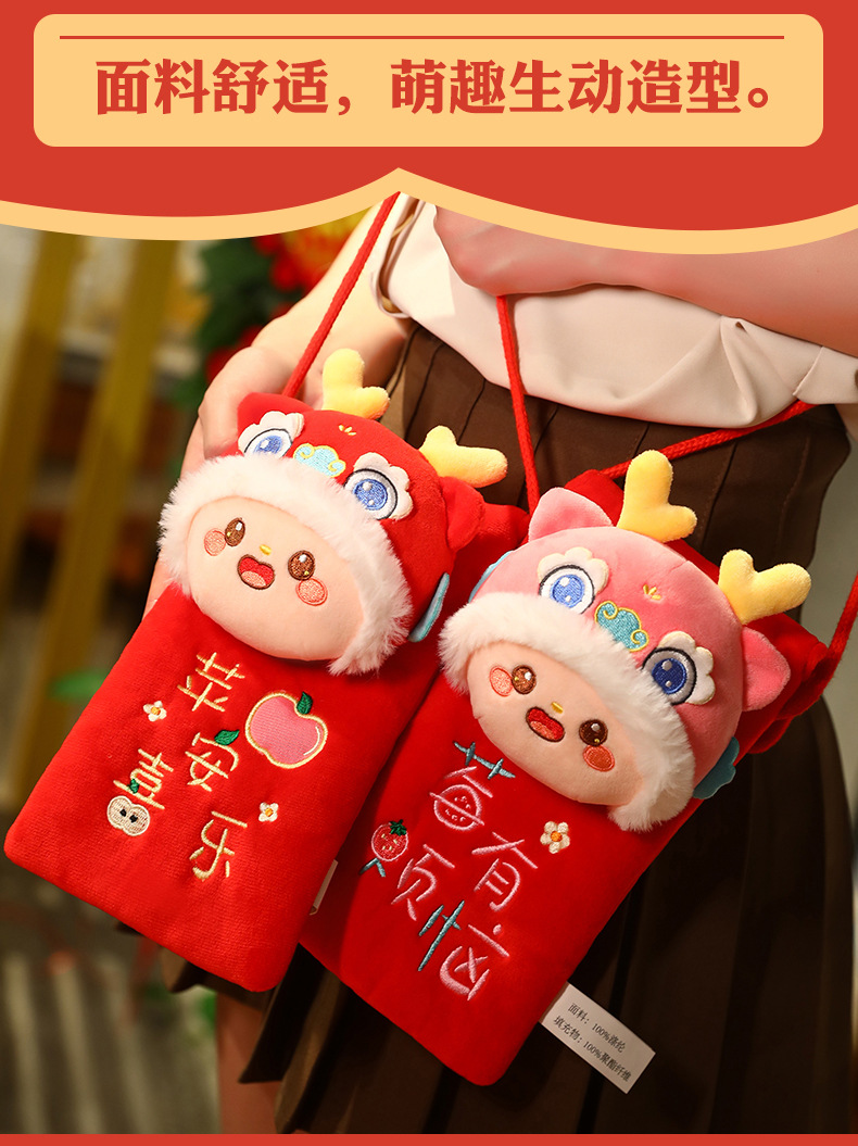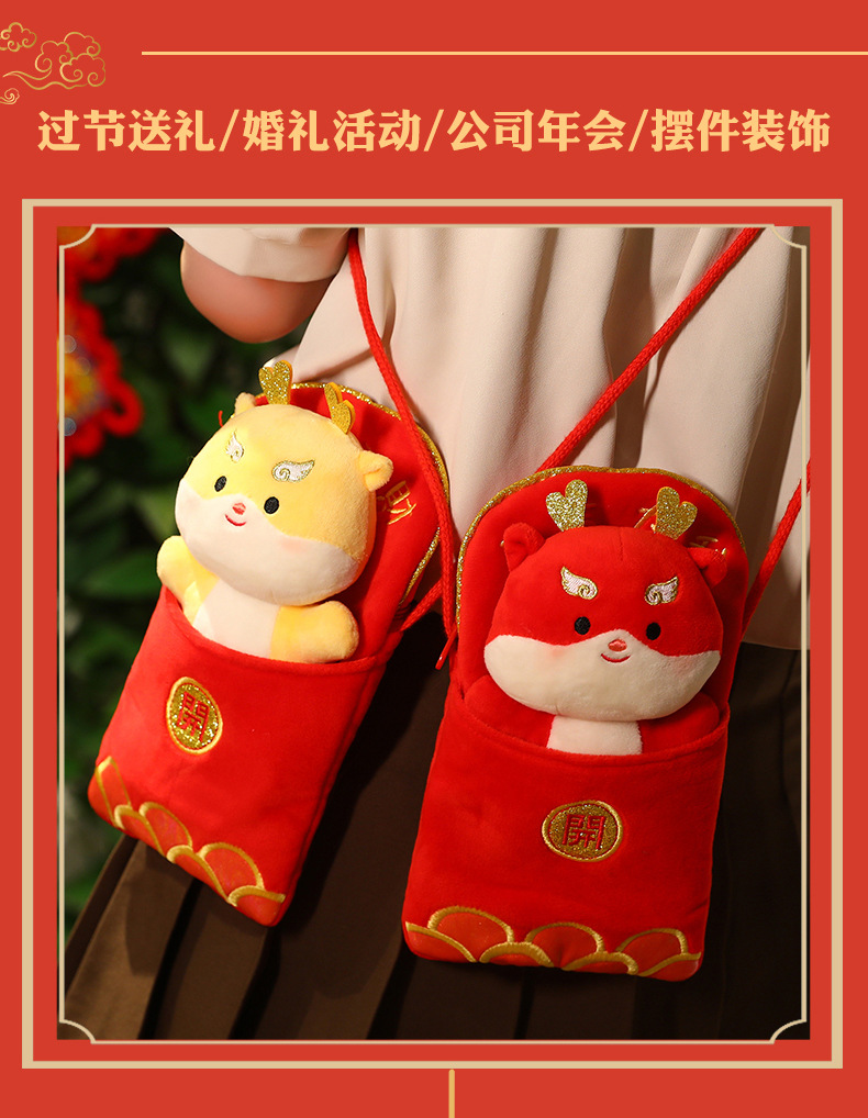 【红包一开,财运来!】新年红包小挎包,龙年吉祥物毛绒玩具压岁钱零钱包,年货节日龙娃礼品,面料舒适萌趣生动造型,细致电绣工艺让人爱不释手!