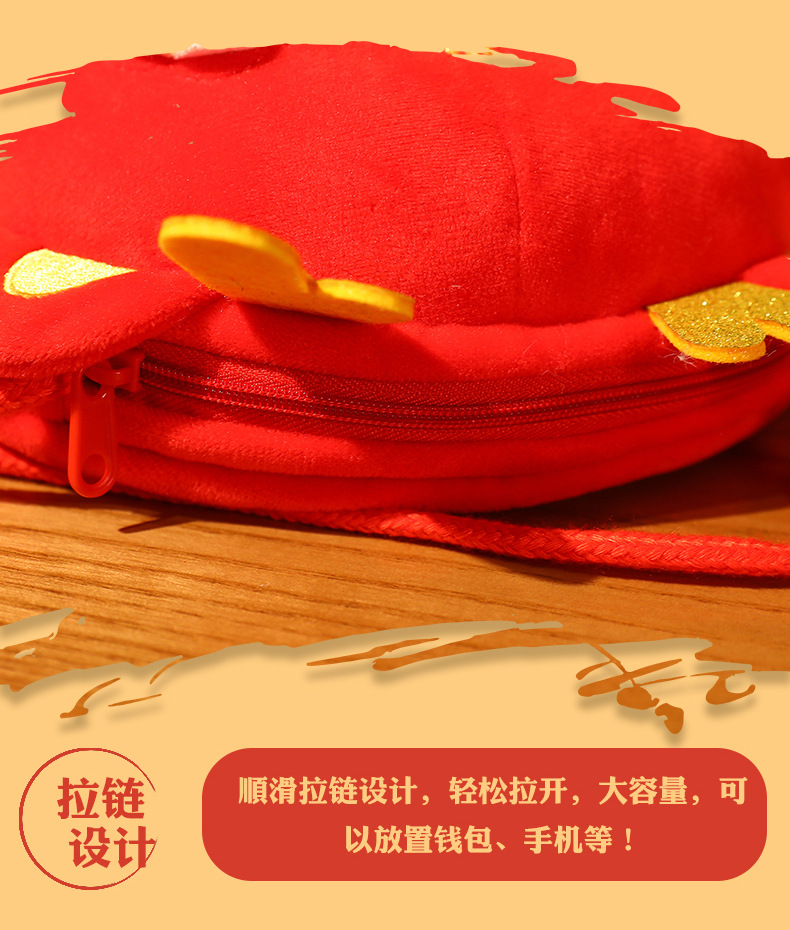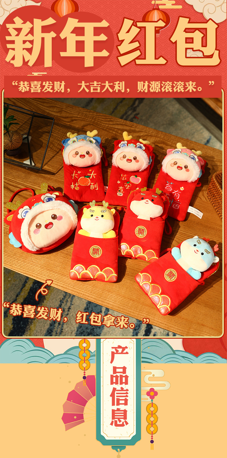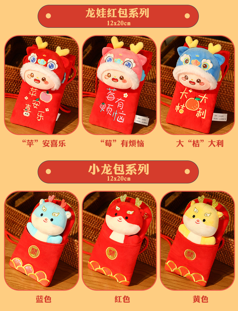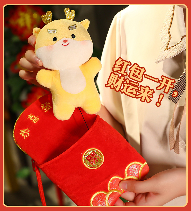 【红包一开,财运来!】新年红包小挎包,龙年吉祥物毛绒玩具压岁钱零钱包,年货节日龙娃礼品,面料舒适萌趣生动造型,细致电绣工艺让人爱不释手!