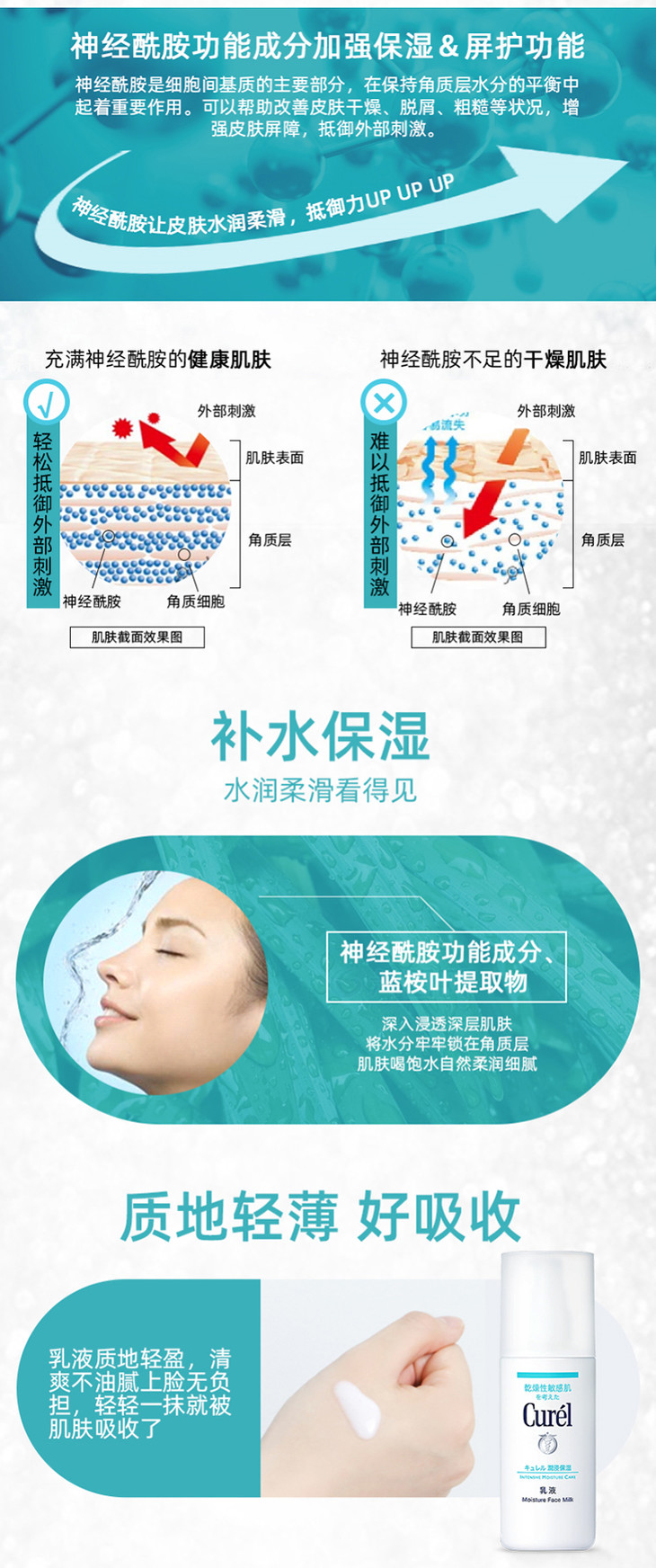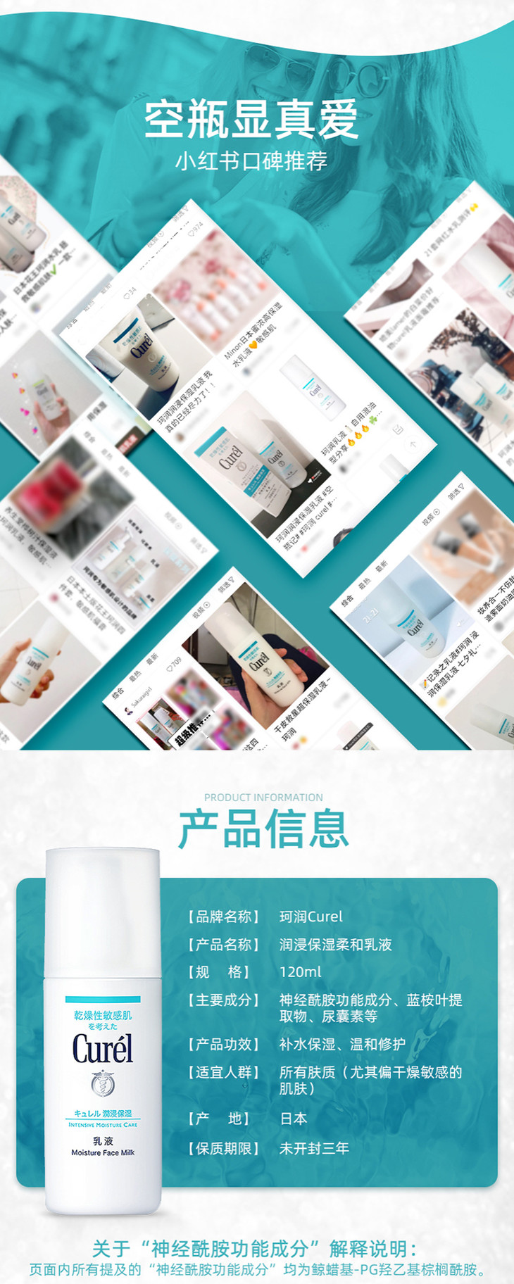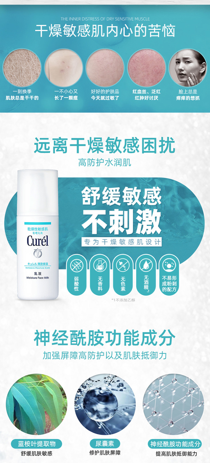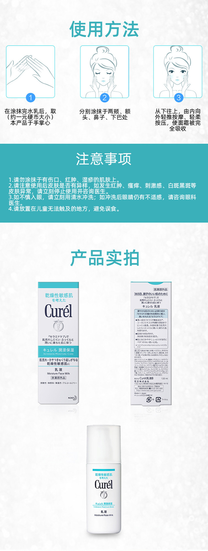 日本花王Curel珂润乳液✨敏感肌专用 120ml☘️敏感性皮肤适用✨弱酸性, 无香料,无色素,无酒精,🍀防敏感配方,让肌肤回复高密度水润状态,感觉柔软💦,同时有效抗御外来刺激。质地轻盈🌻轻易被肌肤吸收,用后感觉滋润饱满水润。❄️