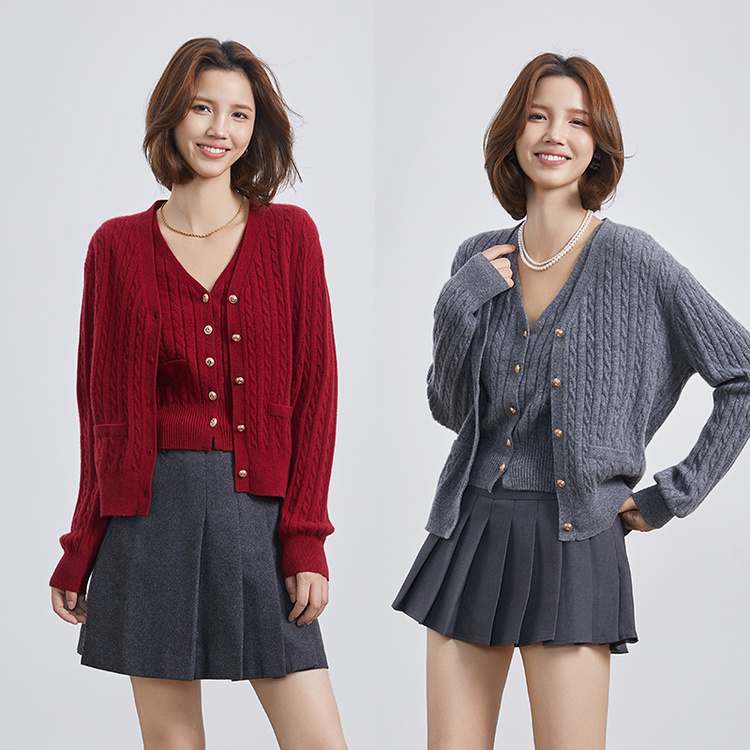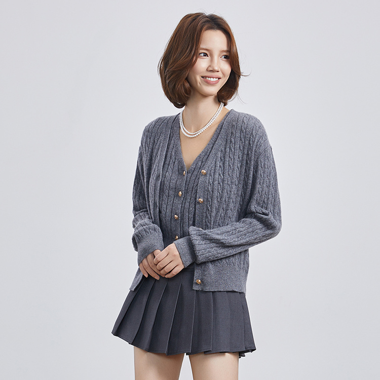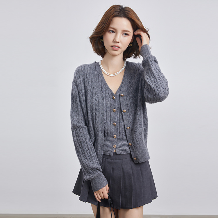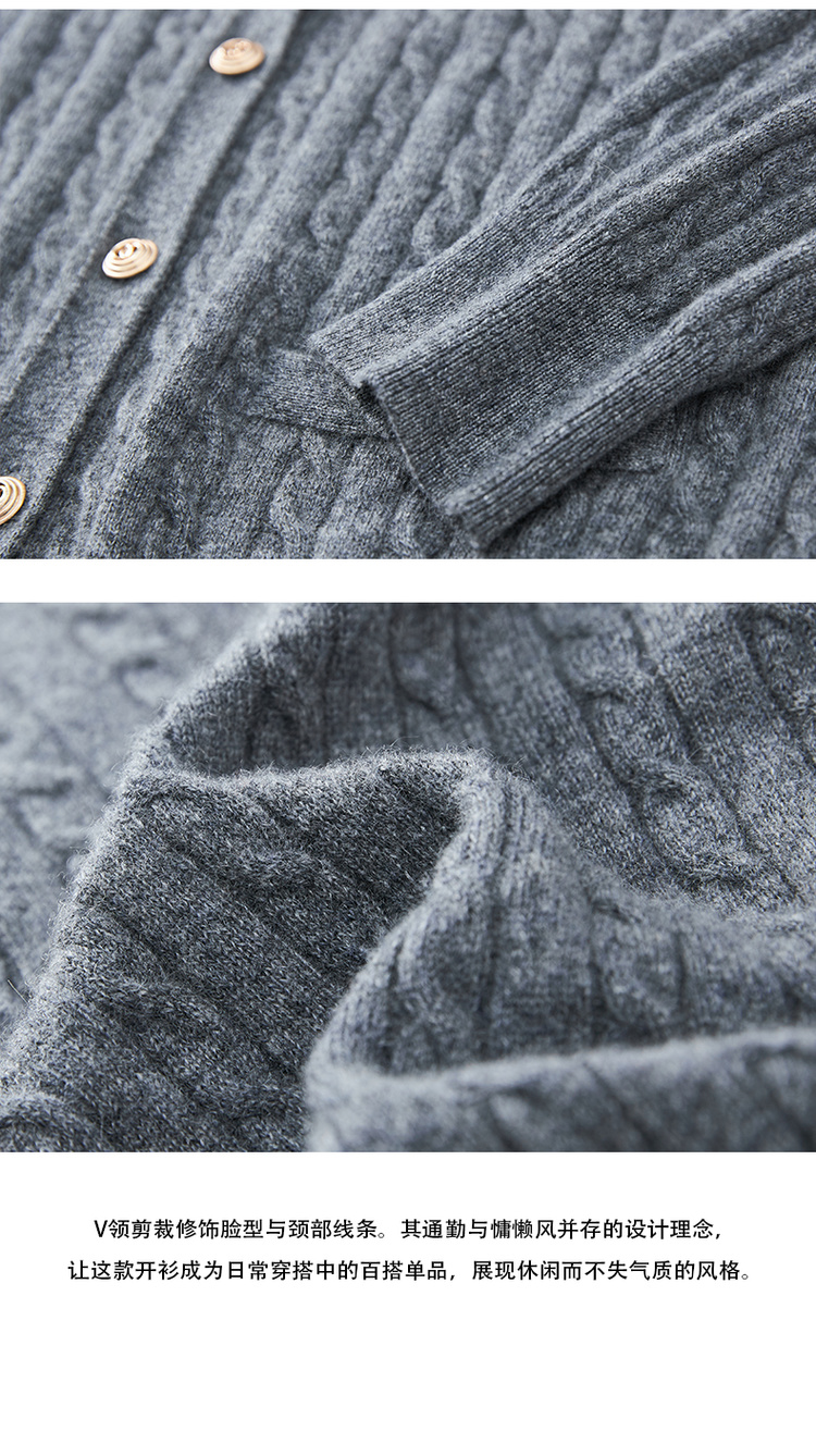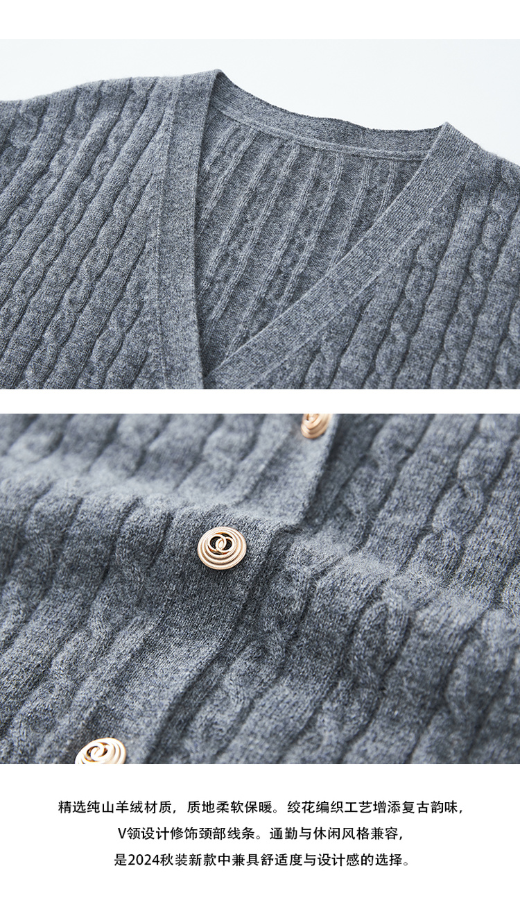 VogoPetite 绞花V领气质100%山羊绒针织开衫 BP141E1543