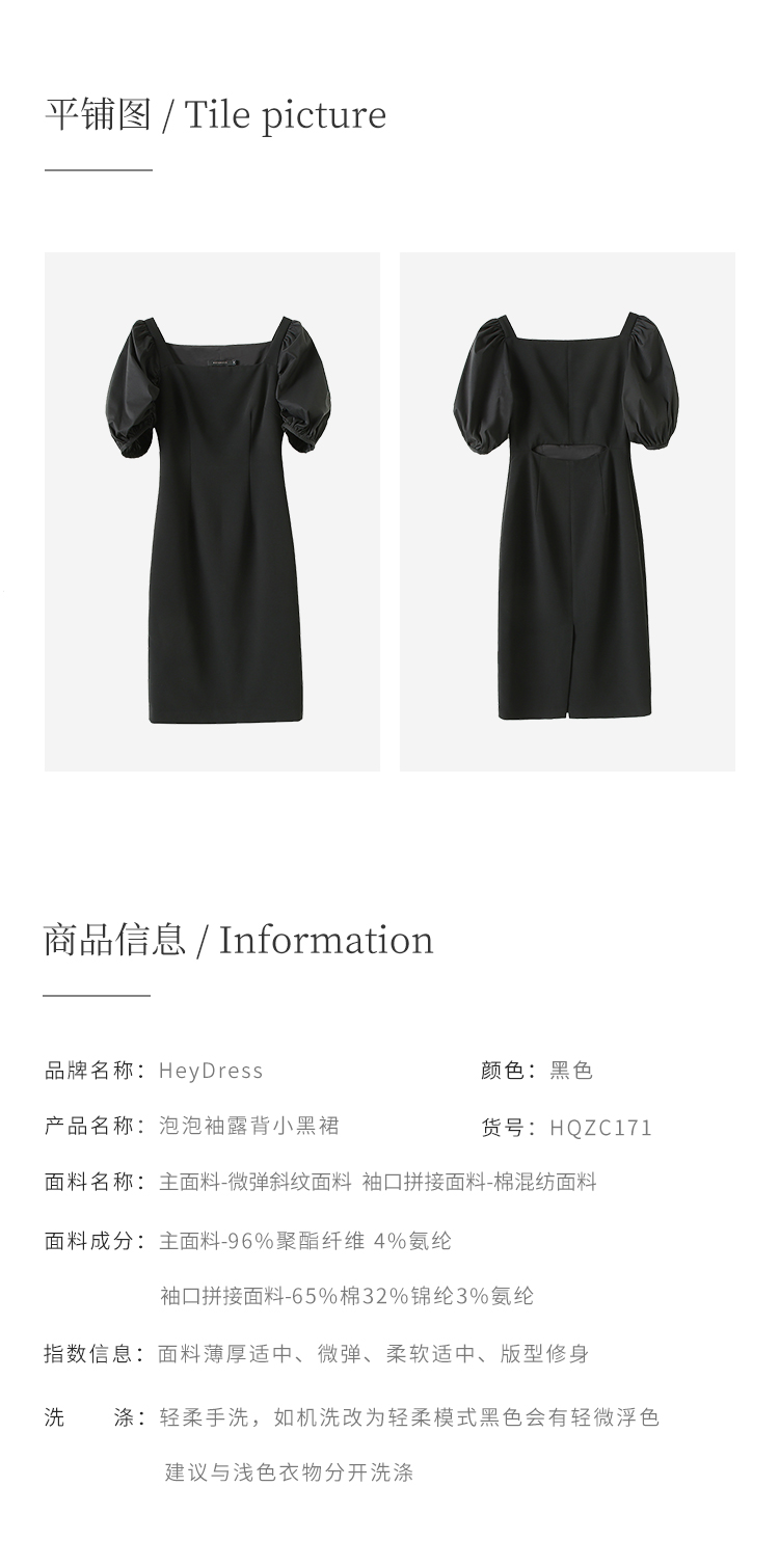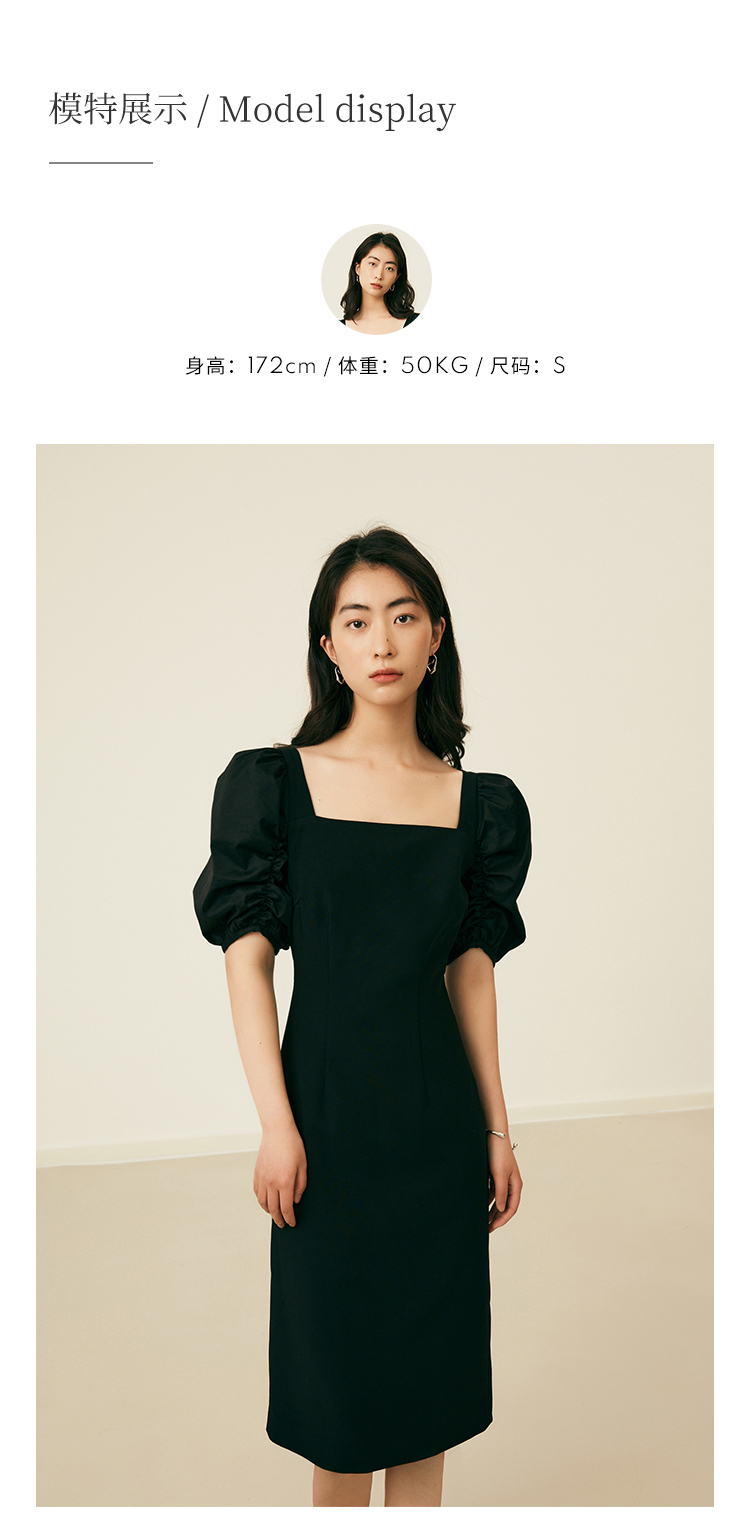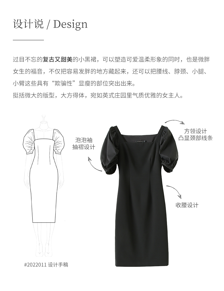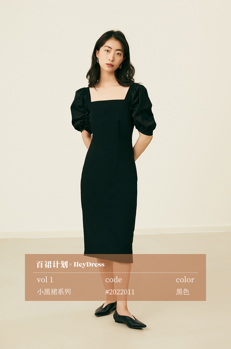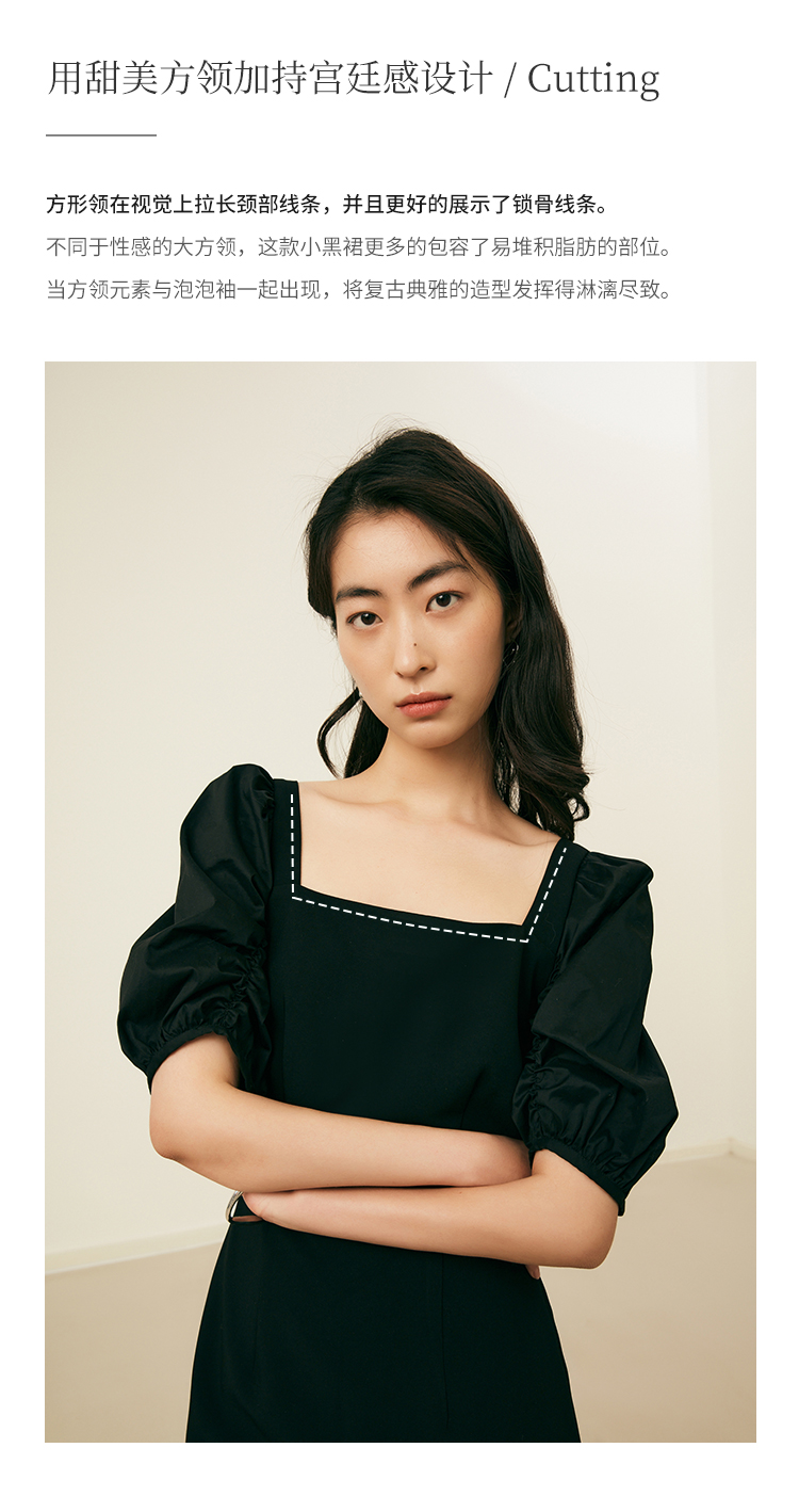 【周四精选福利】HeyDress法式复古连衣裙女夏季方领宫廷感小黑裙优雅泡泡袖裙子