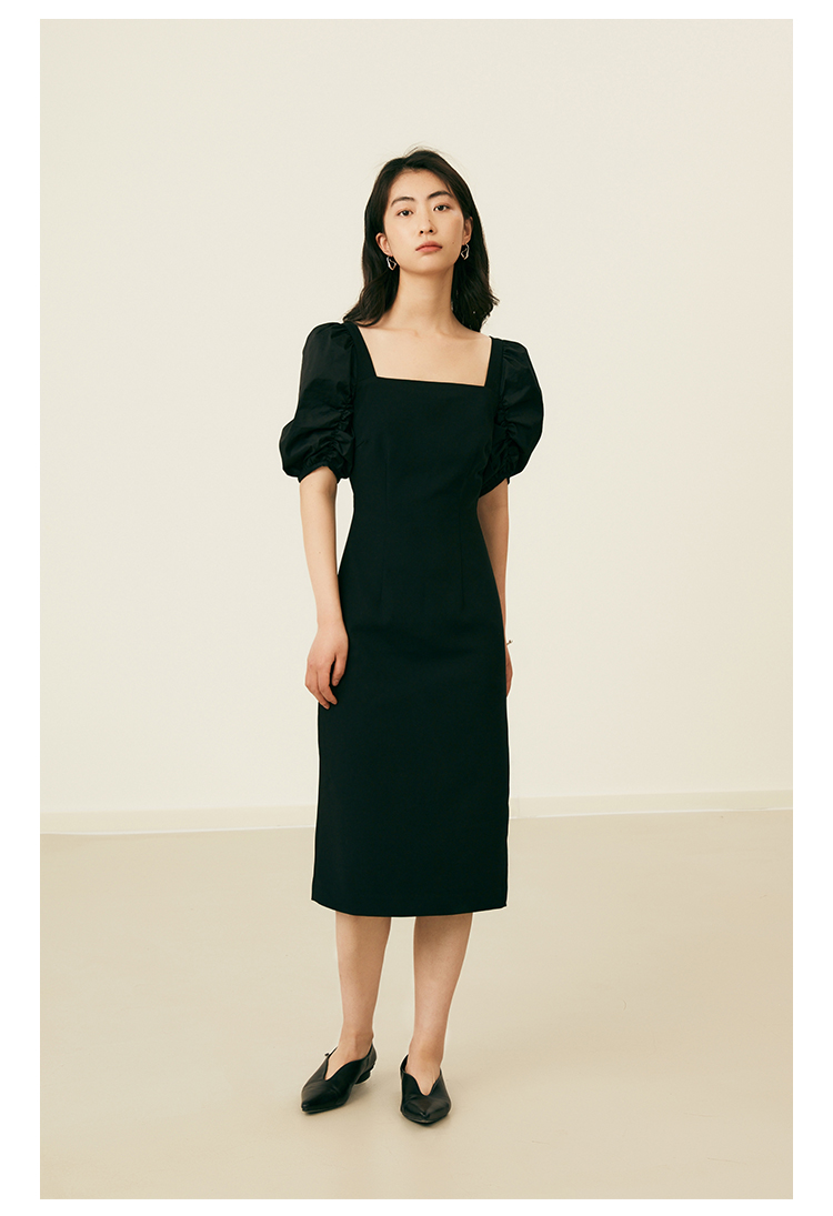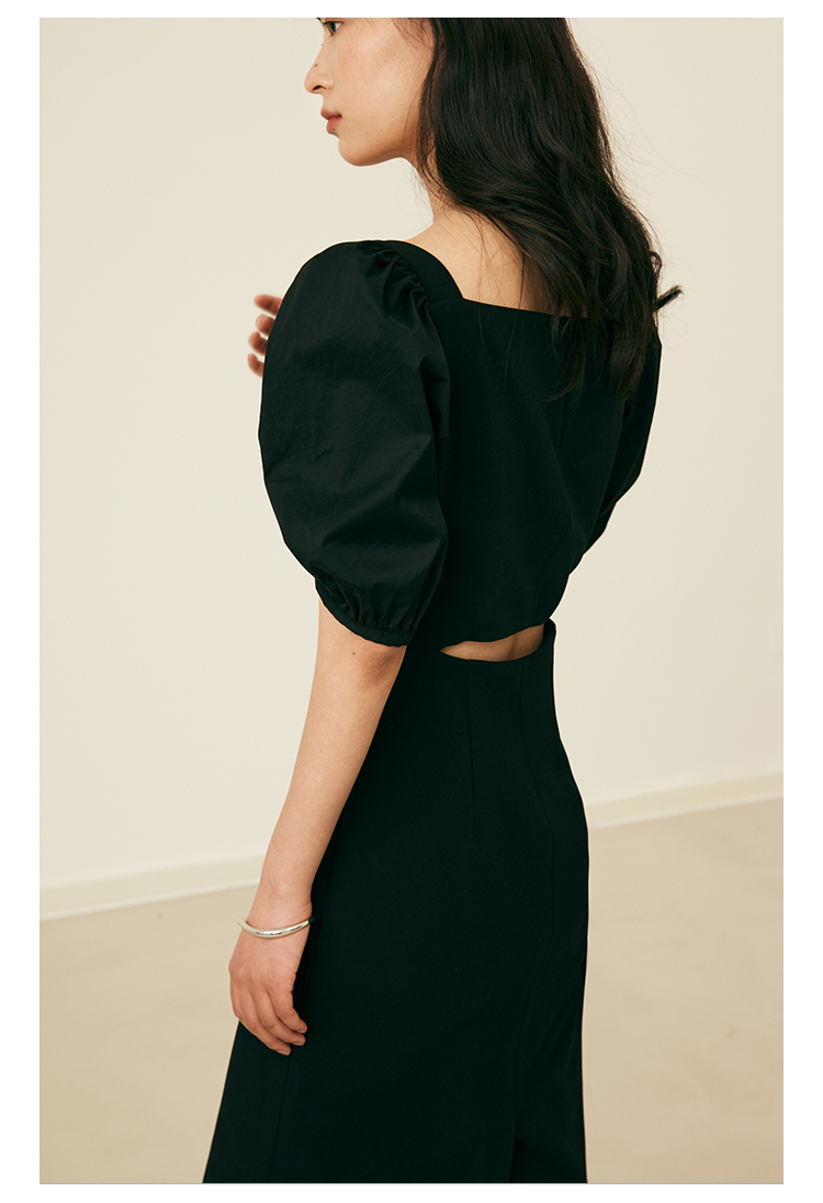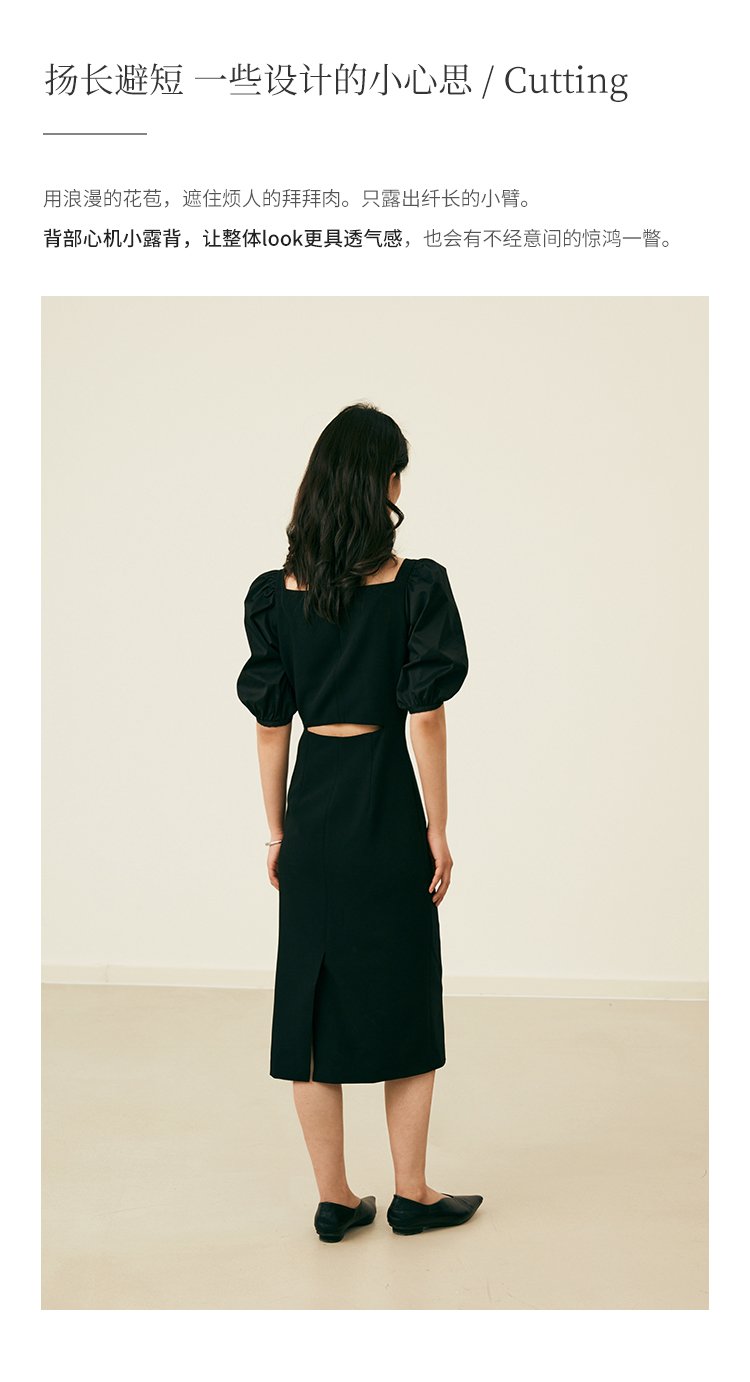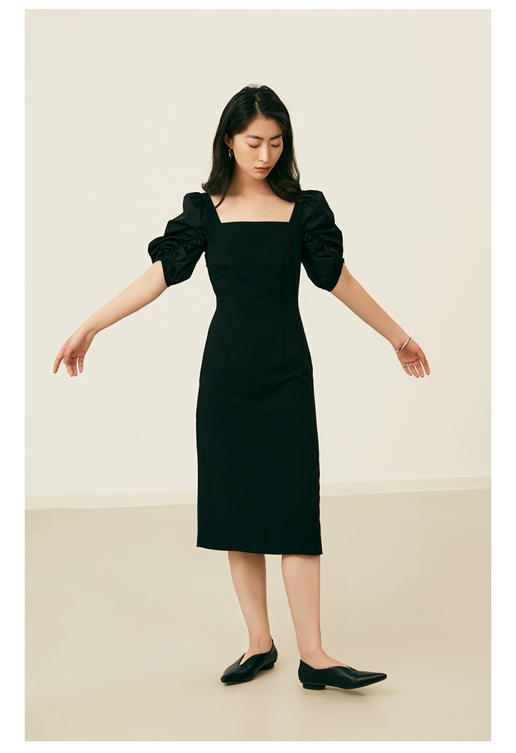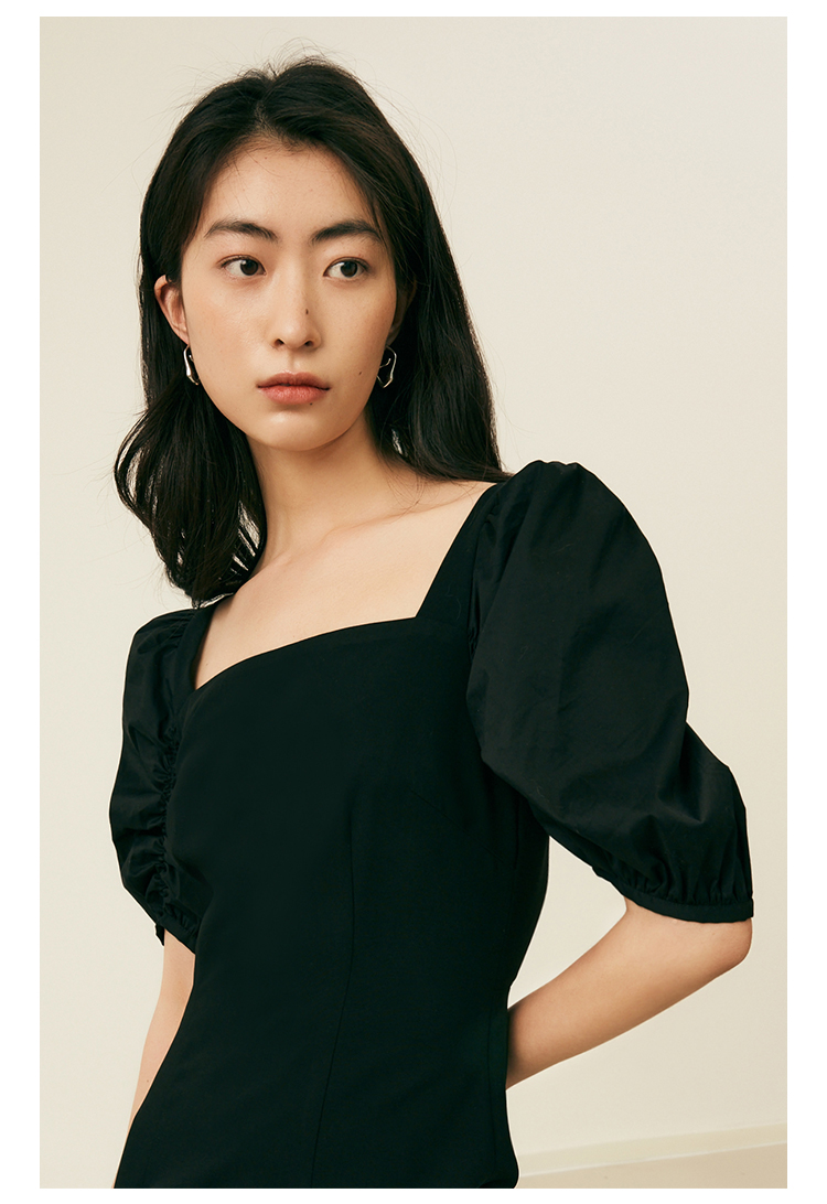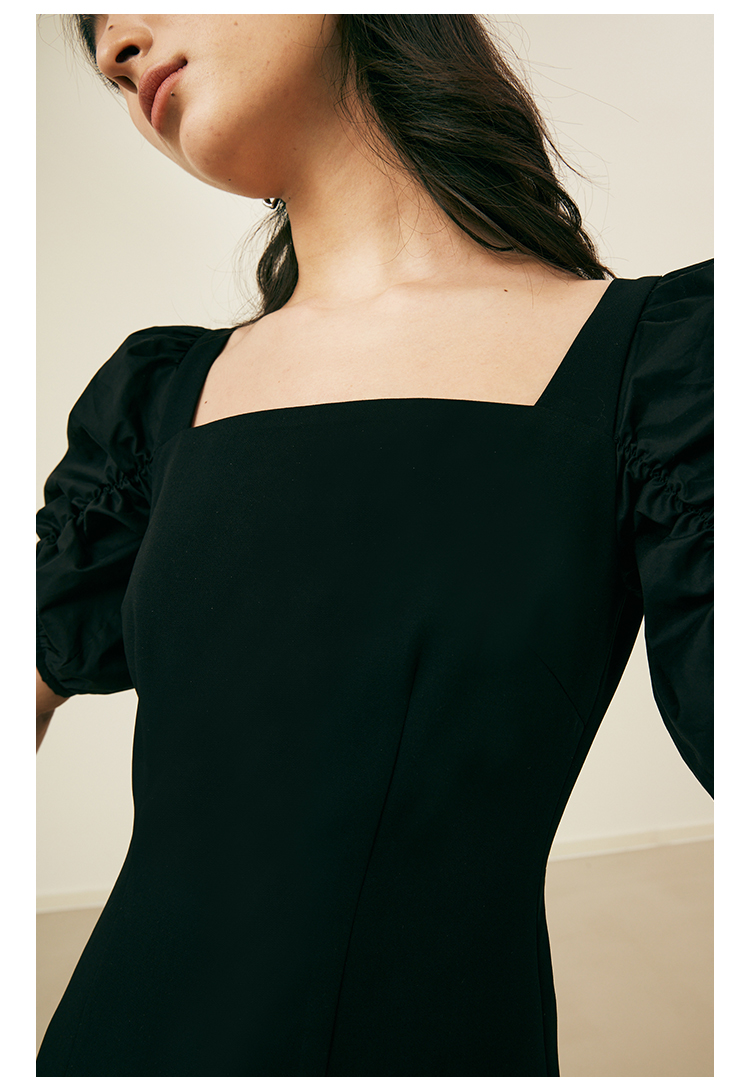 【周四精选福利】HeyDress法式复古连衣裙女夏季方领宫廷感小黑裙优雅泡泡袖裙子