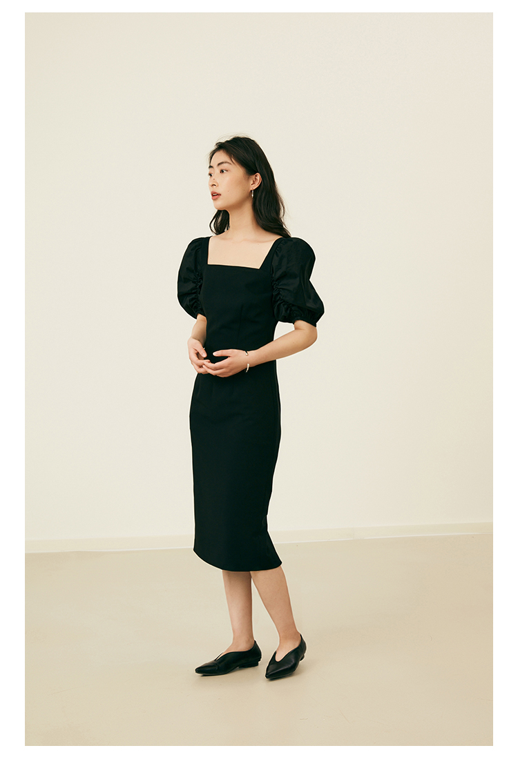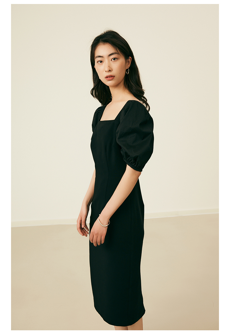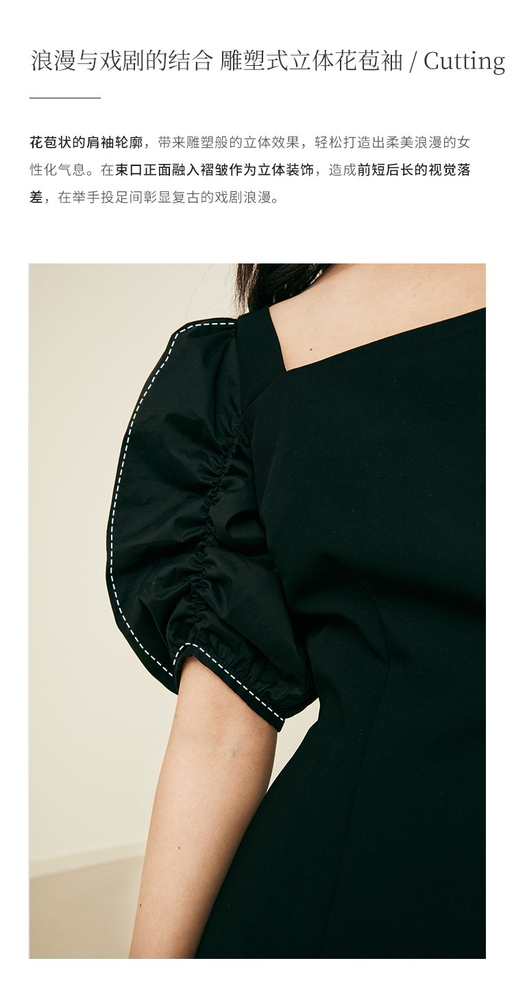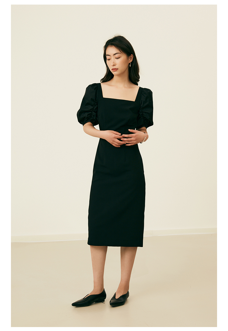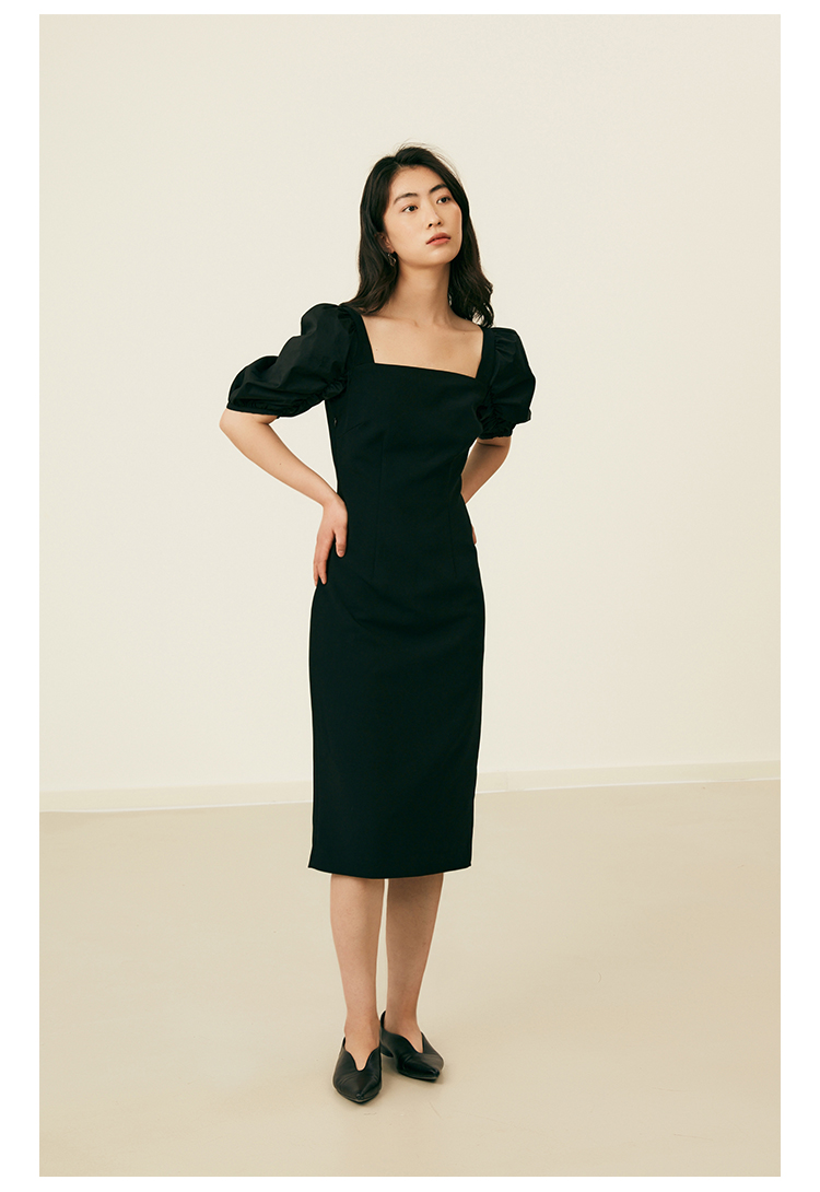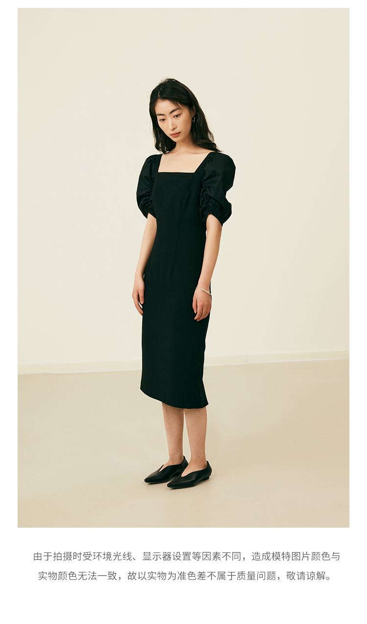【周四精选福利】HeyDress法式复古连衣裙女夏季方领宫廷感小黑裙优雅泡泡袖裙子