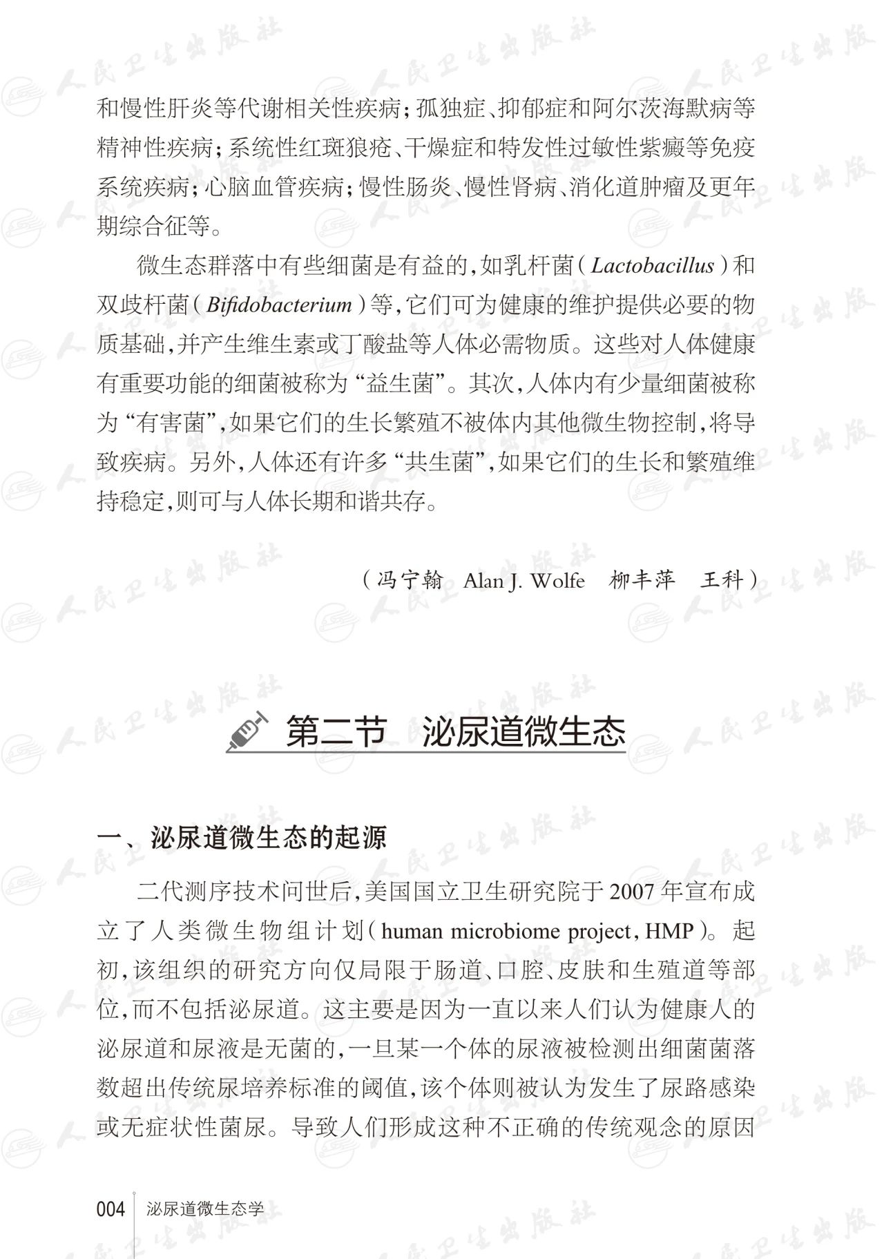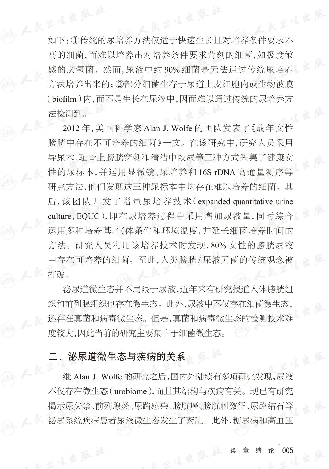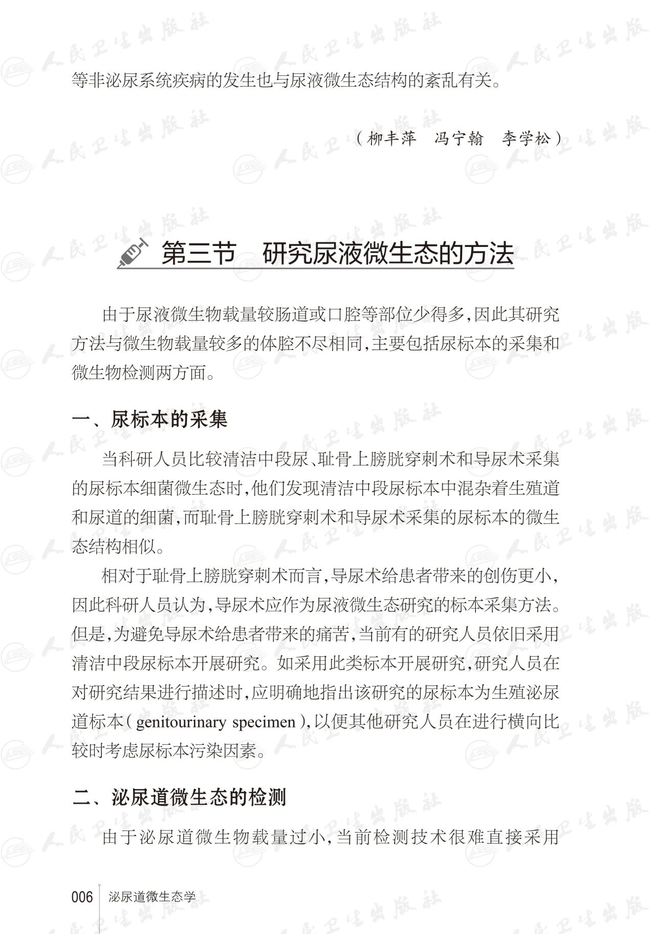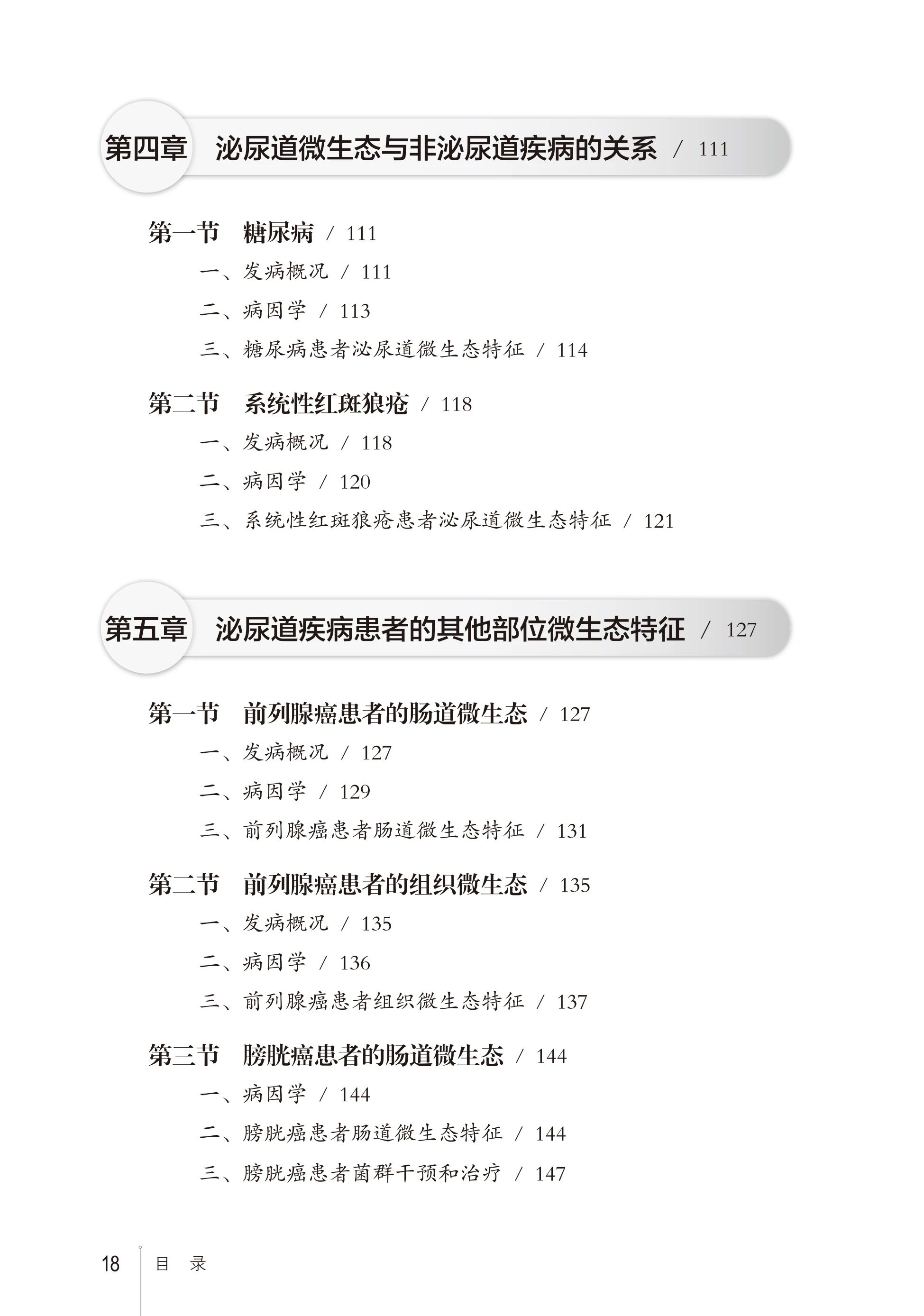在微生态概述中,本书回顾了微生态学的基础概念,介绍了人体微生态的形成,以及微生态与宿主健康的紧密联系,为读者深入理解这一领域奠定了理论基础。在泌尿道微生态部分,我们通过对疾病与泌尿道微生态关系的逐一剖析,希望读者能够更全面地认识泌尿道微生态的多样性和重要性。在研究尿液微生态的方法部分,本书详细介绍了尿标本的采集和泌尿道微生态的检测技术,这将帮助读者更好地理解微生态研究与临床应用的技术手段。