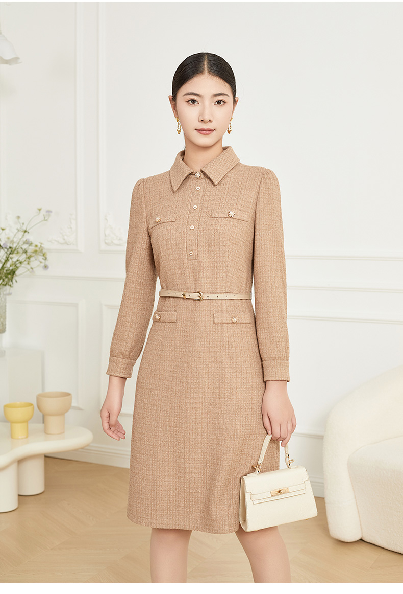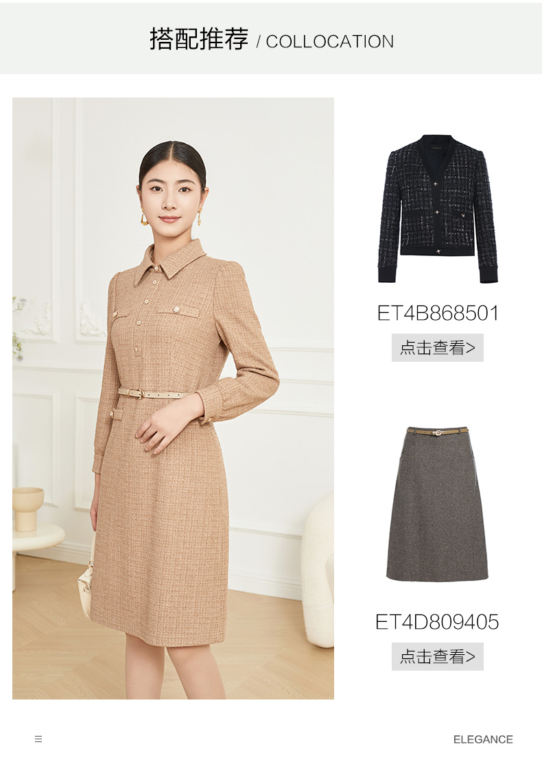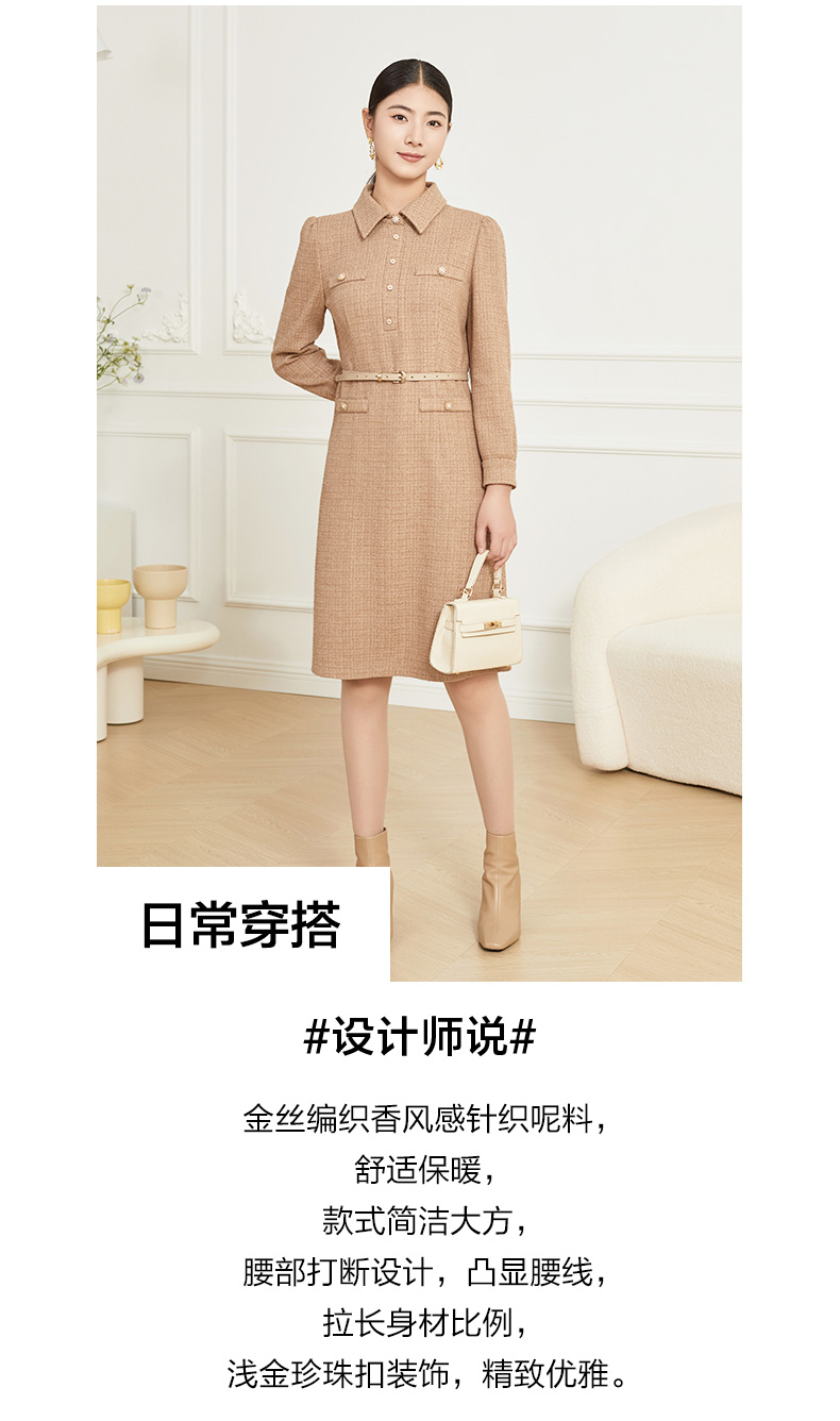 乔万尼绵羊毛小香风收腰设计连衣裙新品ET4E966