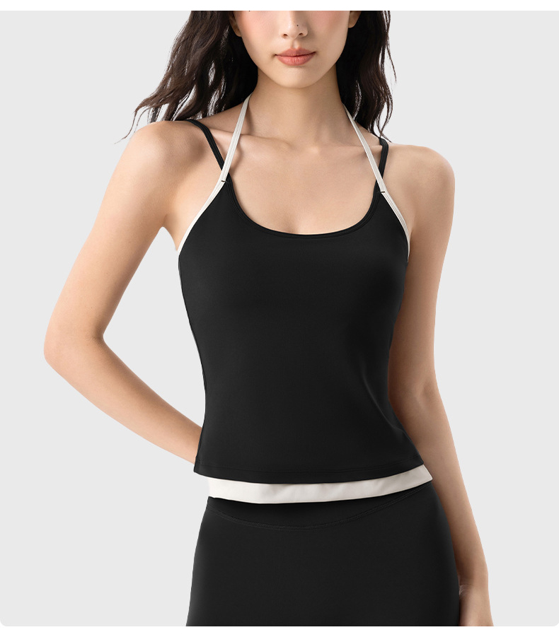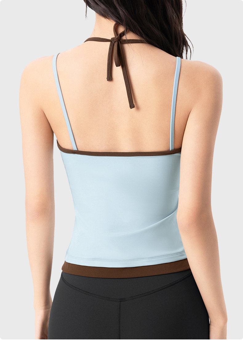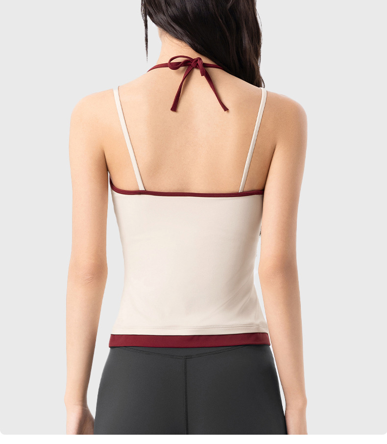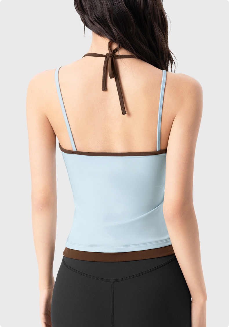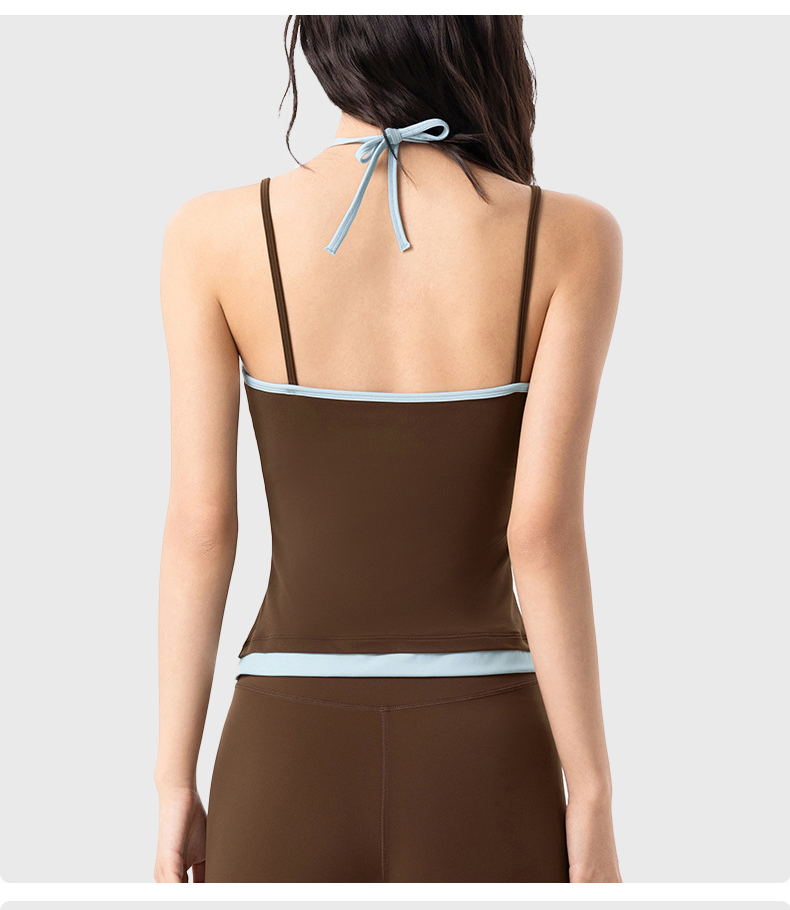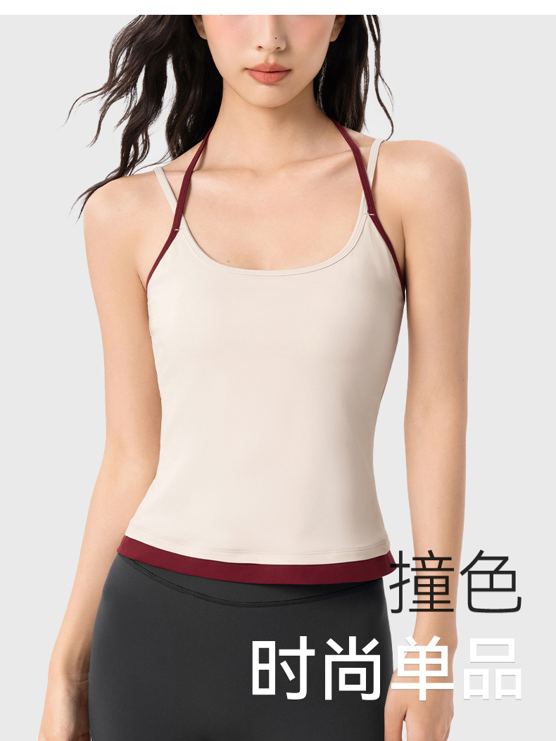【限时秒】YOGACODE【火树银花系列】撞色挂脖瑜伽背心女固定杯遮副乳吊带运动内衣V型领内搭健身上衣DWC125614
