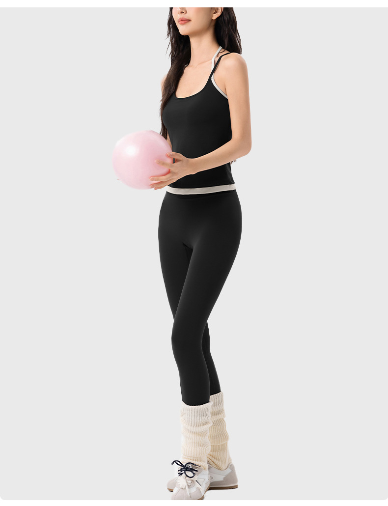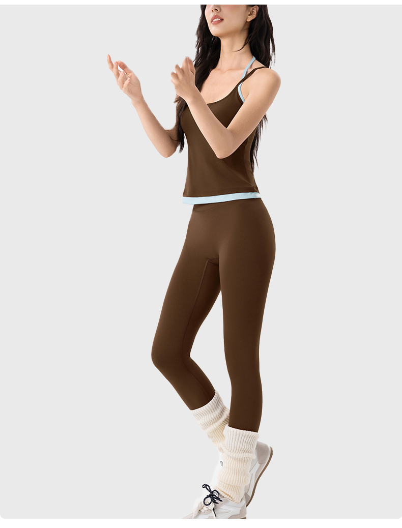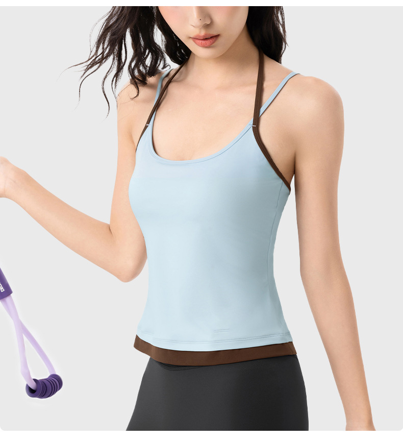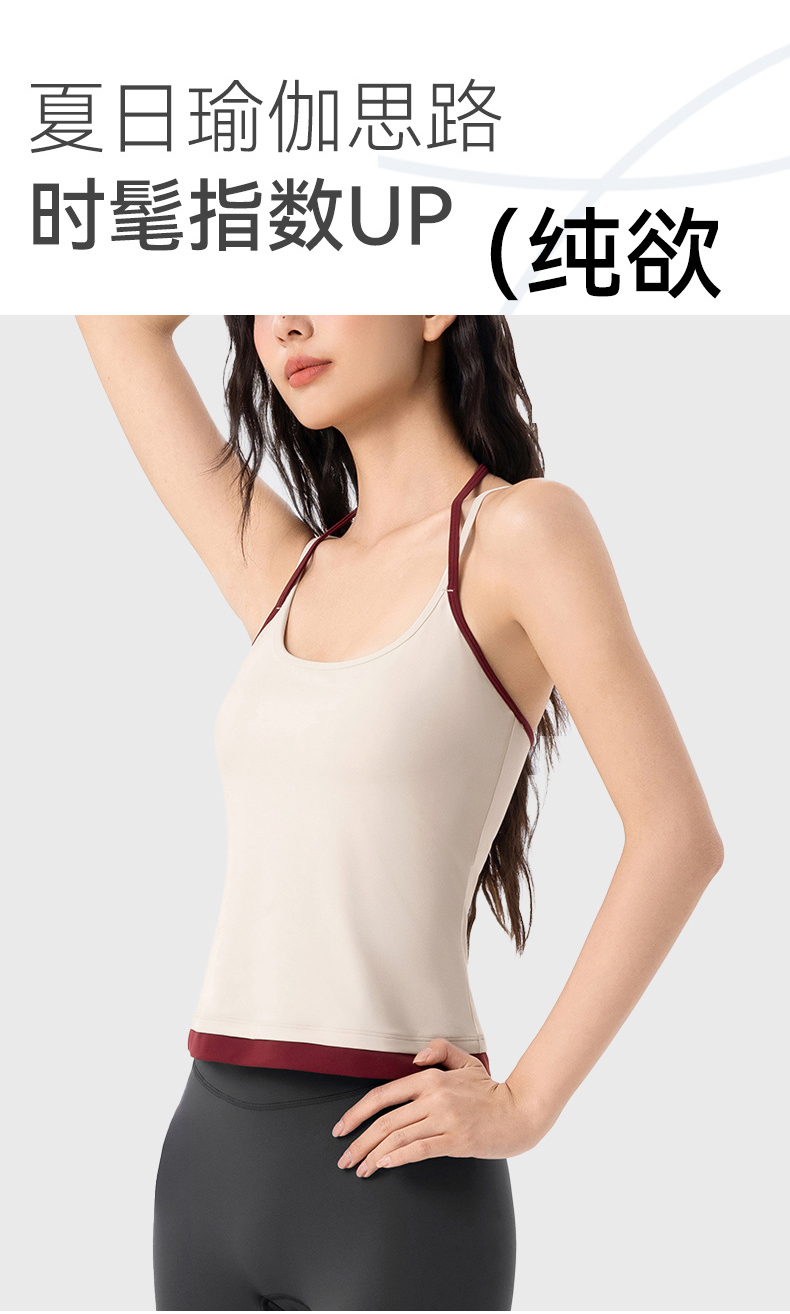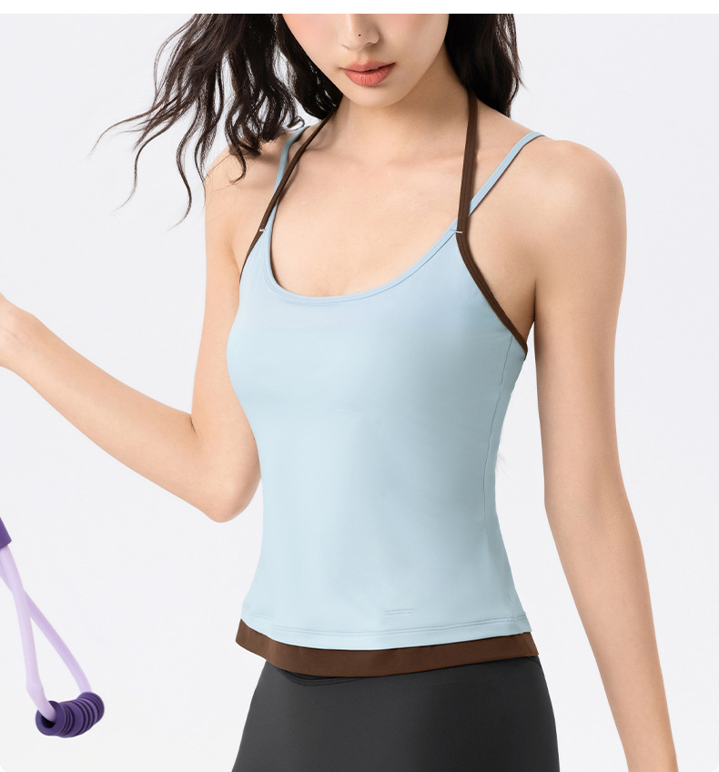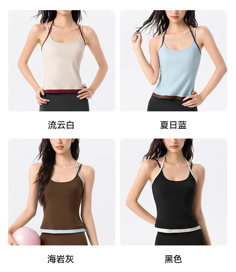 【限时秒】YOGACODE【火树银花系列】撞色挂脖瑜伽背心女固定杯遮副乳吊带运动内衣V型领内搭健身上衣DWC125614