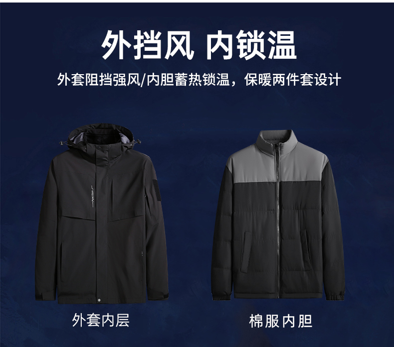 【可拆卸棉衣内胆】【新款DK】大依优型大码三合一户外衣两件套外套可脱卸帽冲锋衣男宽松加肥加大码上衣夹克户外