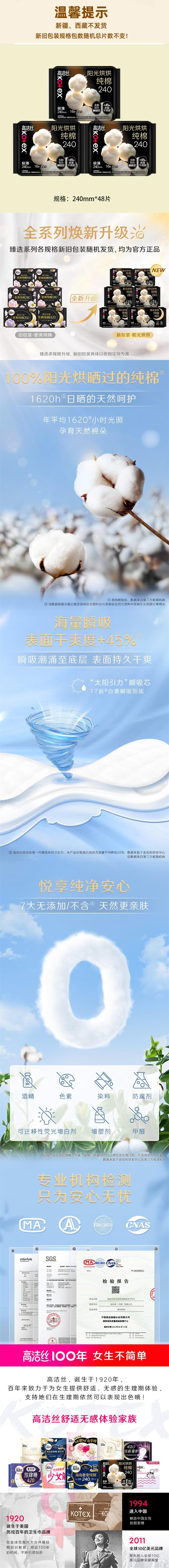 高洁丝 全新阳光烘烘纯棉日用卫生巾240mm16片*3包 JGS0HR16P3B