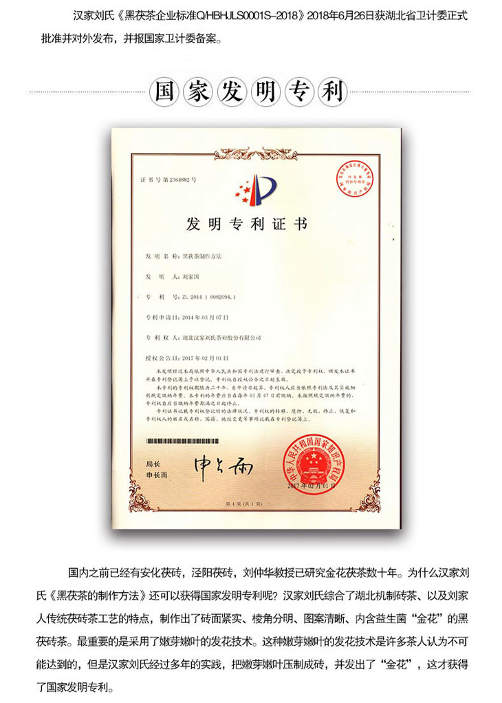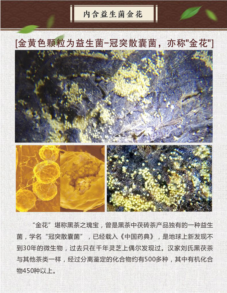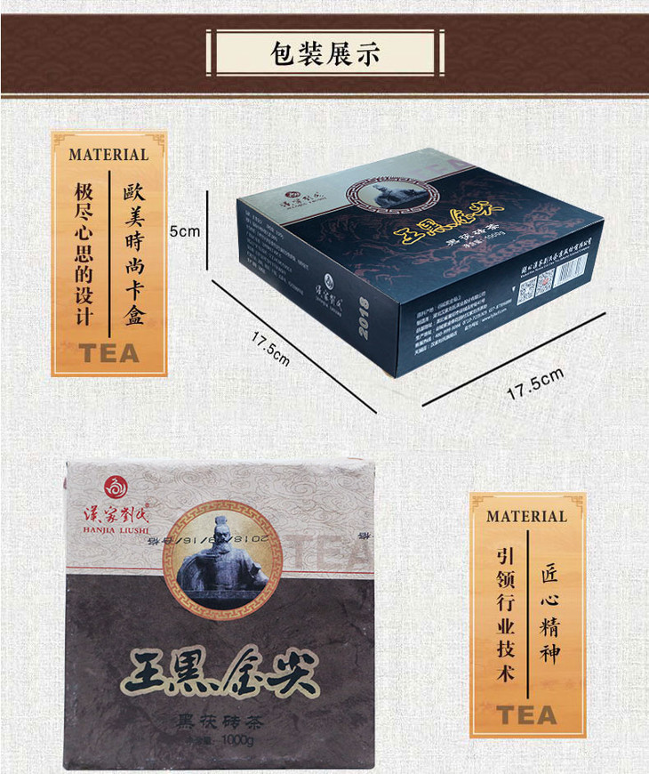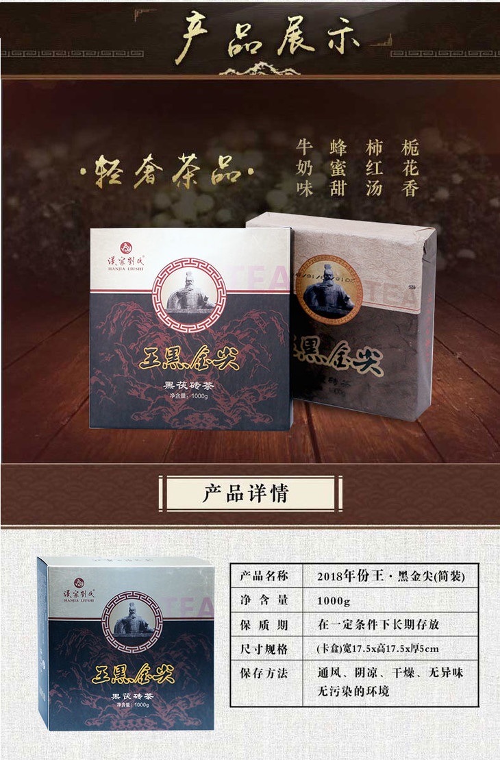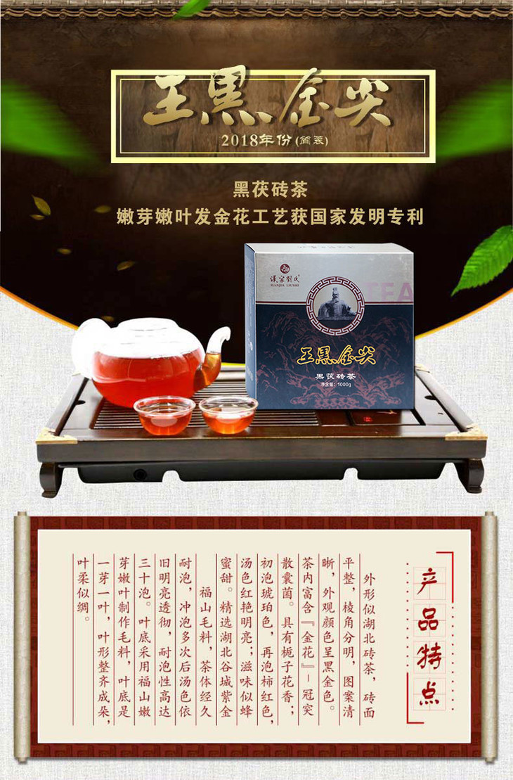 汉家刘氏 2018王黑金尖 黑茶 茶叶 金花黑茶 茯砖茶 1kg