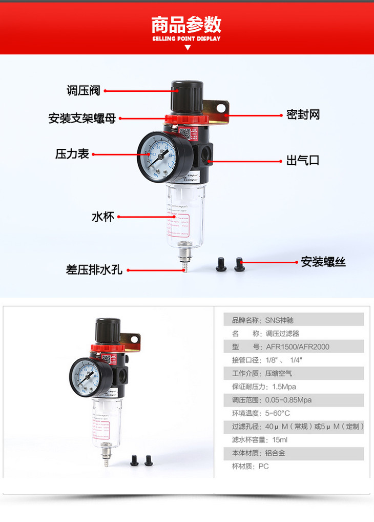 SNS神驰 亚德客型调压过滤器 AFR系列 AFR1500调压阀 空气过滤器