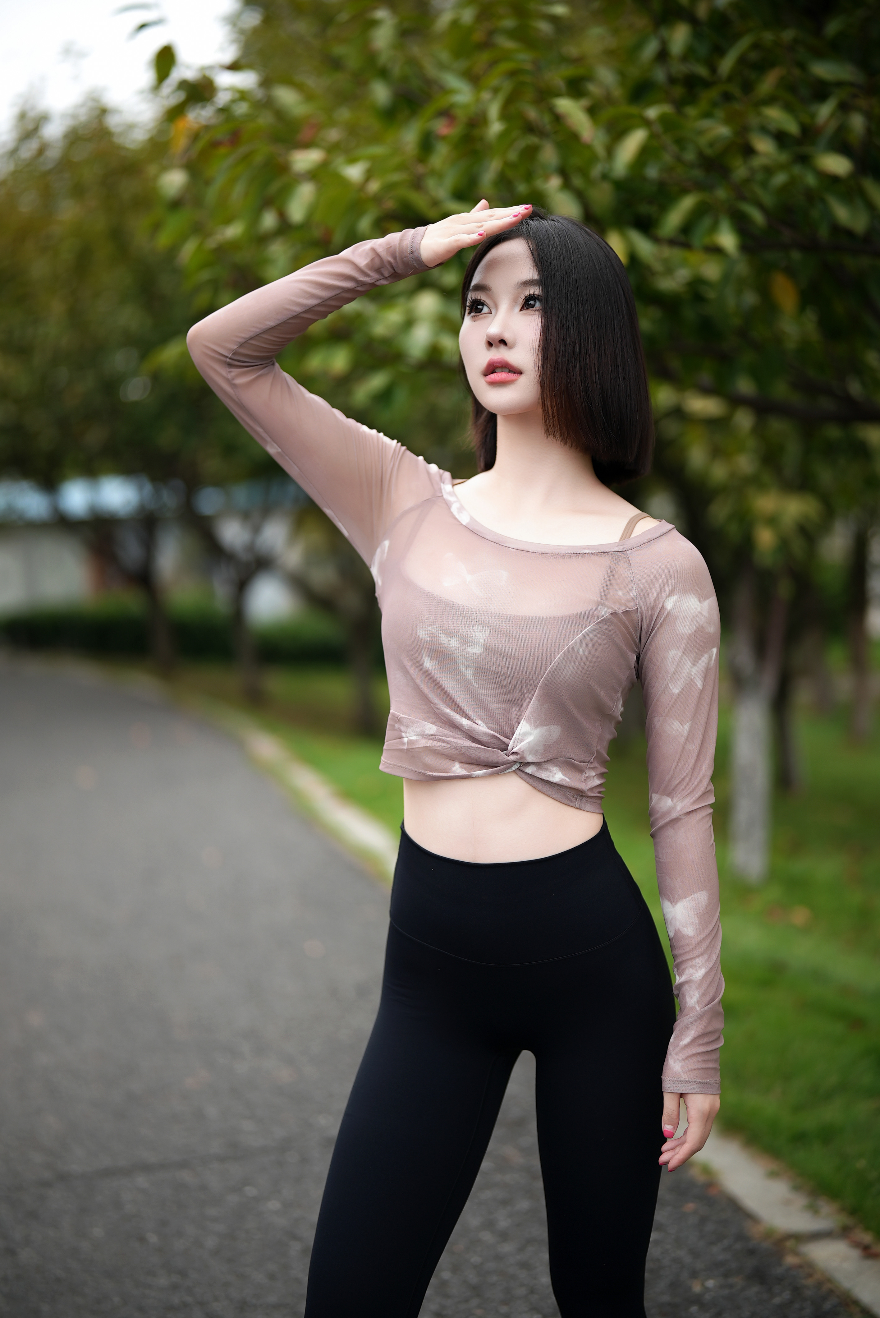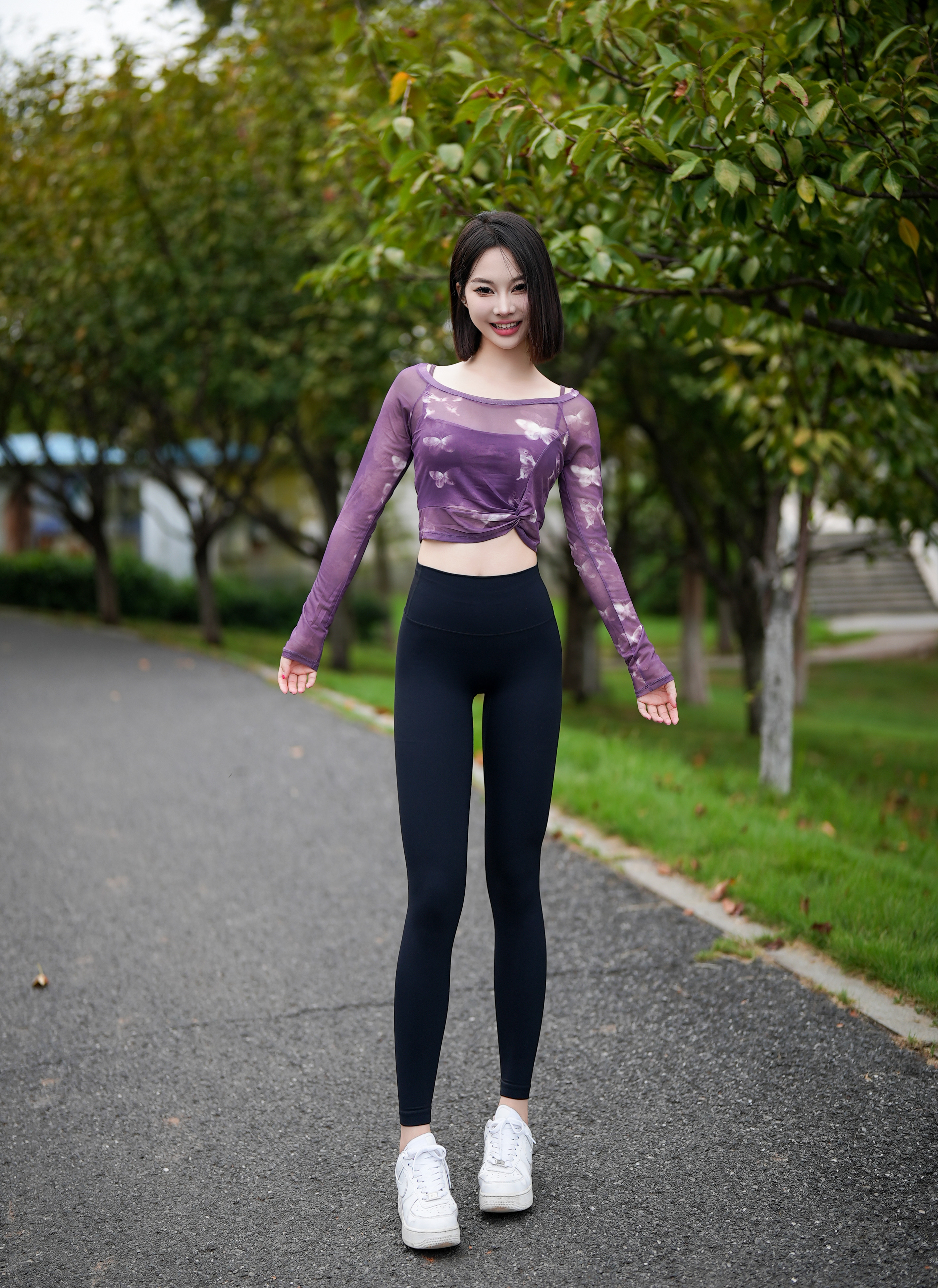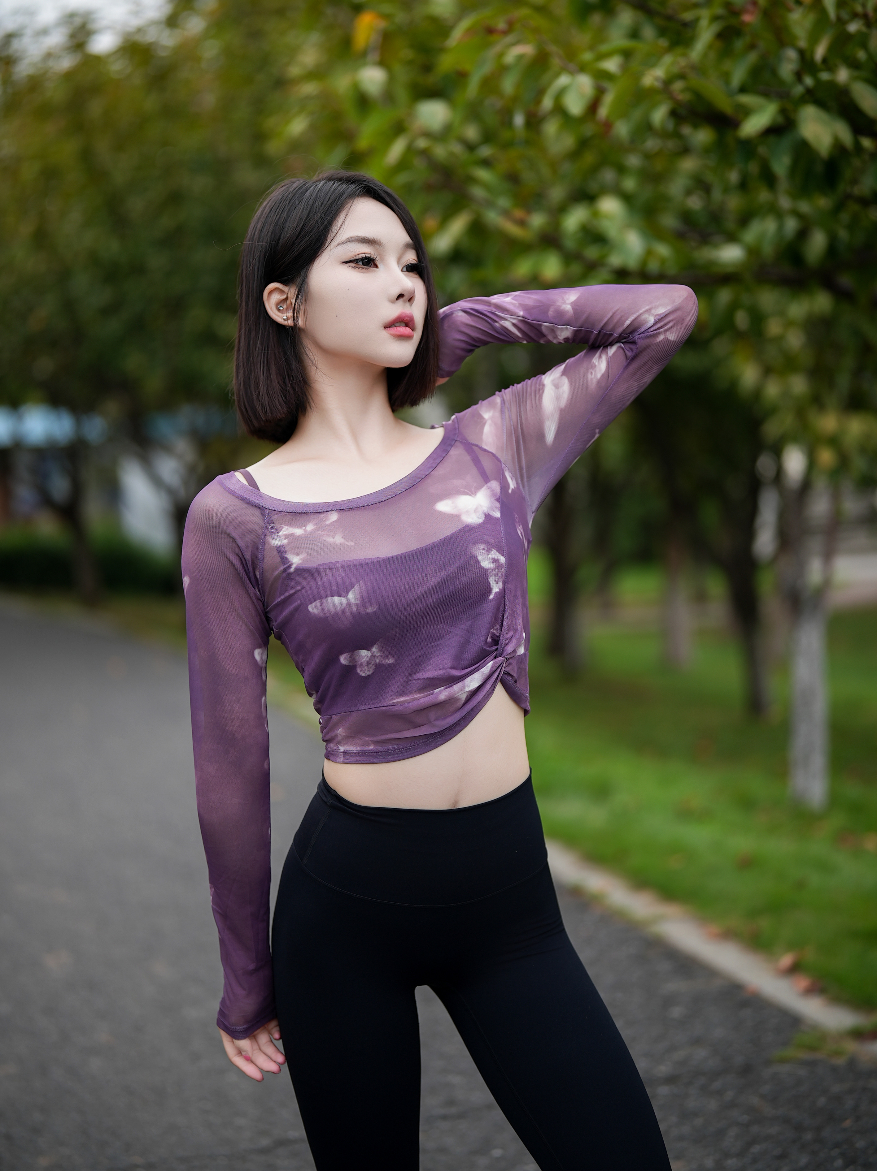 跃牌【禅语梵心】花蝴蝶假两件运动T恤女长袖带胸垫瑜珈服网纱上衣速干显瘦健身衣CX2925