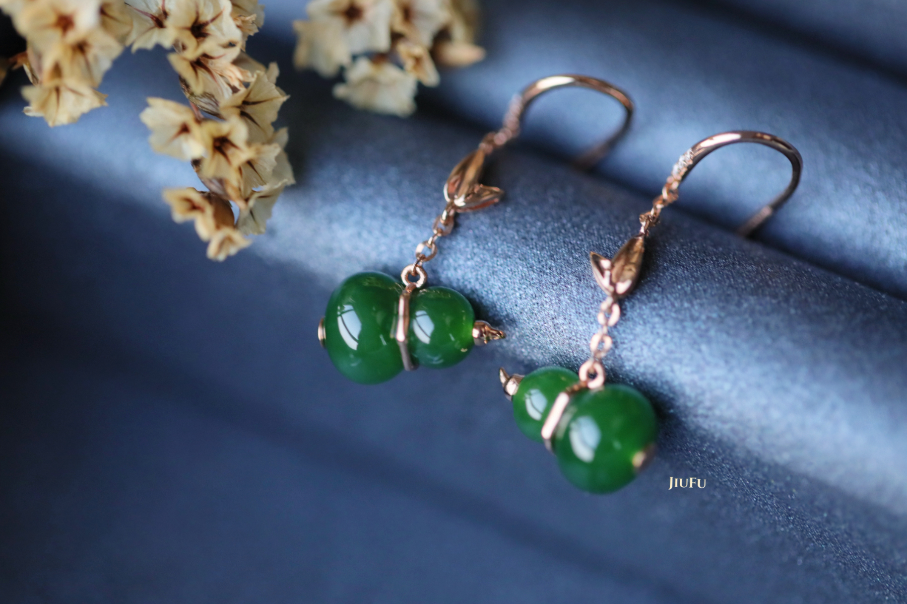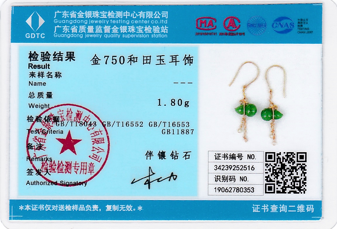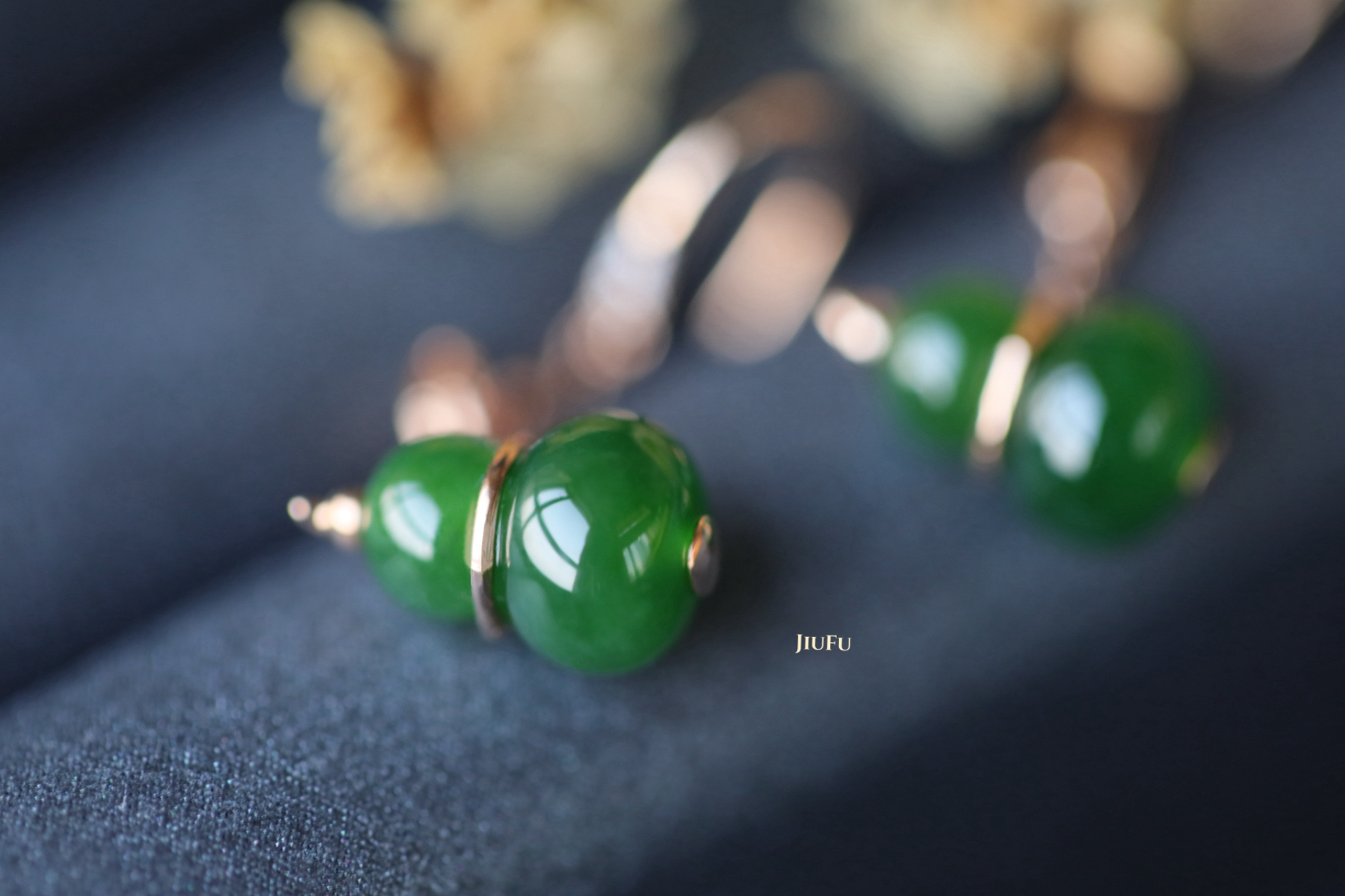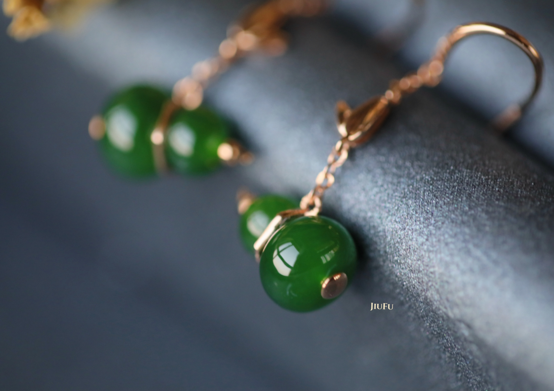 18K玫瑰金和田玉(碧玉)耳饰