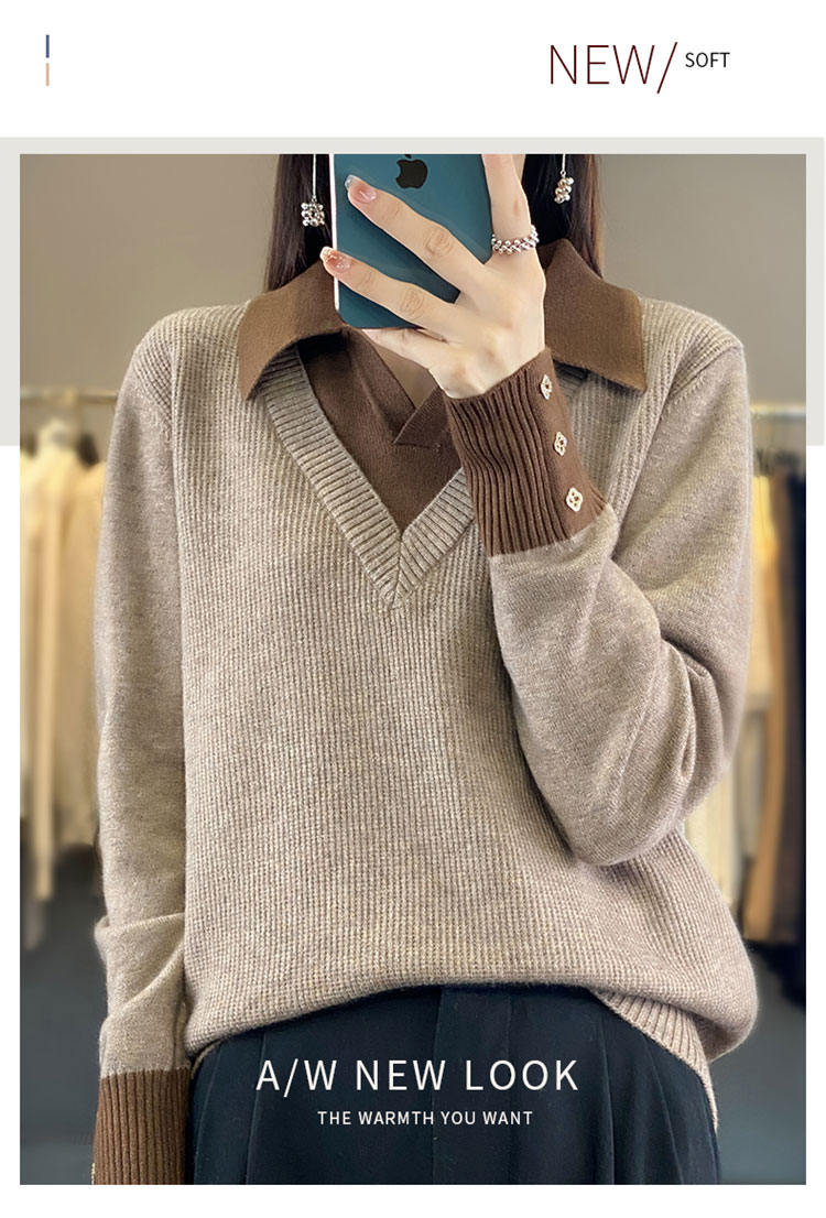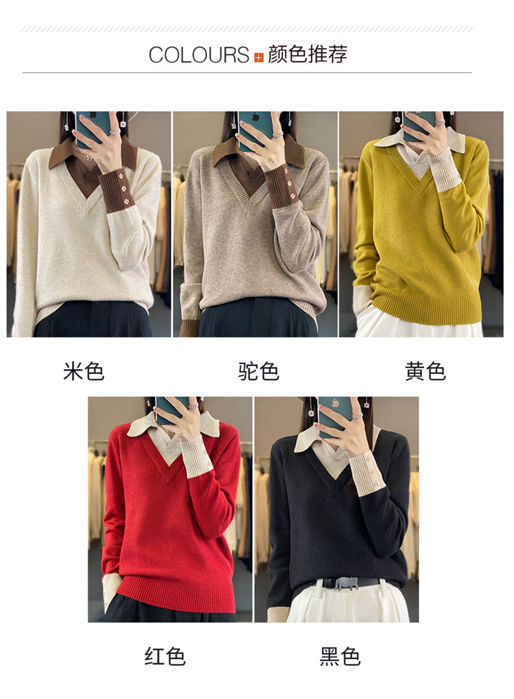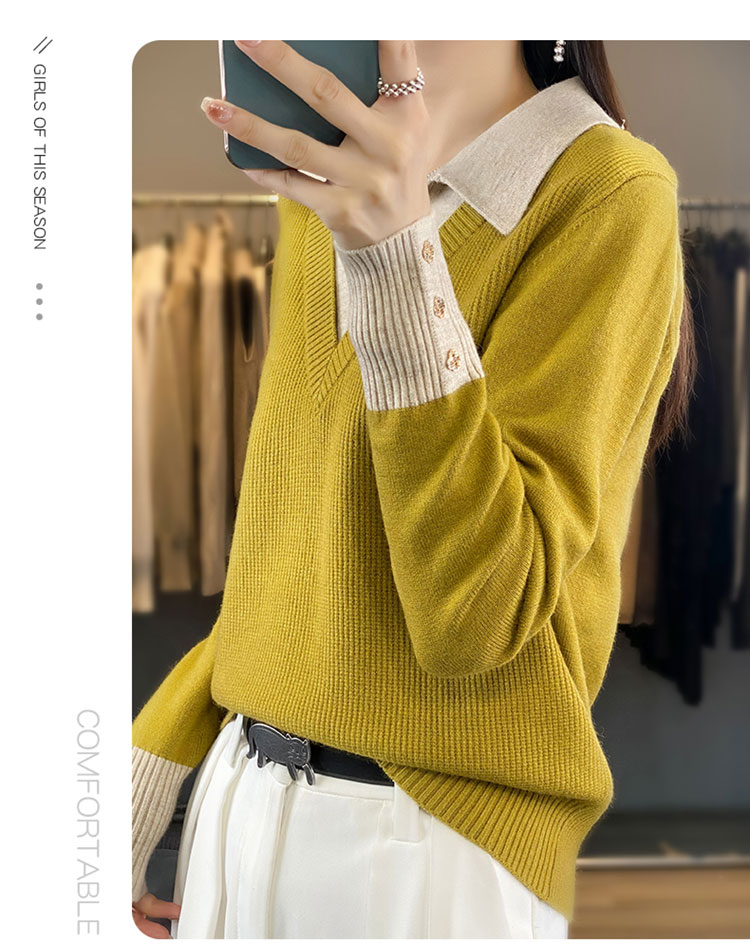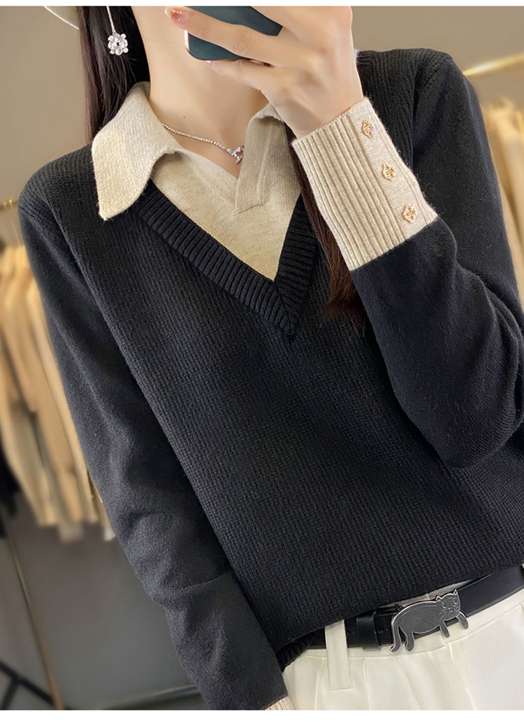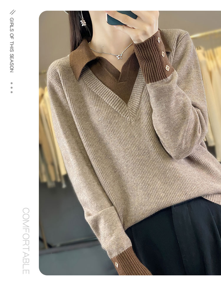 【三石专属】SimpleRetro午后微风 法式撞色假两件荡领t恤女秋设计感长袖上衣