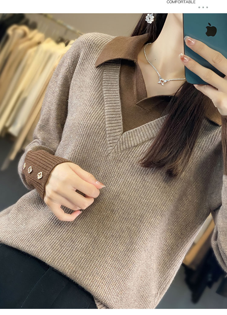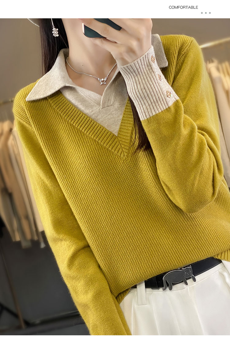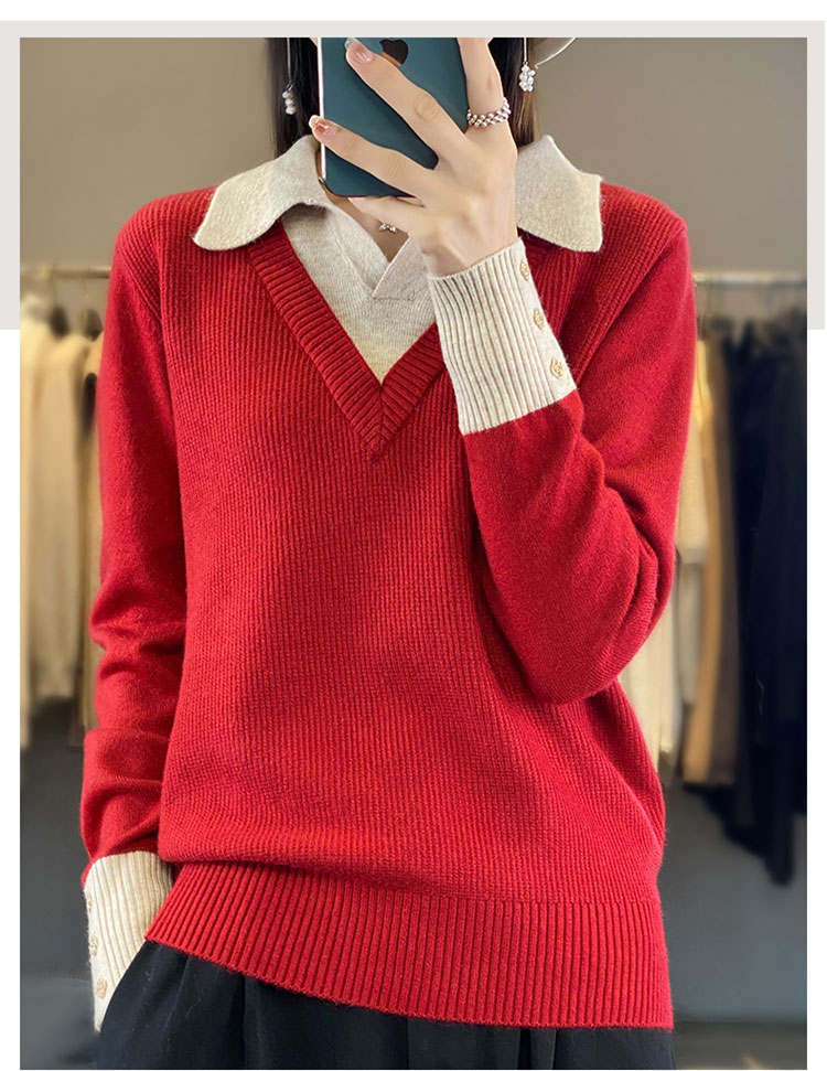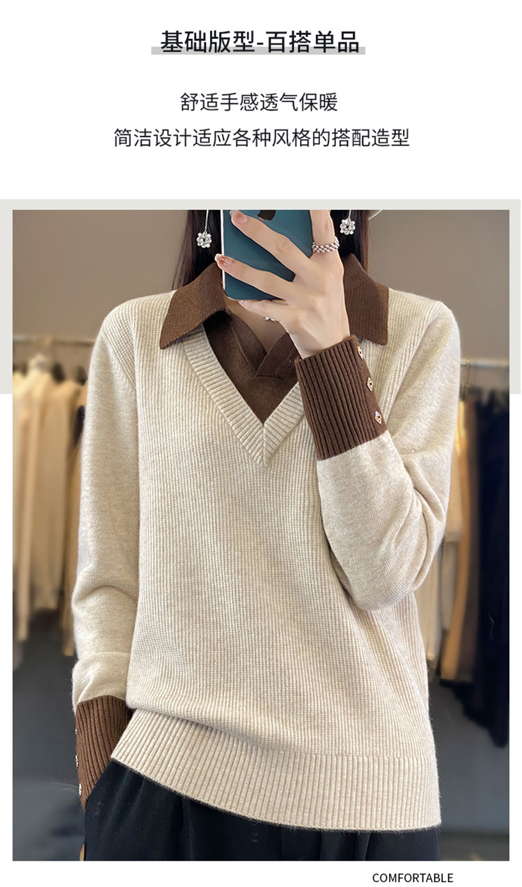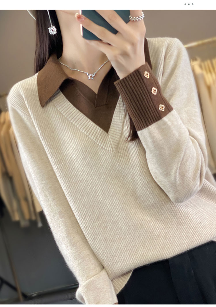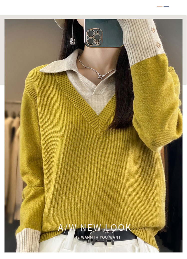 【三石专属】SimpleRetro午后微风 法式撞色假两件荡领t恤女秋设计感长袖上衣