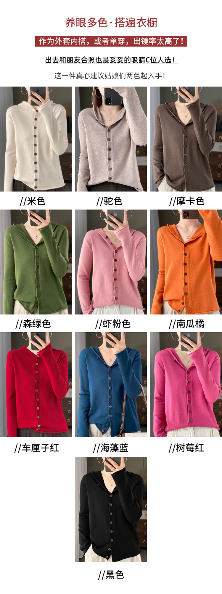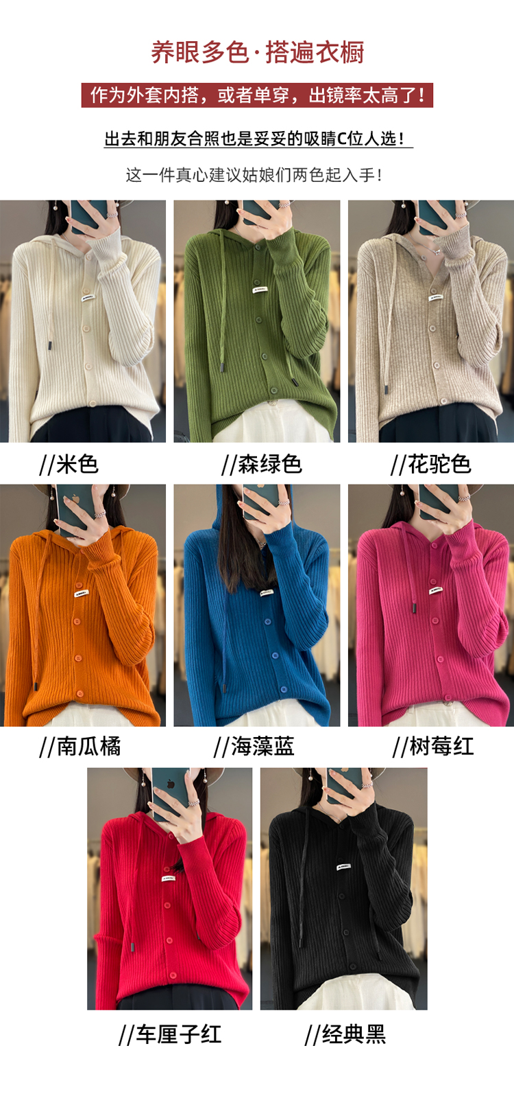 温暖百搭多款可选安迪绒绞花连帽开衫打底衫半身裙