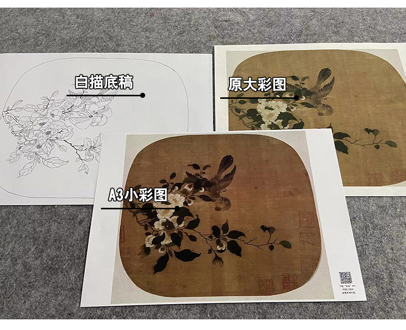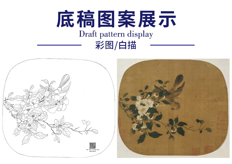 【大彩图】佚名工笔画白描底稿宋画小品《争禽图》白色山茶花临摹勾线花鸟线稿GH17