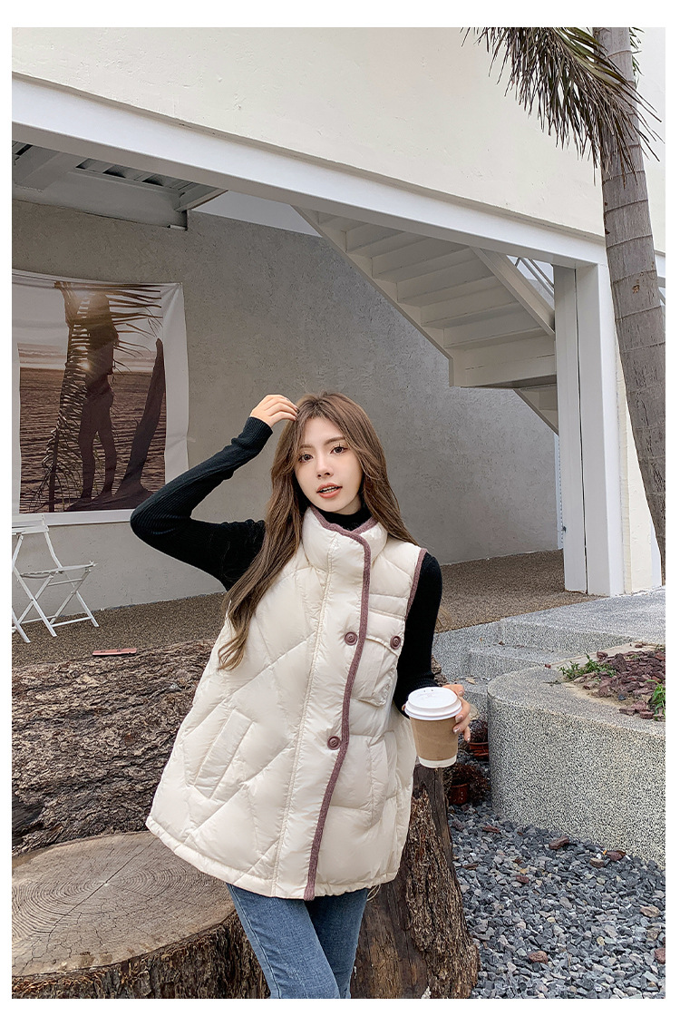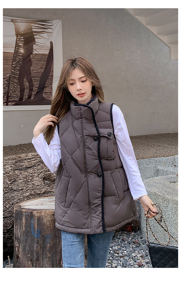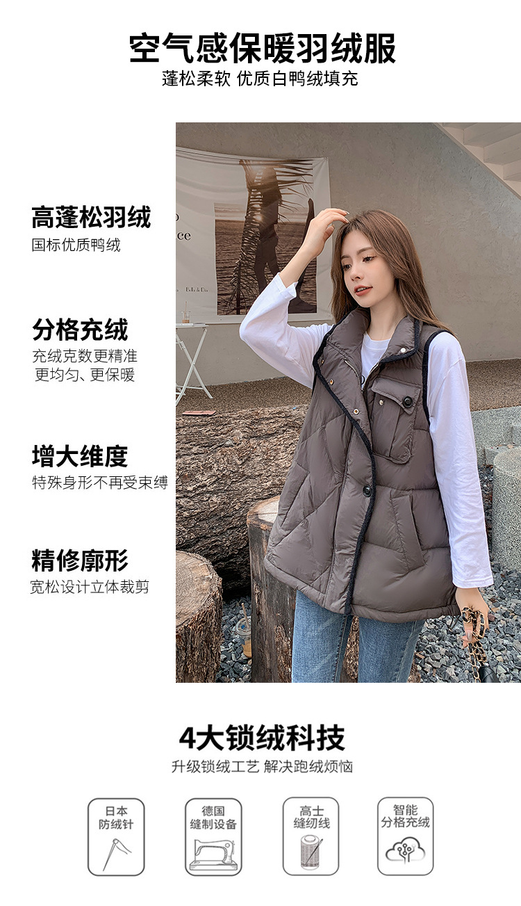 FF-8805秋冬新款撞色胖mm羽绒马夹200斤250斤280斤宽松马夹外套8805