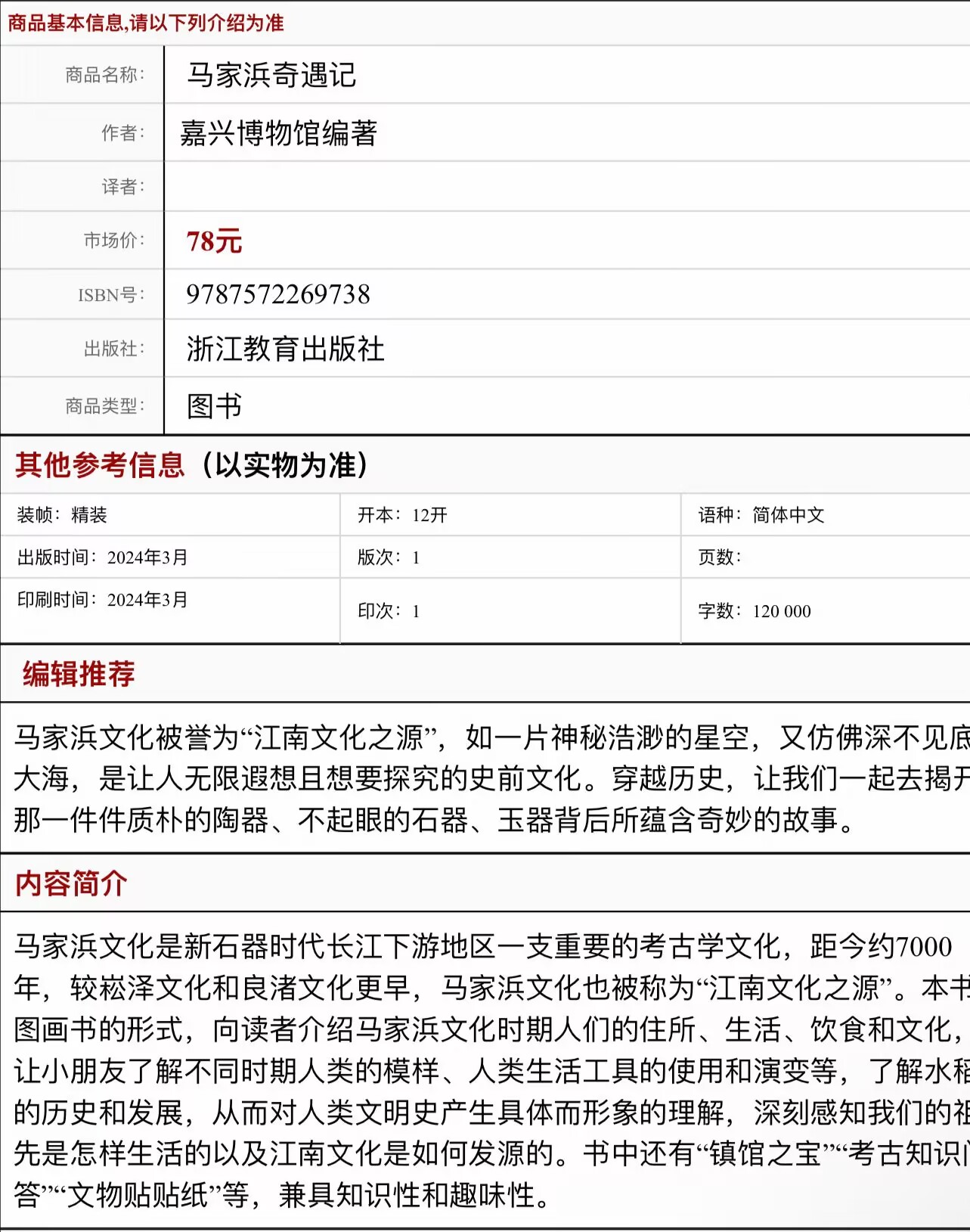 马家浜奇遇记 江南文化之源马家浜文化史前文化科普绘本