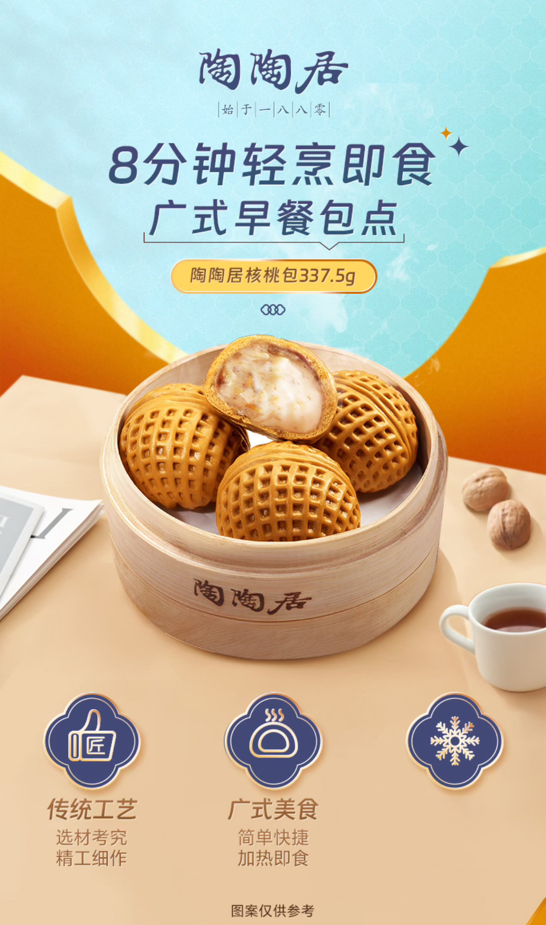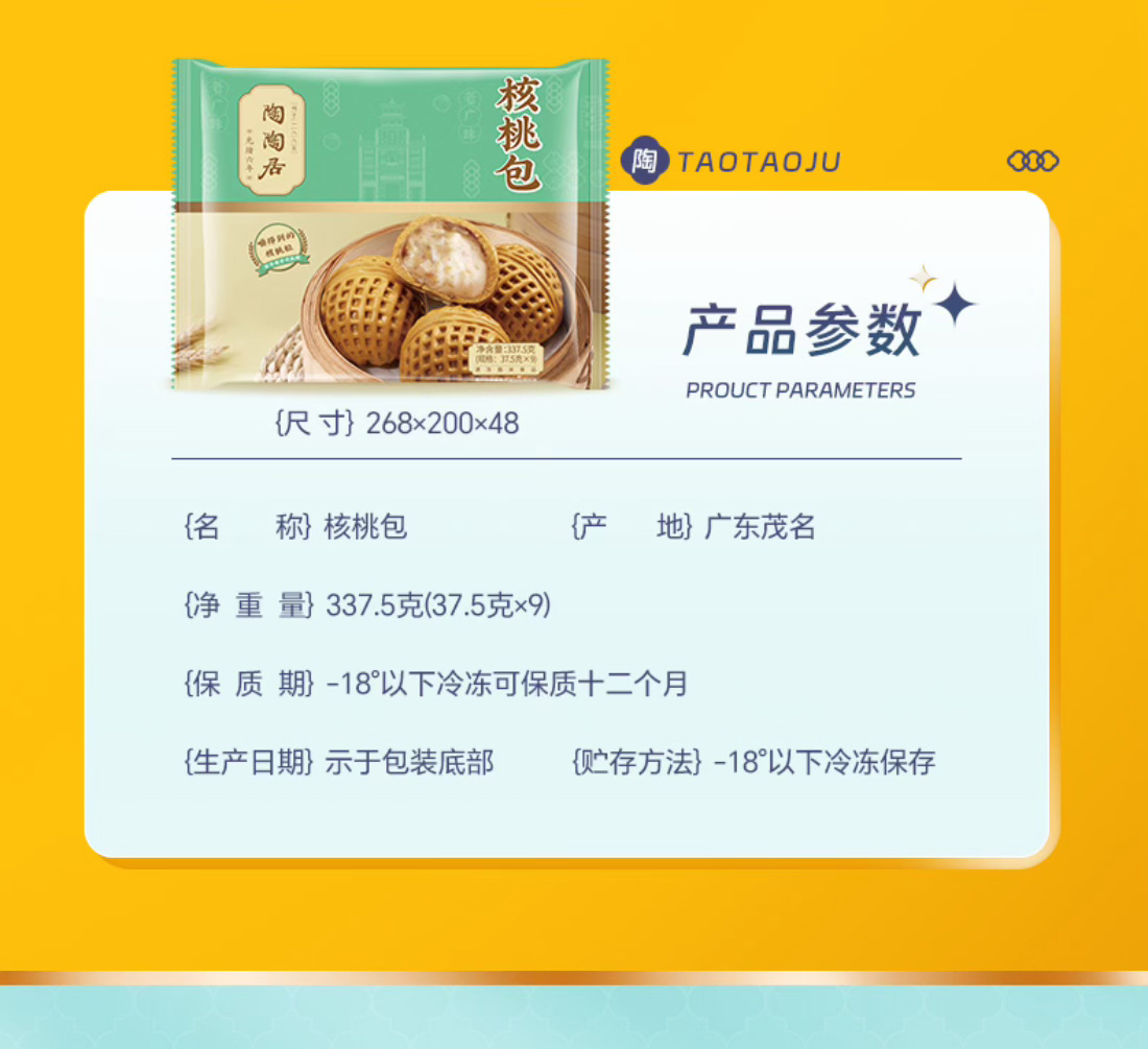 【预售-12月22日配送】陶陶居核桃包/1包(9个,共337.5g)生产日期:25年10月