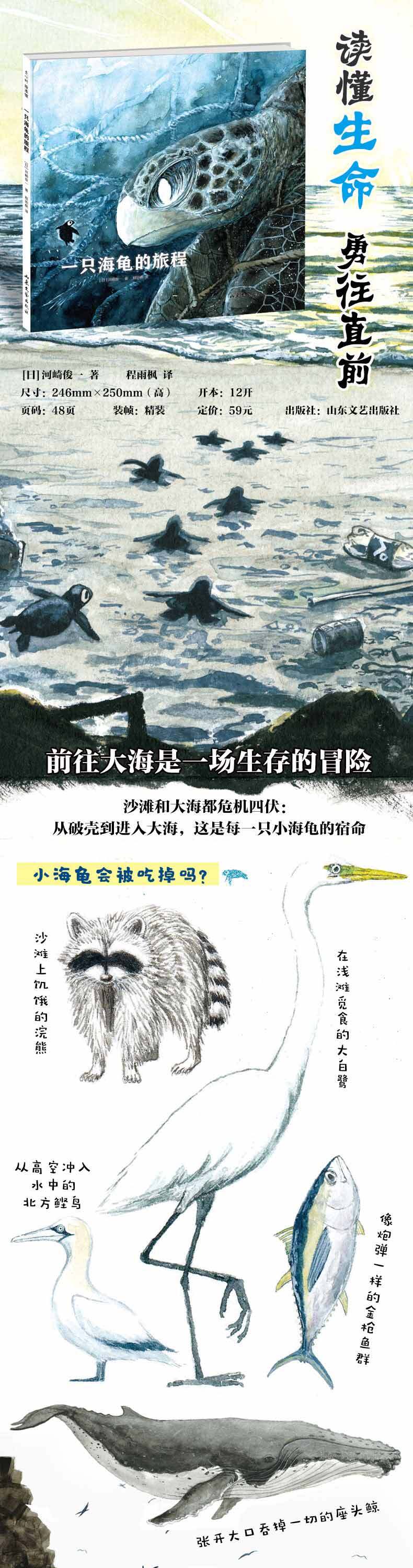 ·一本讲述生与死的生命教育绘本。死亡并不是终结,而是生命的另一种延续。小海龟在大海中的所见所闻,将带领孩子读懂生命的意义。
