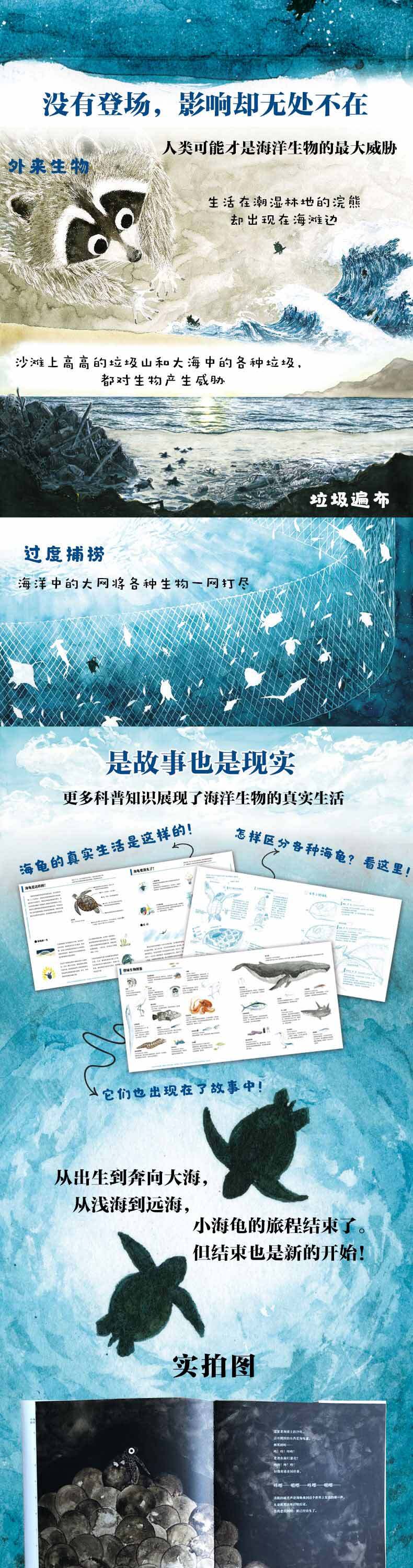 ·一本启发孩子反思人类行为、保护自然的环保主题绘本。小海龟的旅程中出现了很多不该出现的东西,而这些都是人类行为造成的。
