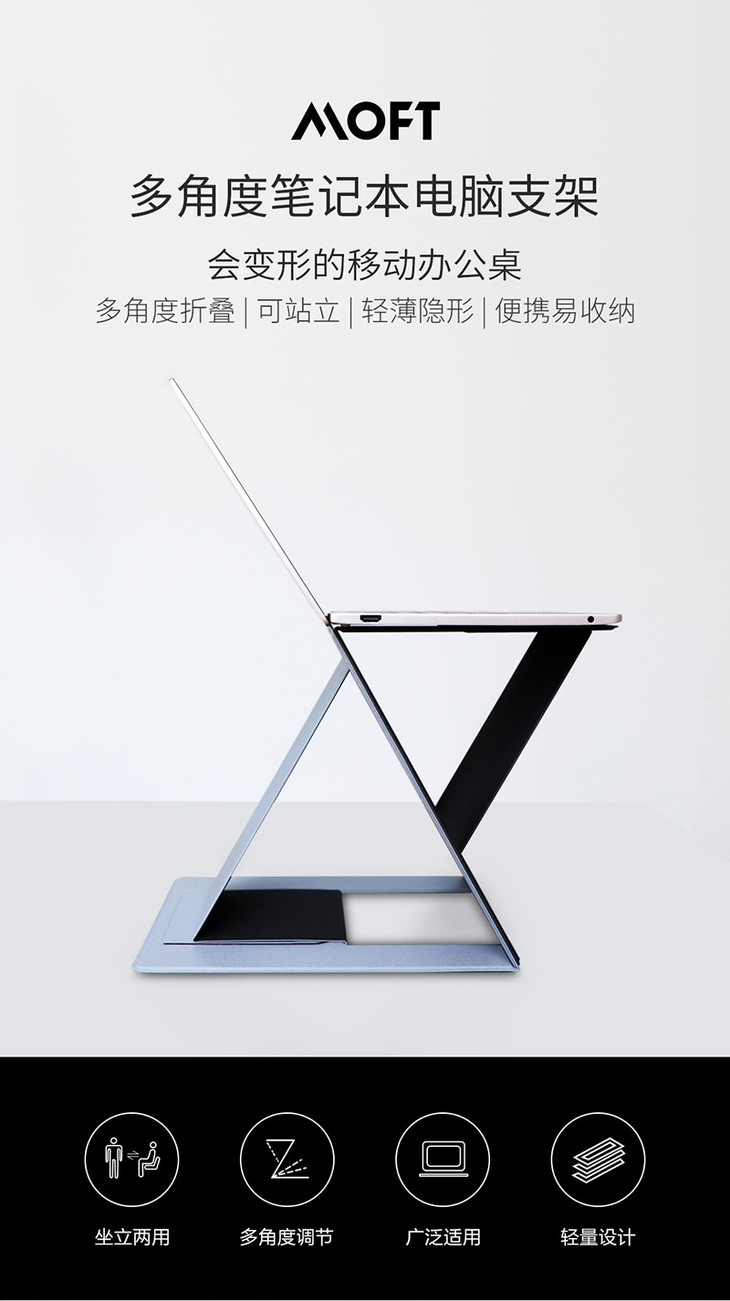 「MOFT Z 可折叠站立多角度电脑支架」适用于苹果笔记本电脑支架轻薄隐形便携