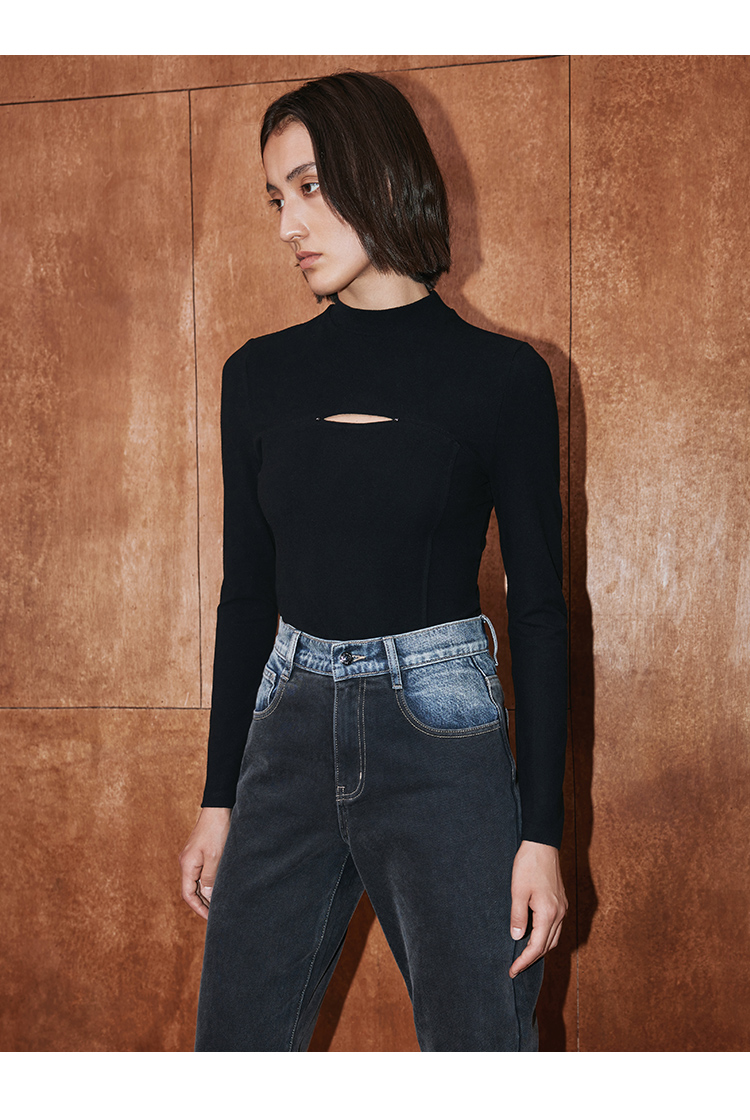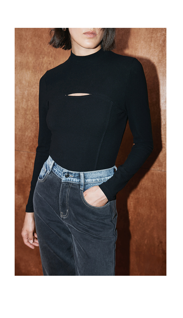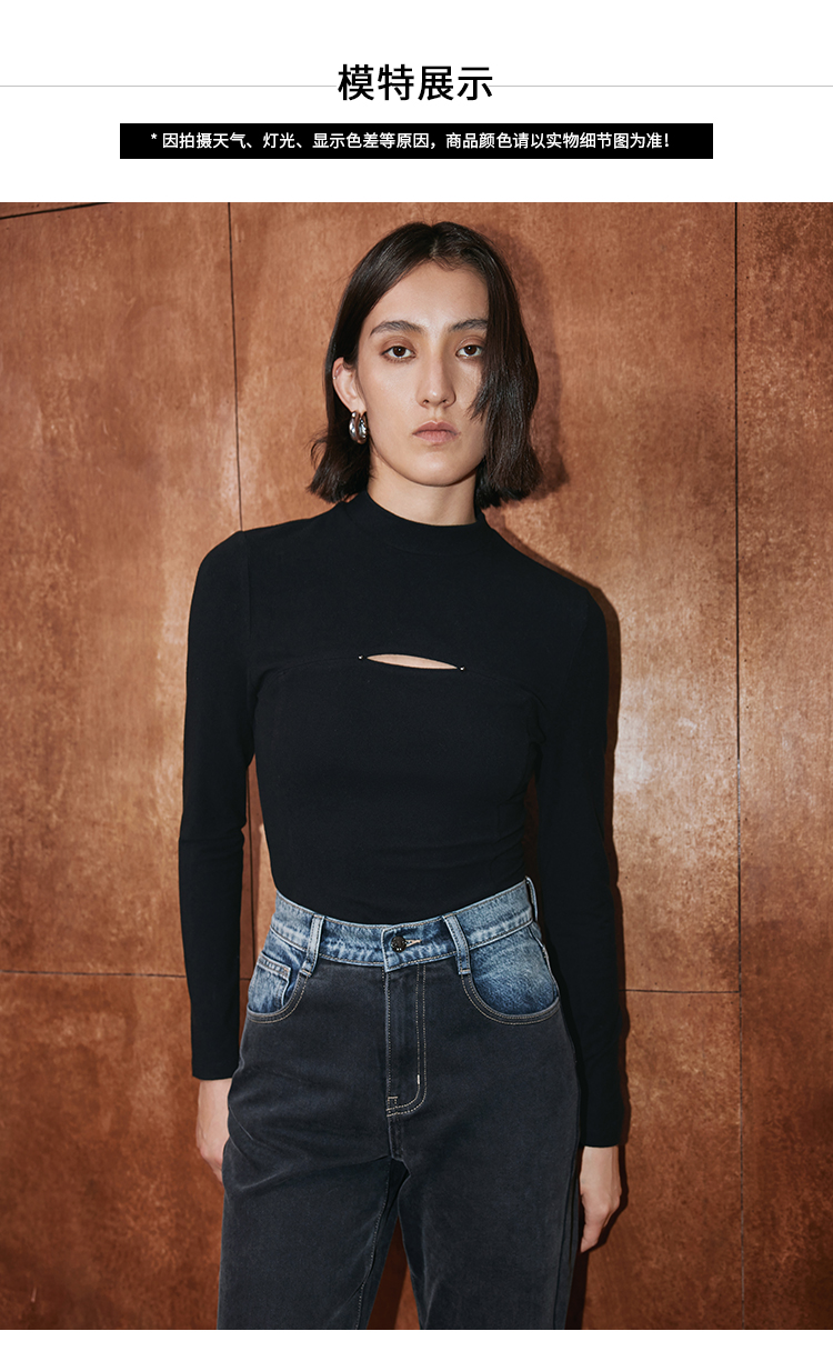 VIMAGE纬漫纪秋季新款黑色镂空设计感上衣V2013614