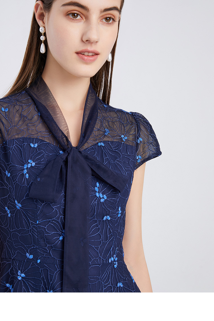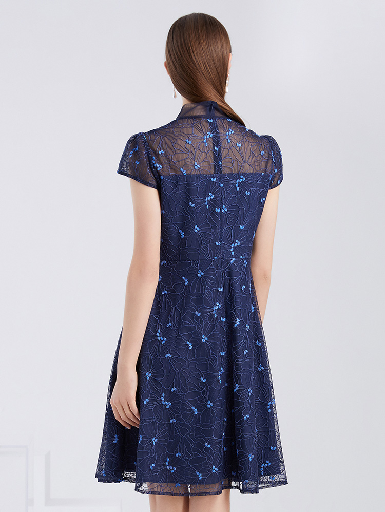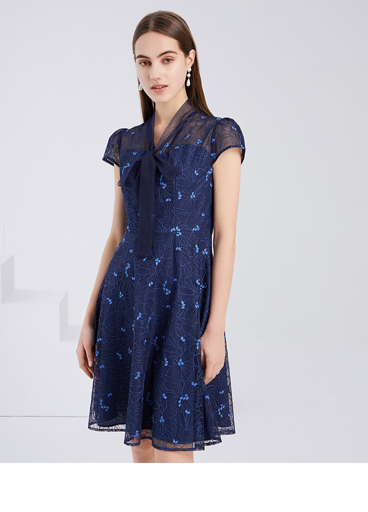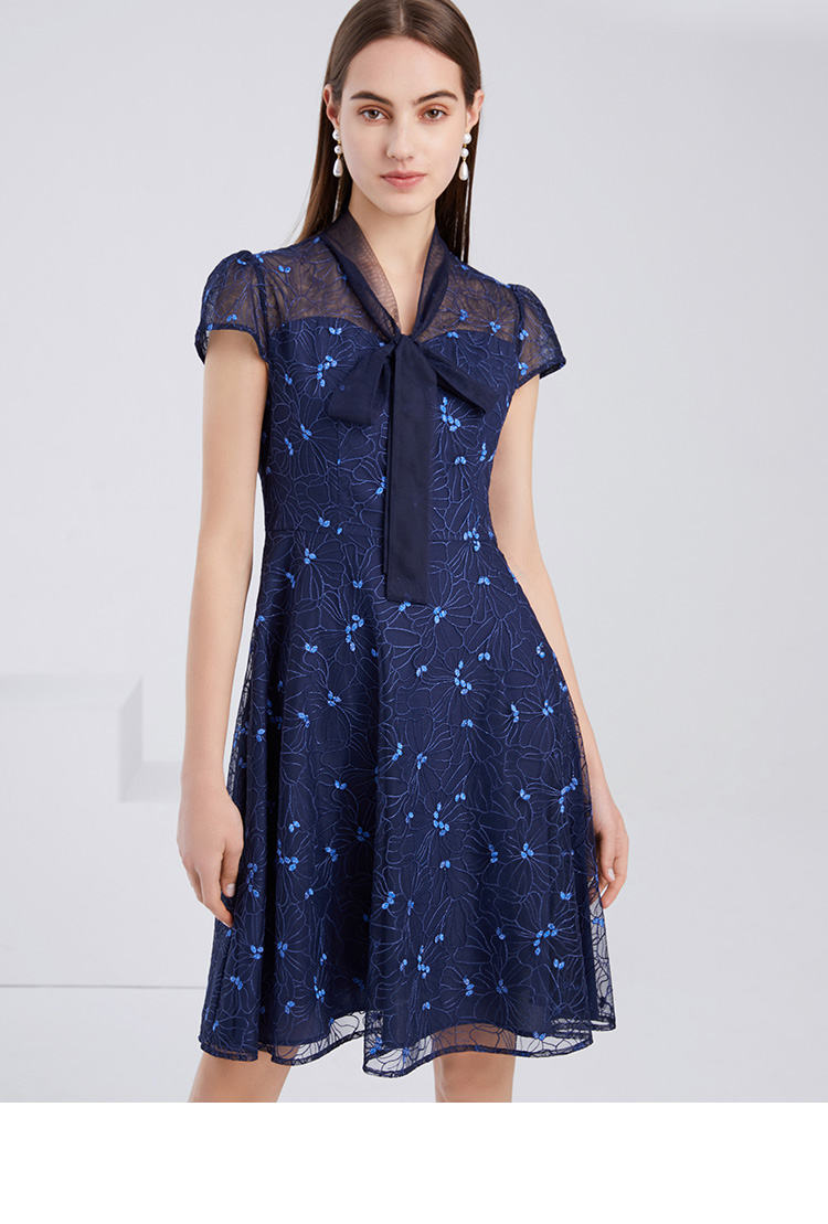 EITIE爱特爱夏季新款精致优雅镂空绣花蕾丝A字显瘦礼服连衣裙6277904