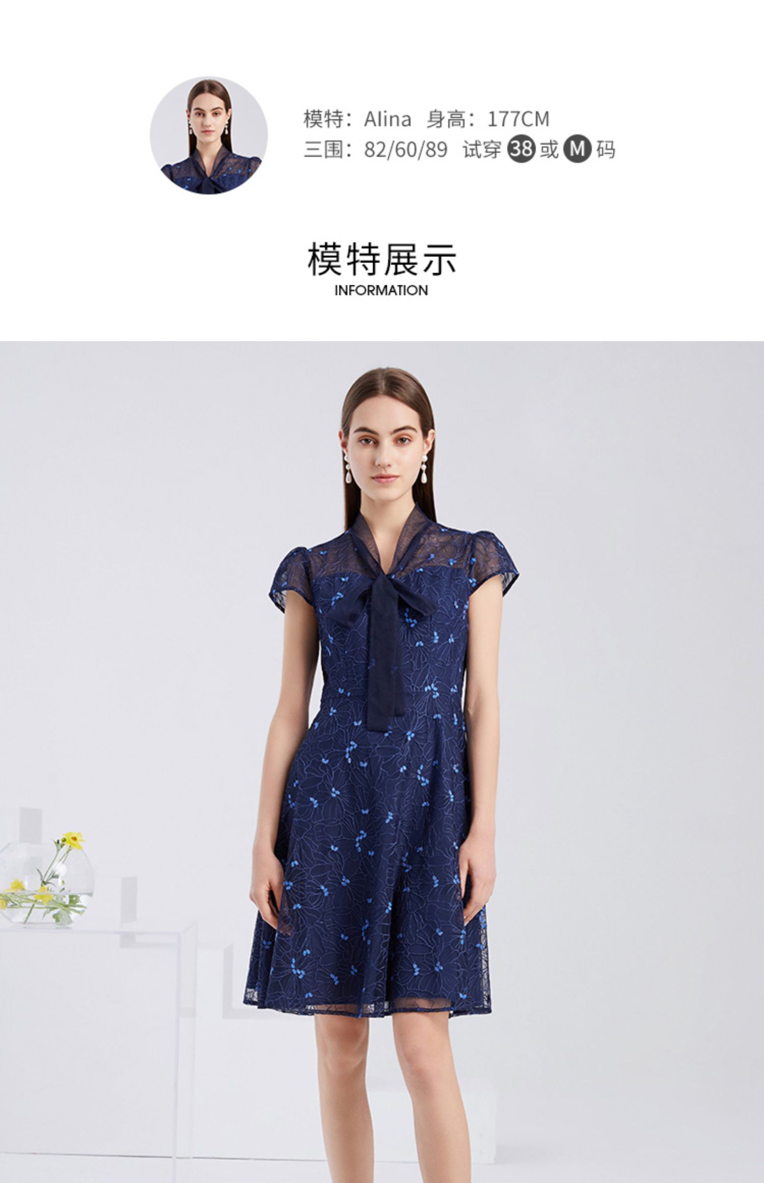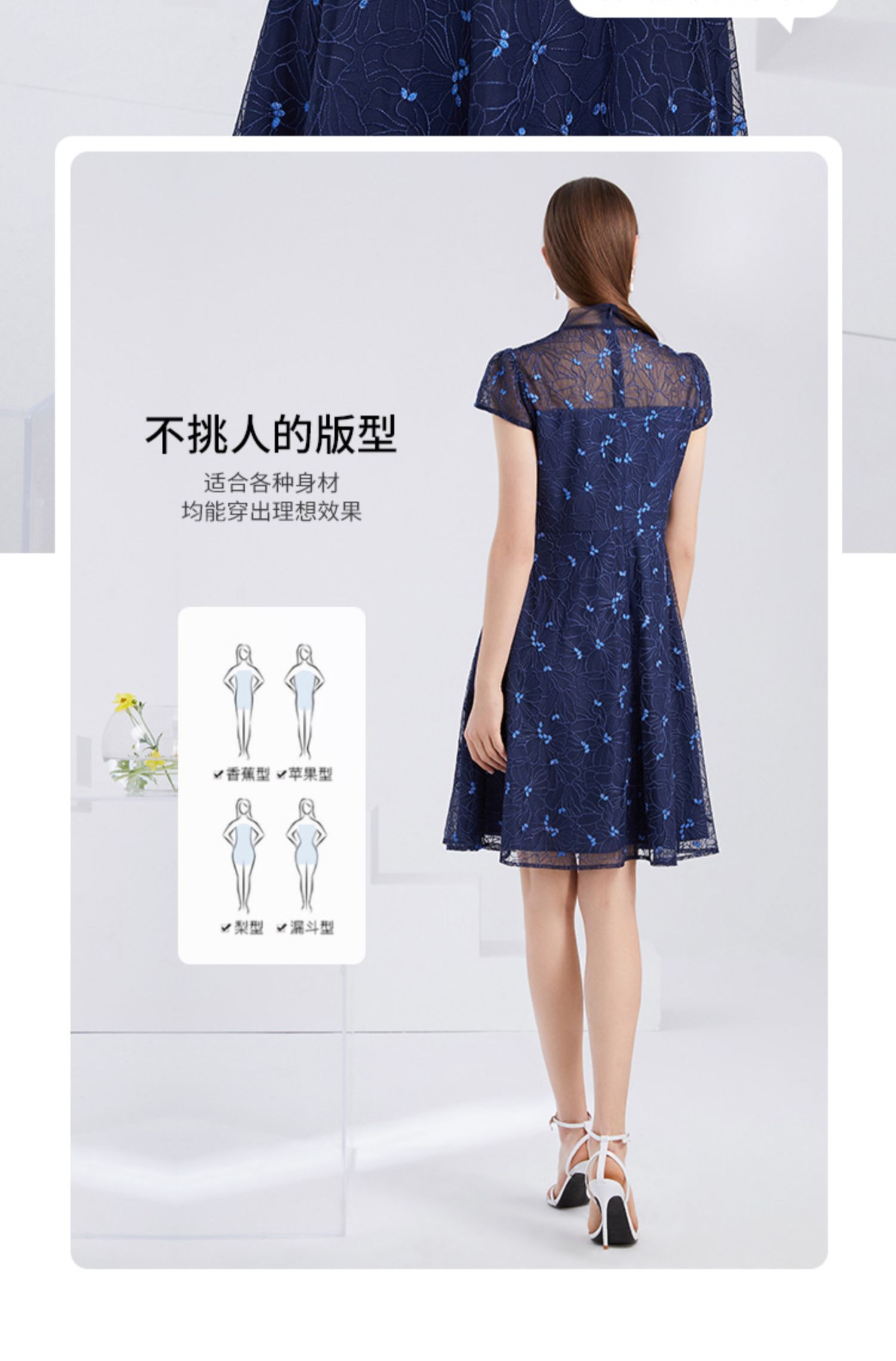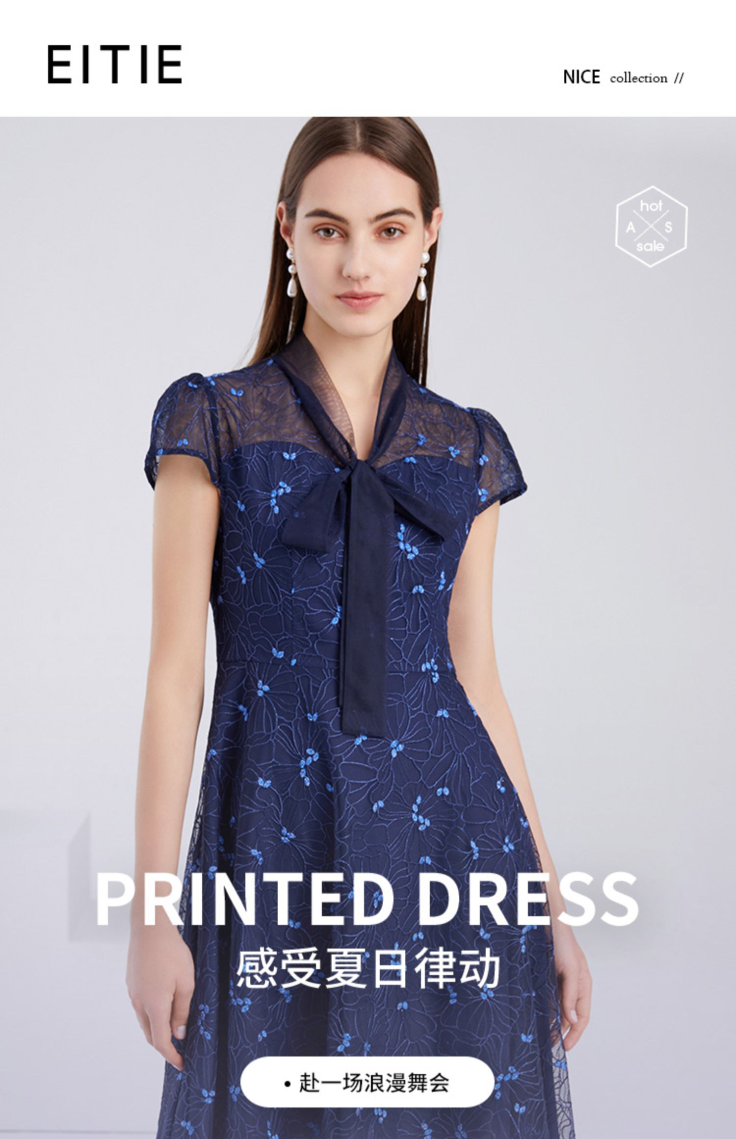EITIE爱特爱夏季新款精致优雅镂空绣花蕾丝A字显瘦礼服连衣裙6277904