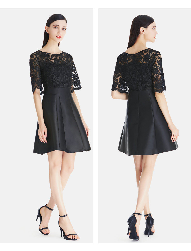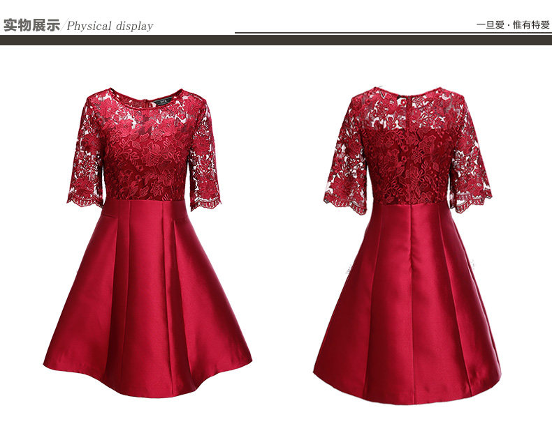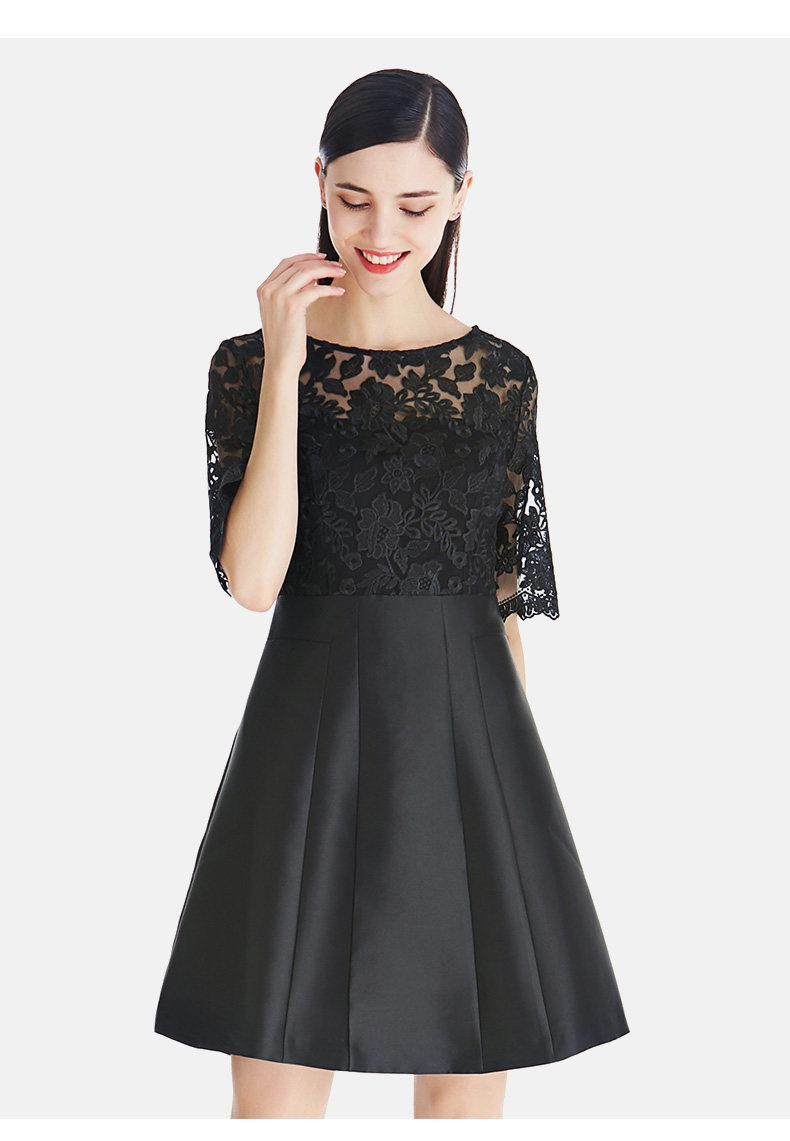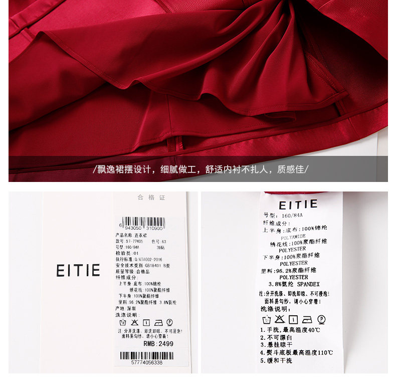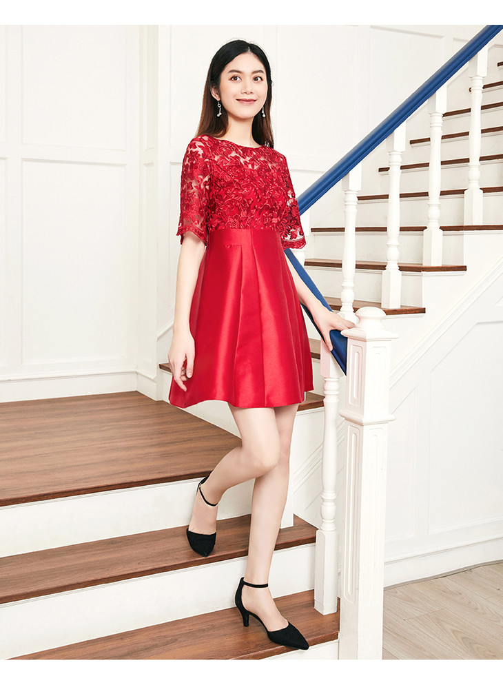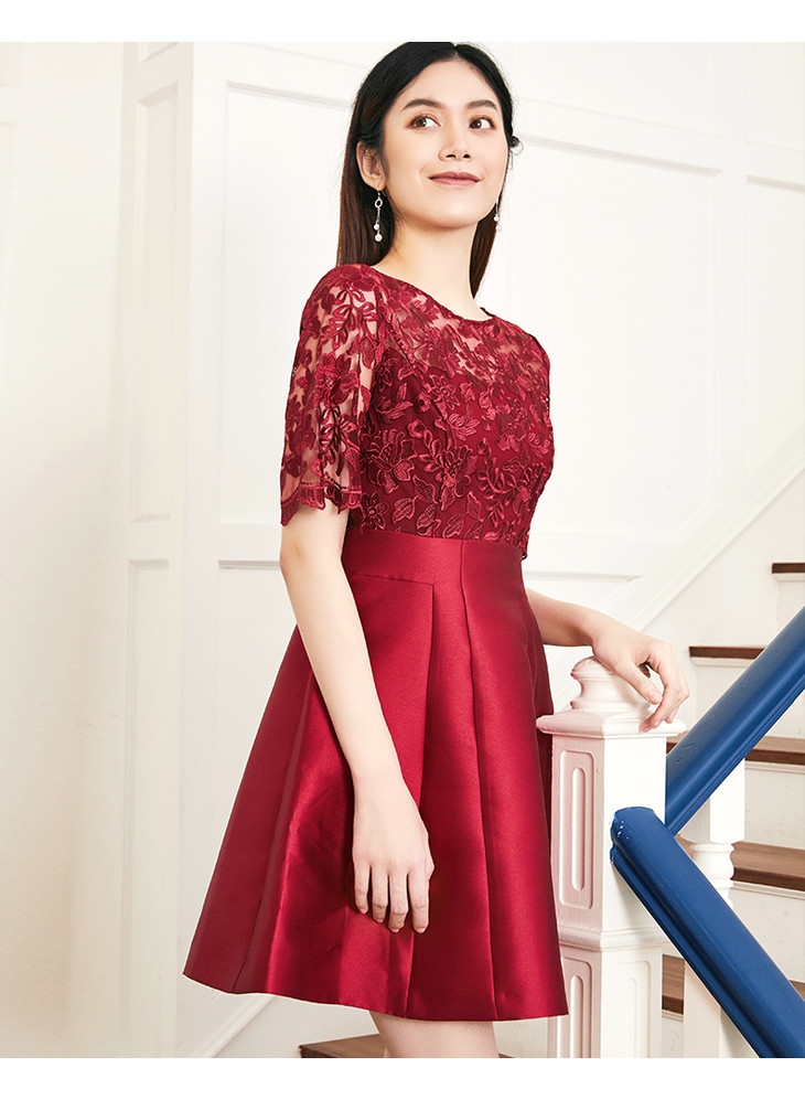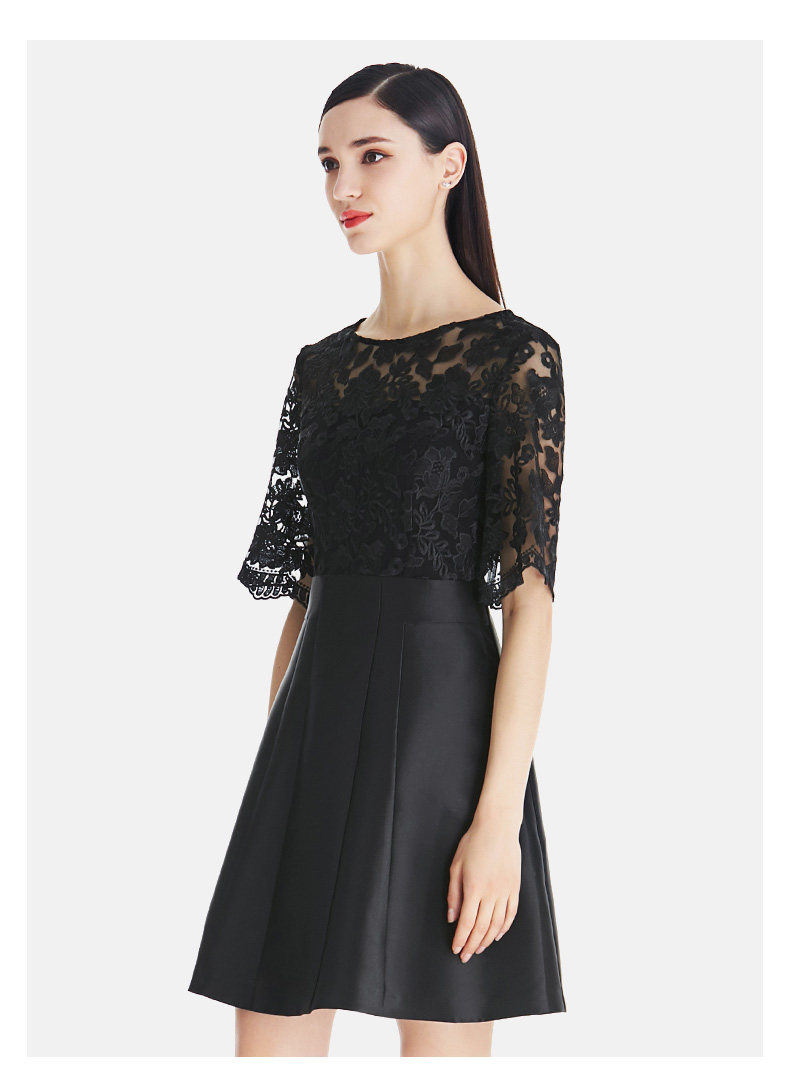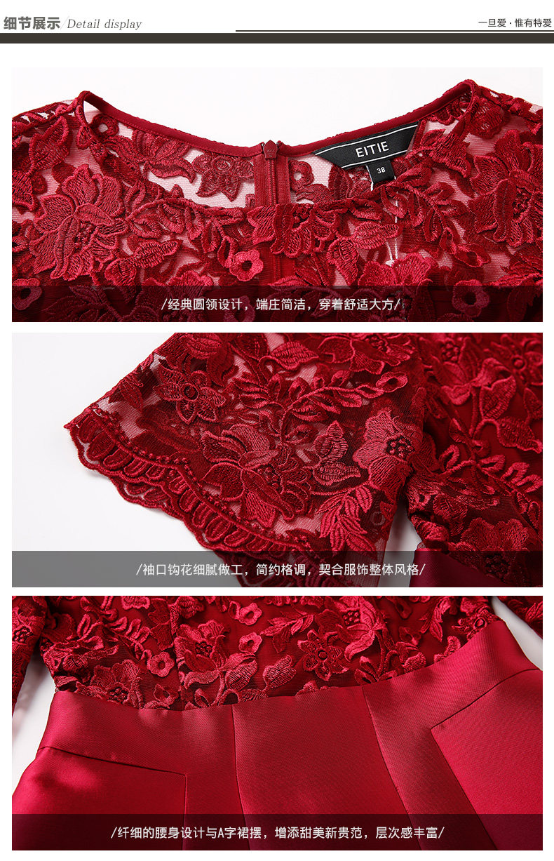 EITIE爱特爱女装秋季新品蕾丝褶皱A字短款镂空晚礼服连衣裙5777405