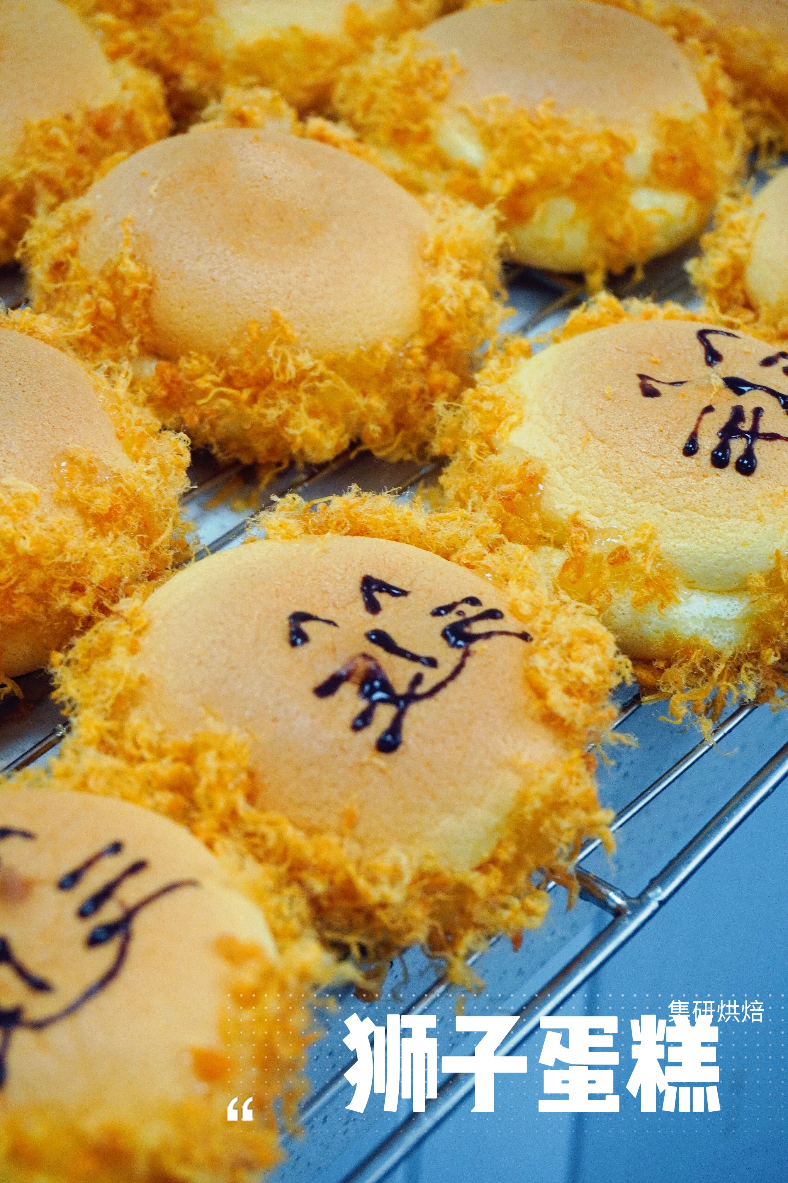 狮子蛋糕;这种蛋糕的口感独特,松软的蛋糕里面包裹着自制的鸡蛋酱,外面的肉松有点咸味,吃起来甜中略带点咸,深受大家喜爱,是小店的镇店之宝