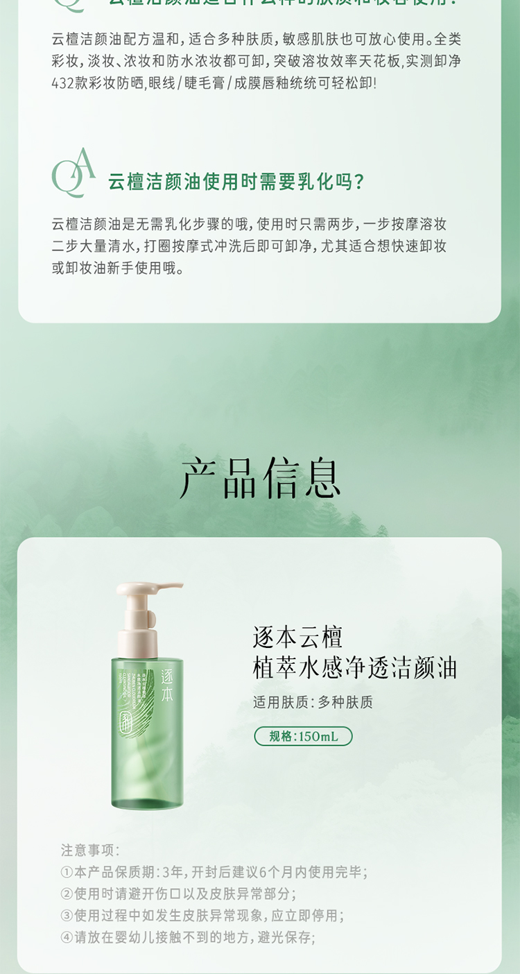【特惠活动,截止至1月5日】【节假日不发货】【国货之光】【养肤级卸妆油】逐本5代云檀,清欢,晨蜜,自在卸妆油 逐本卸妆油敏感肌脸部深层清洁卸妆