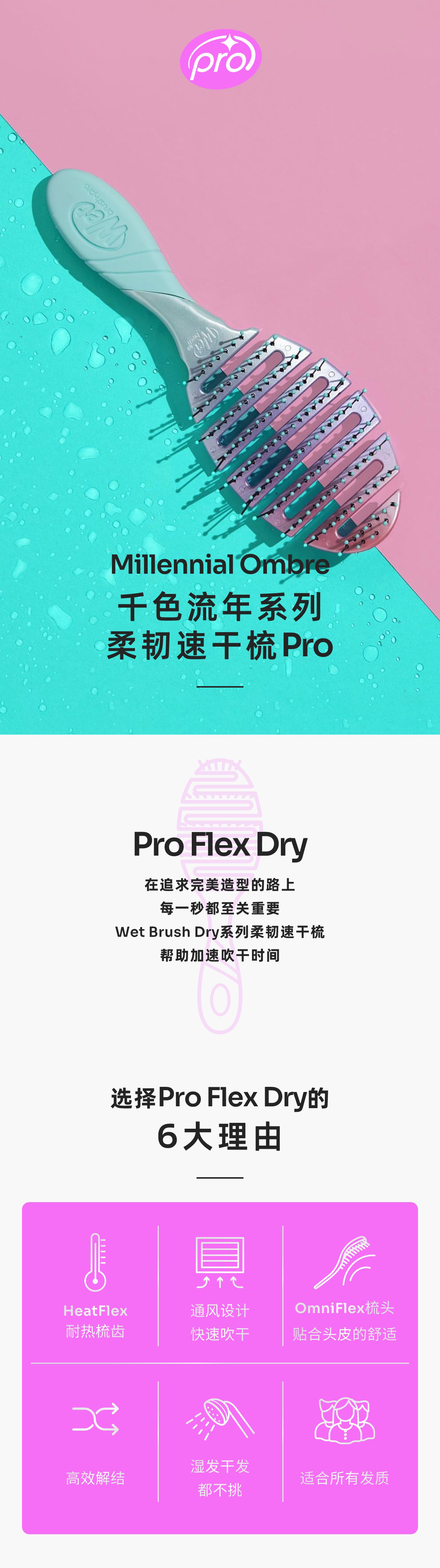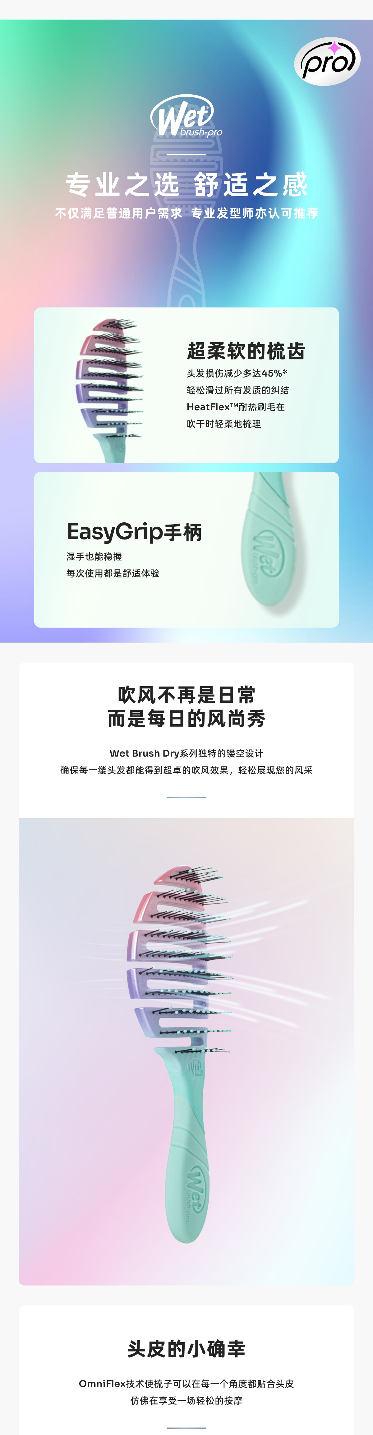 美国Wet Brush干湿两用柔韧速干梳Pro专业版