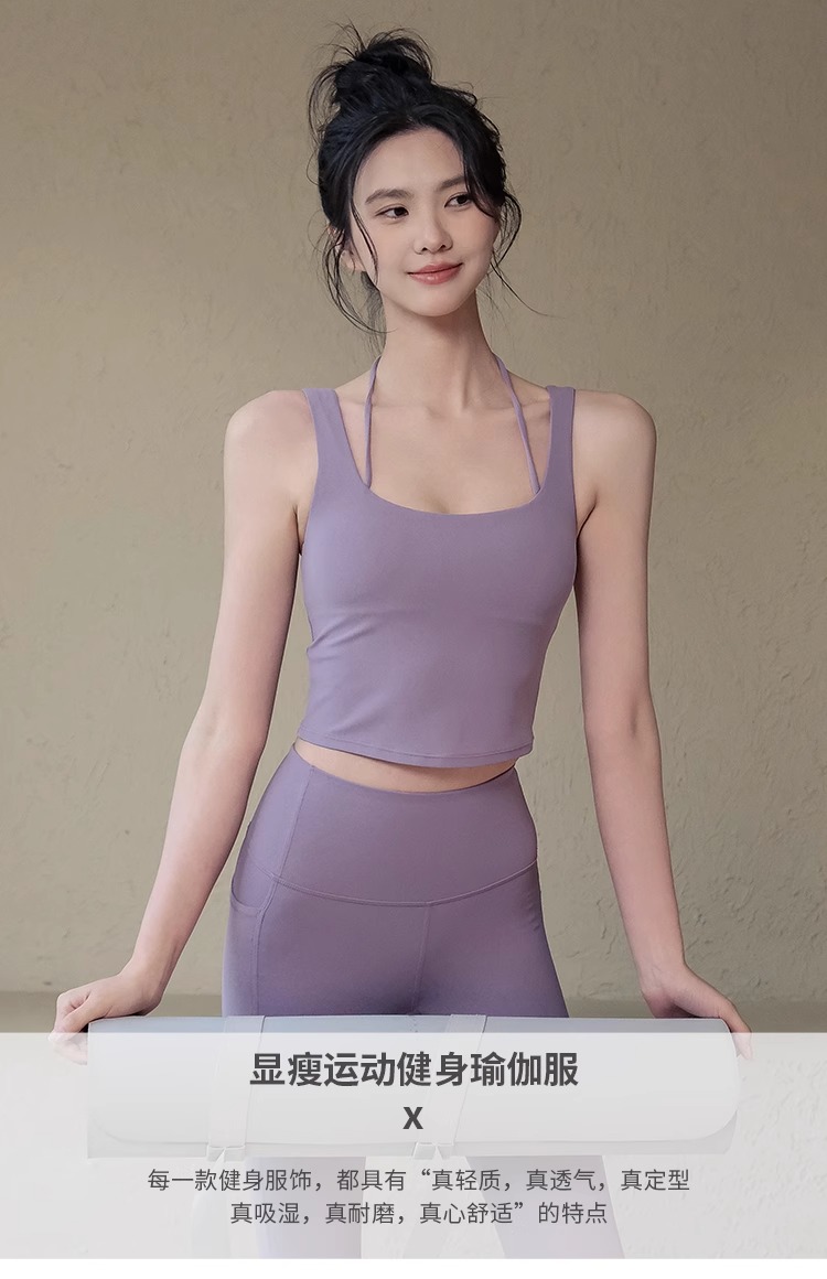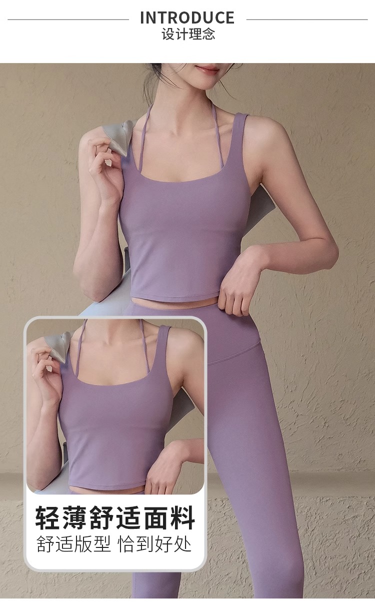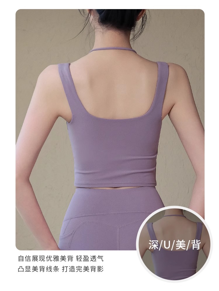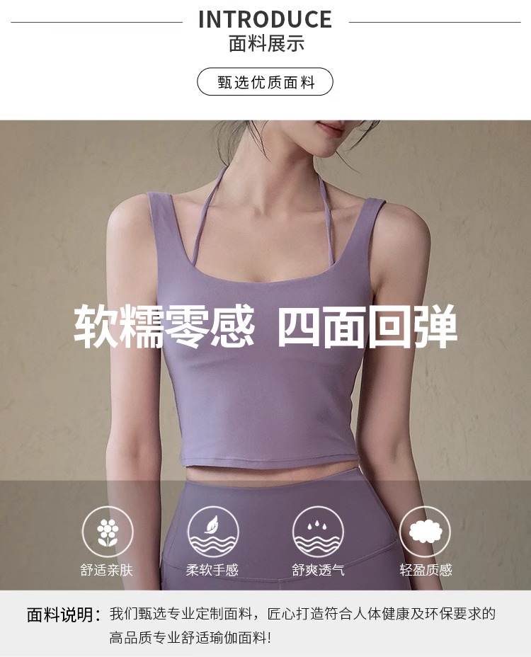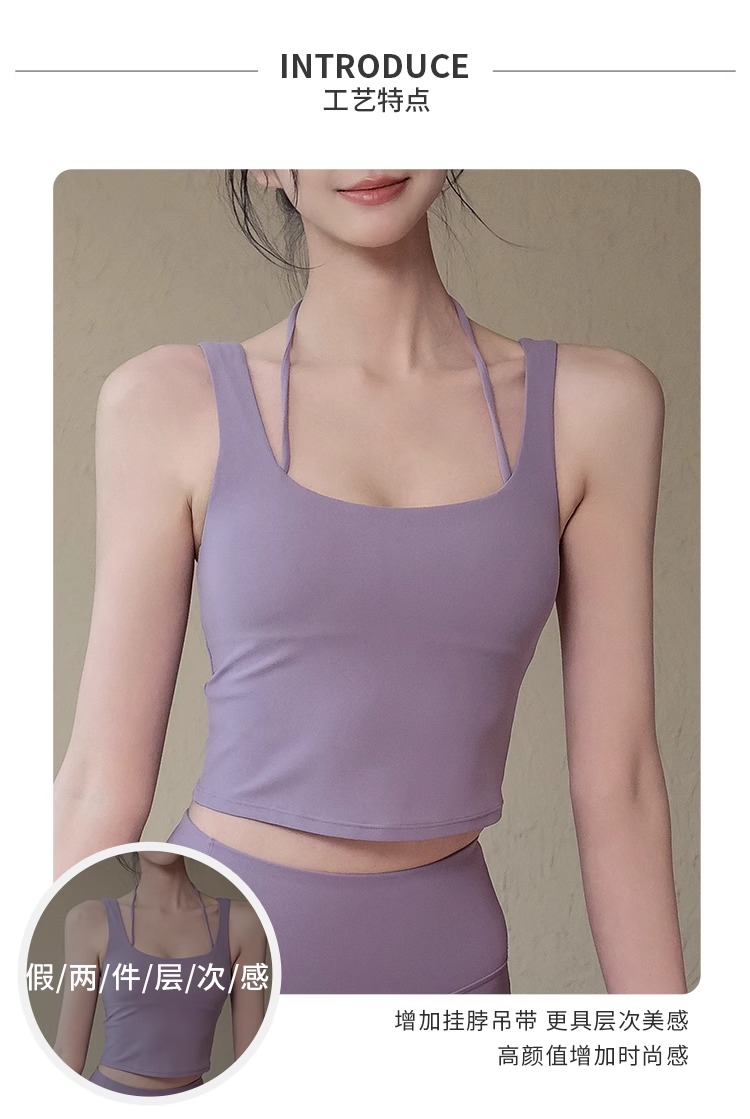 跃牌【安琪拉系列】新款裸感假两件运动内衣挂脖带胸垫瑜伽背心女WX41007