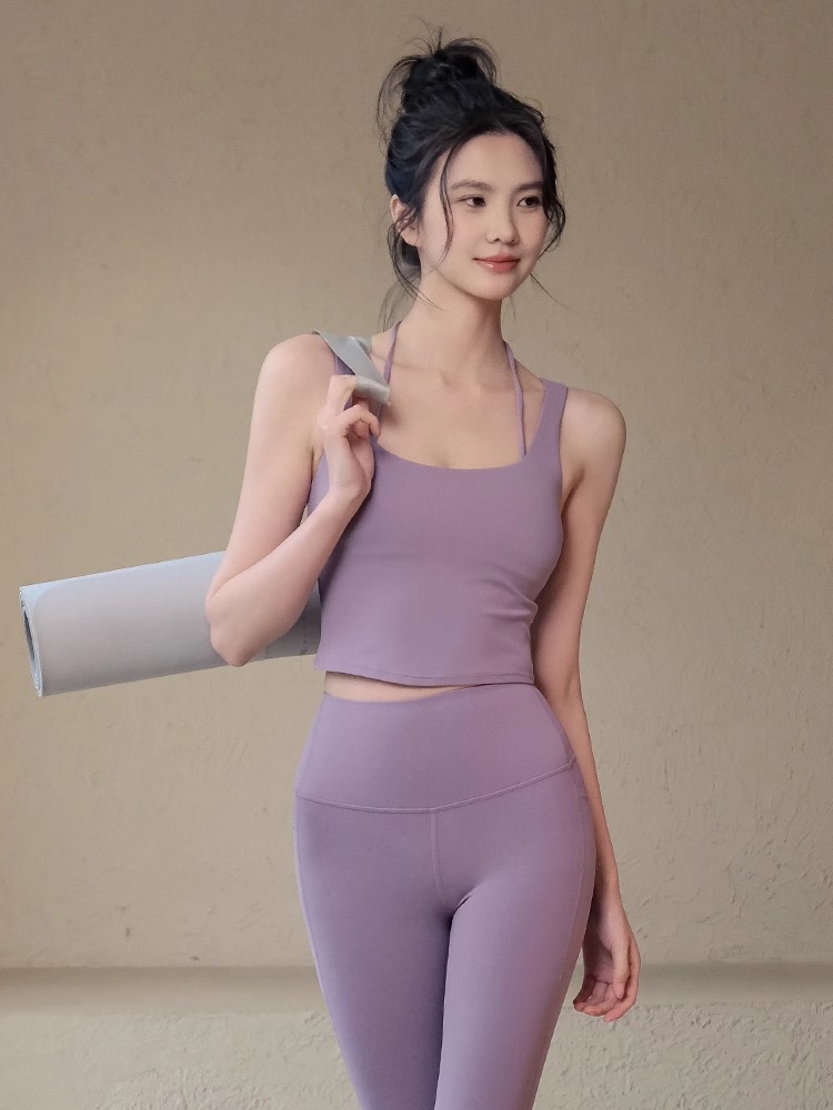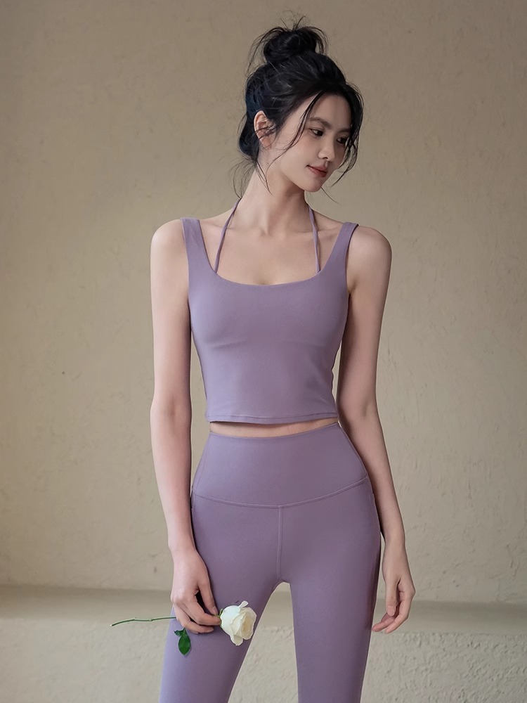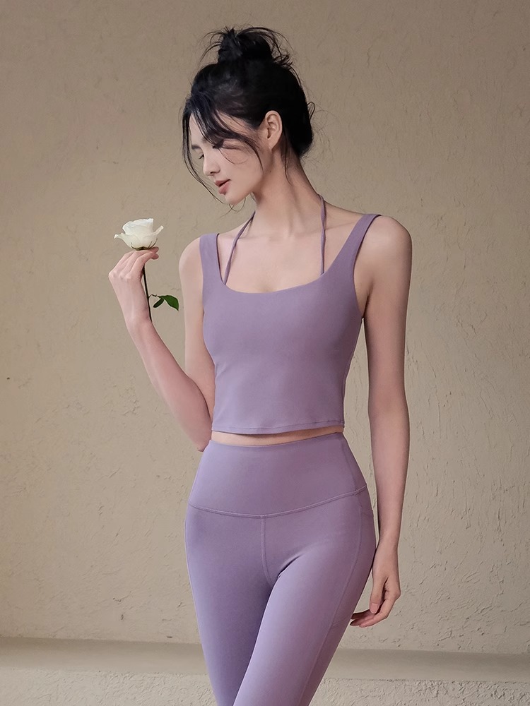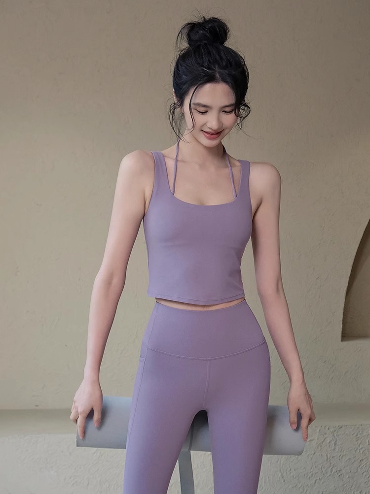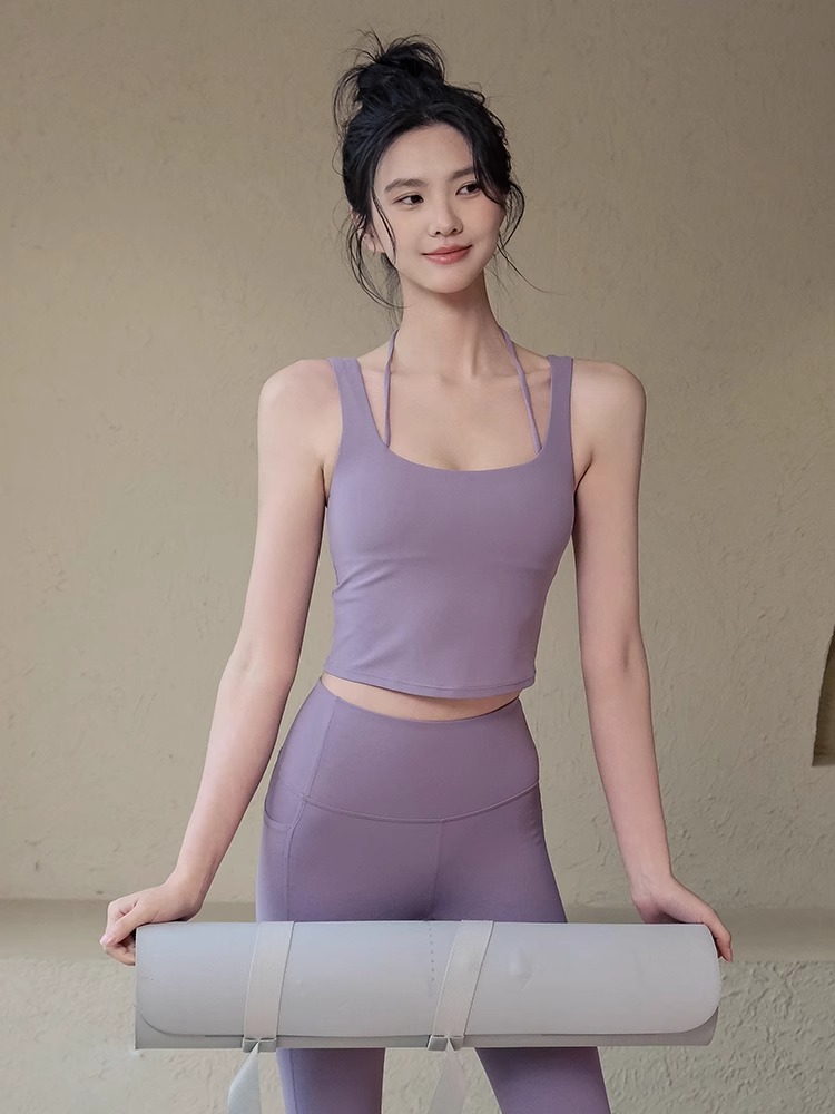 跃牌【安琪拉系列】新款裸感假两件运动内衣挂脖带胸垫瑜伽背心女WX41007