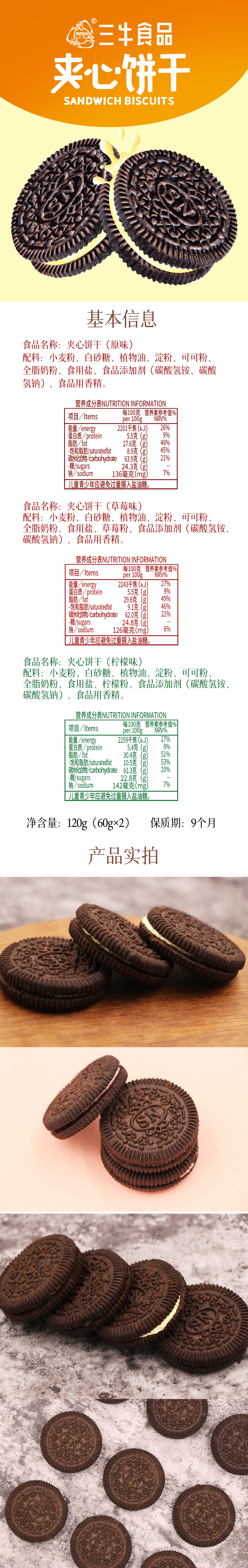 120g夹心饼干 原味 草莓味 柠檬味 休闲食品 办公室零食